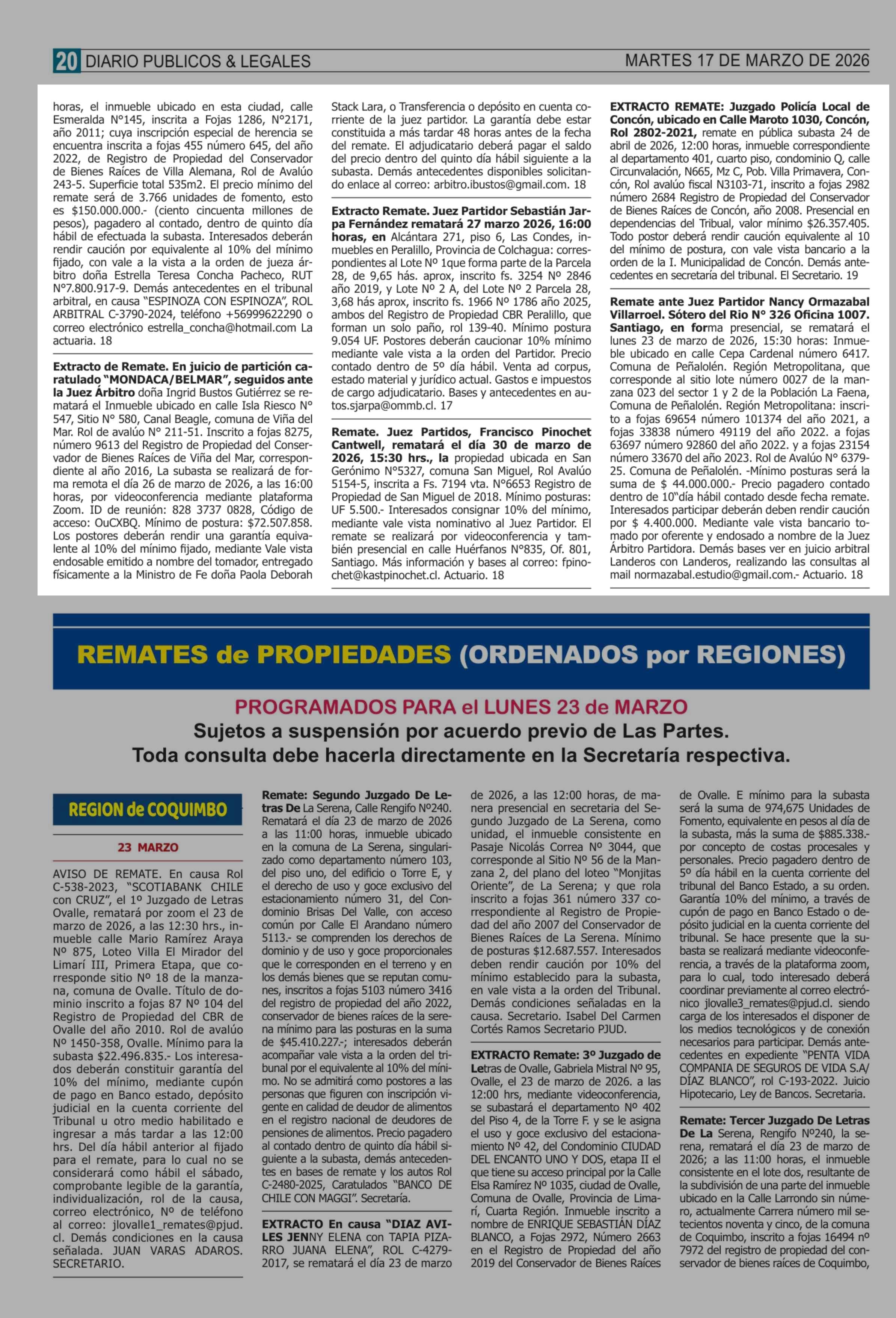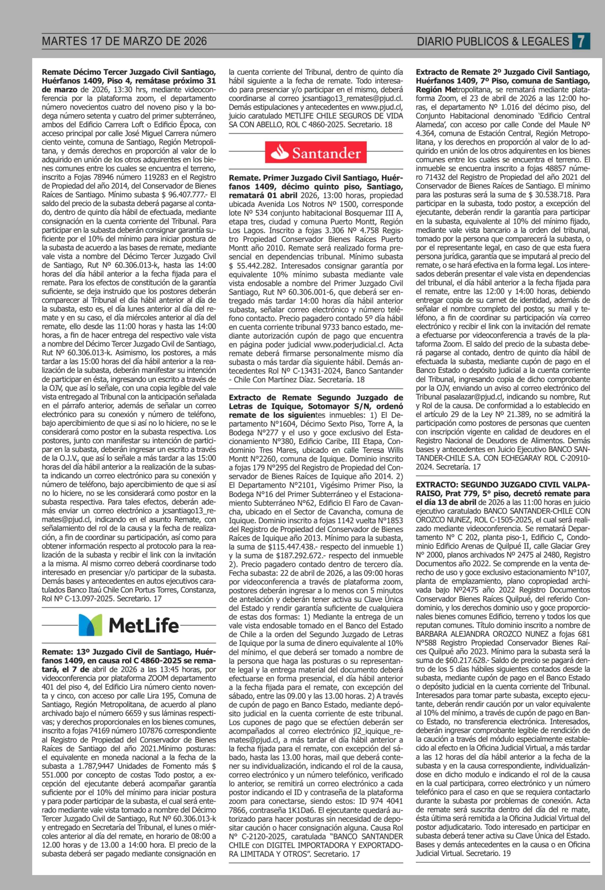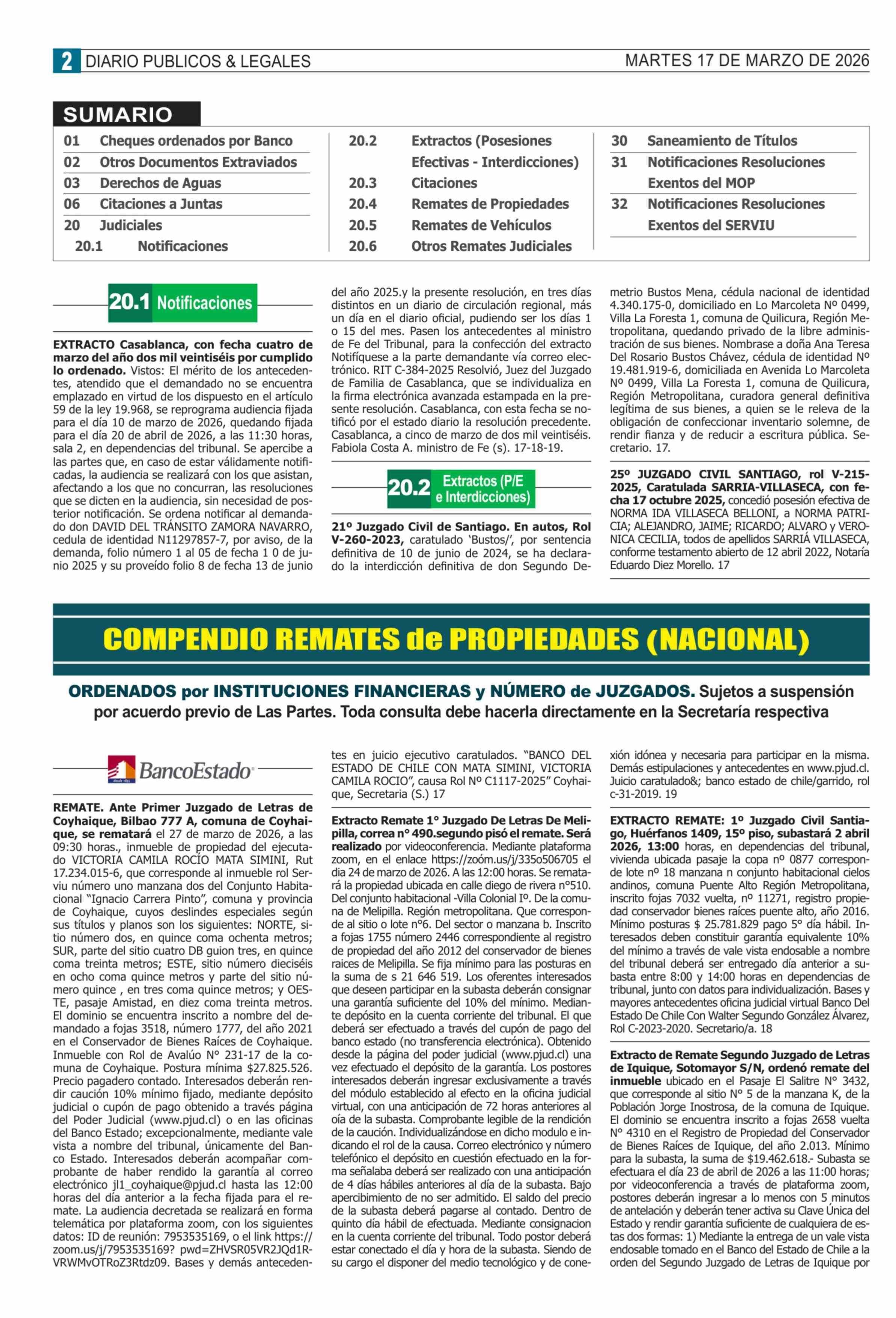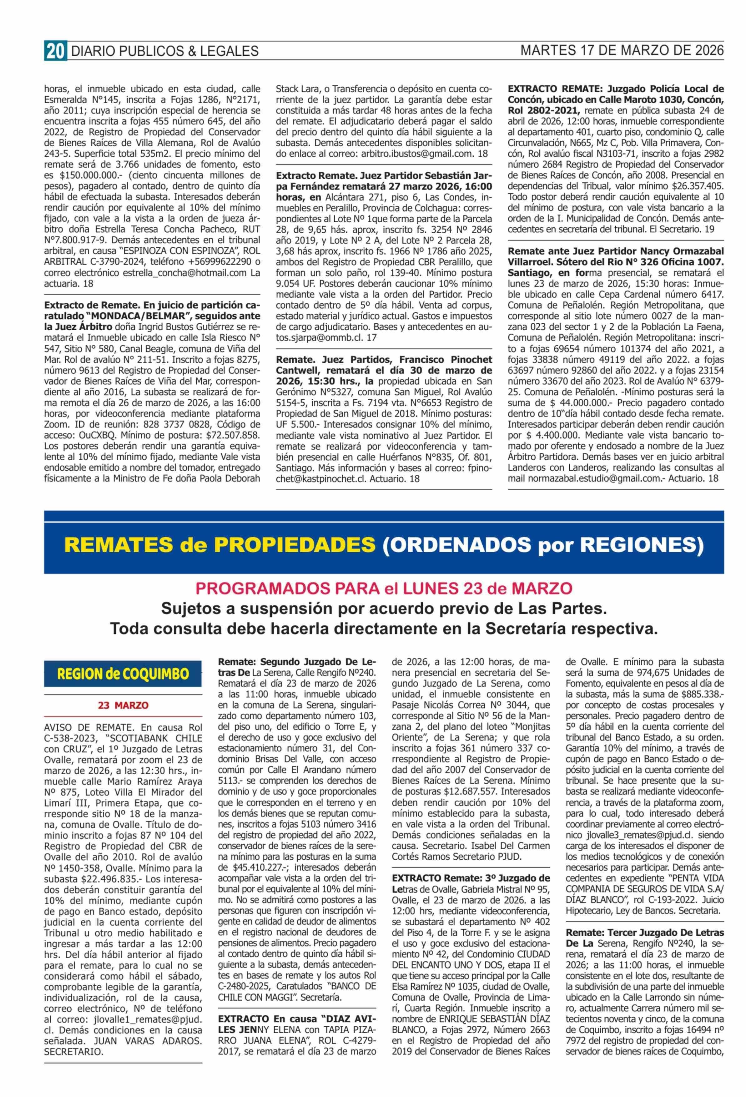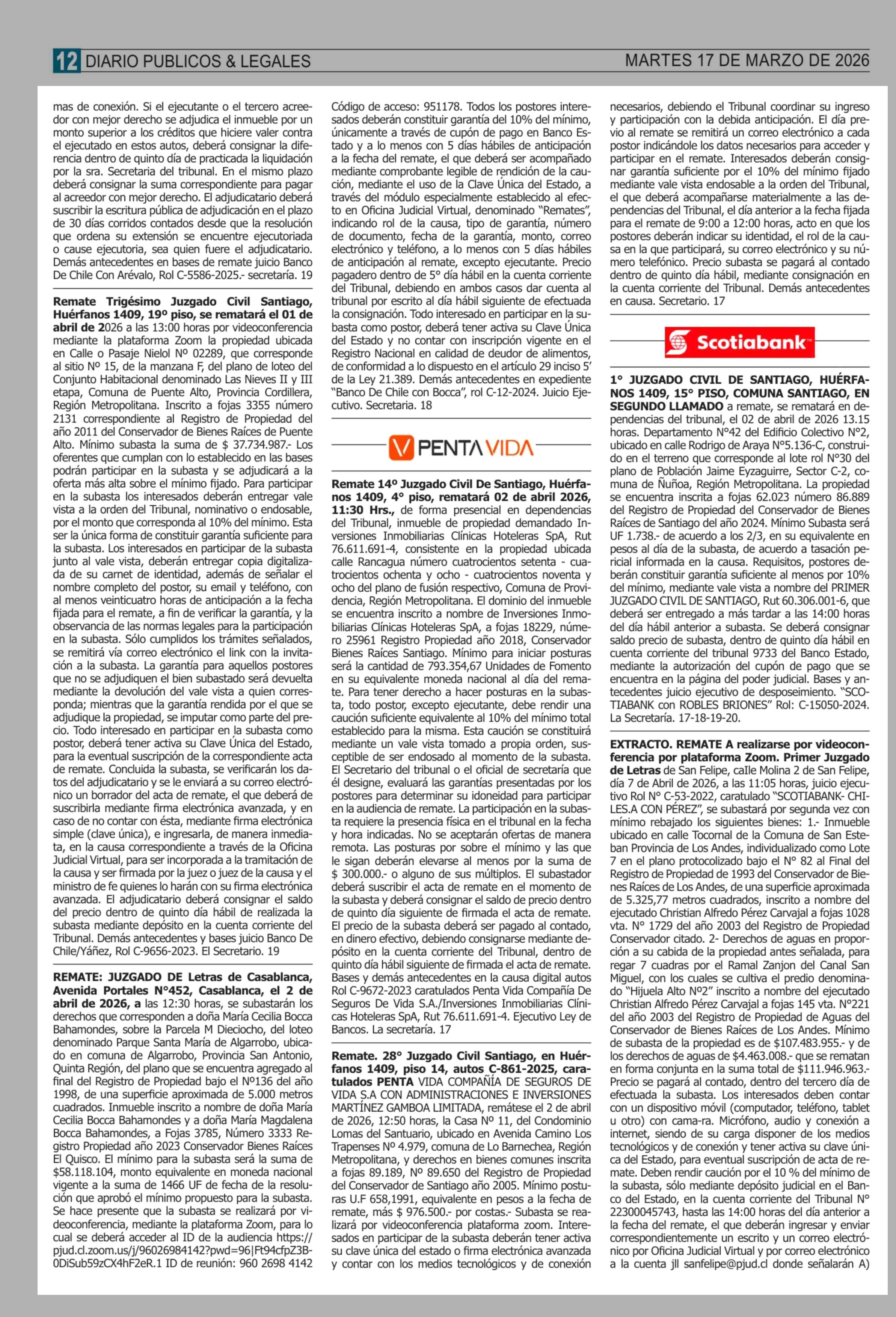 Fecha: 17-03-2026 Sector: Remates Región: Región Metropolitana de Santiago