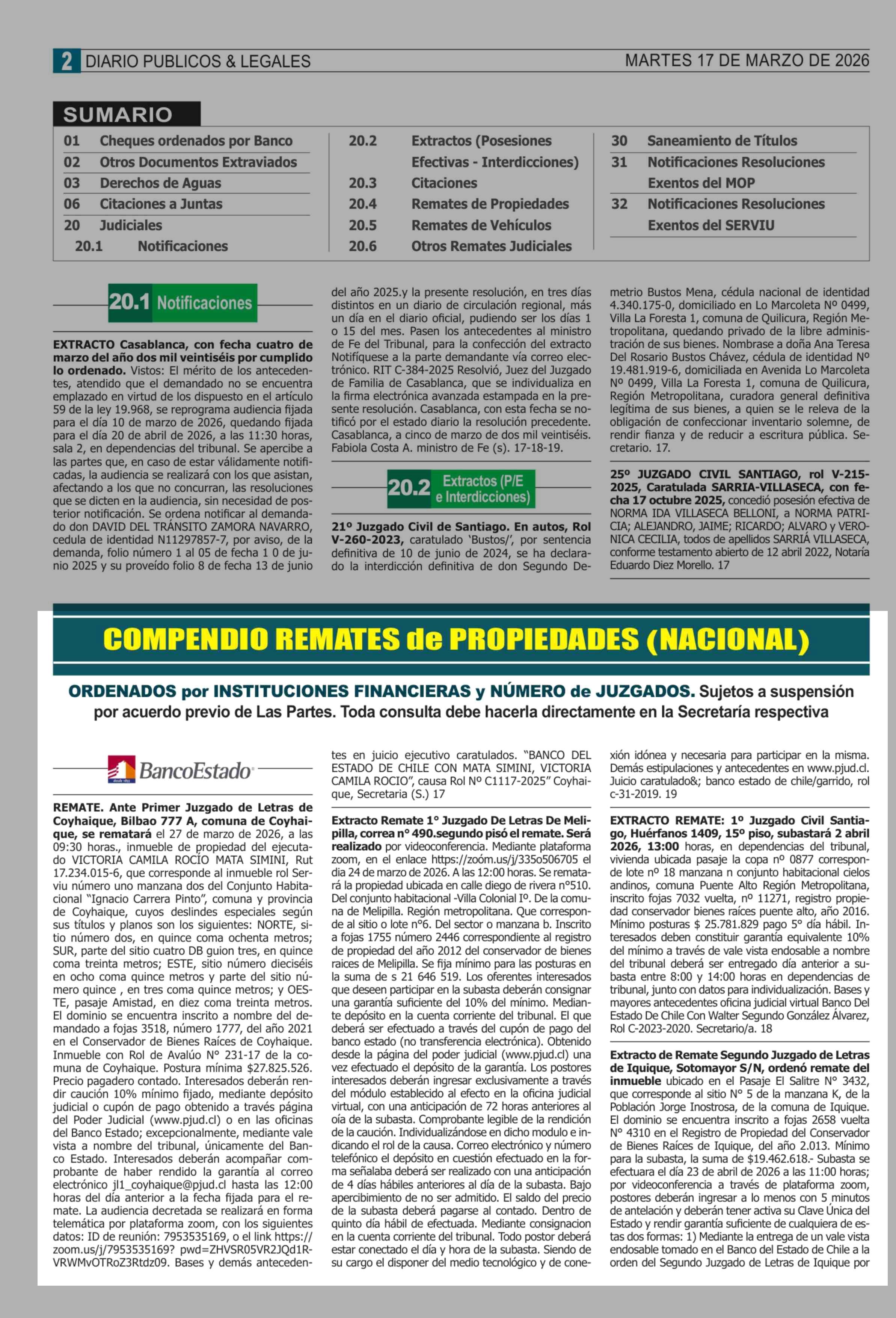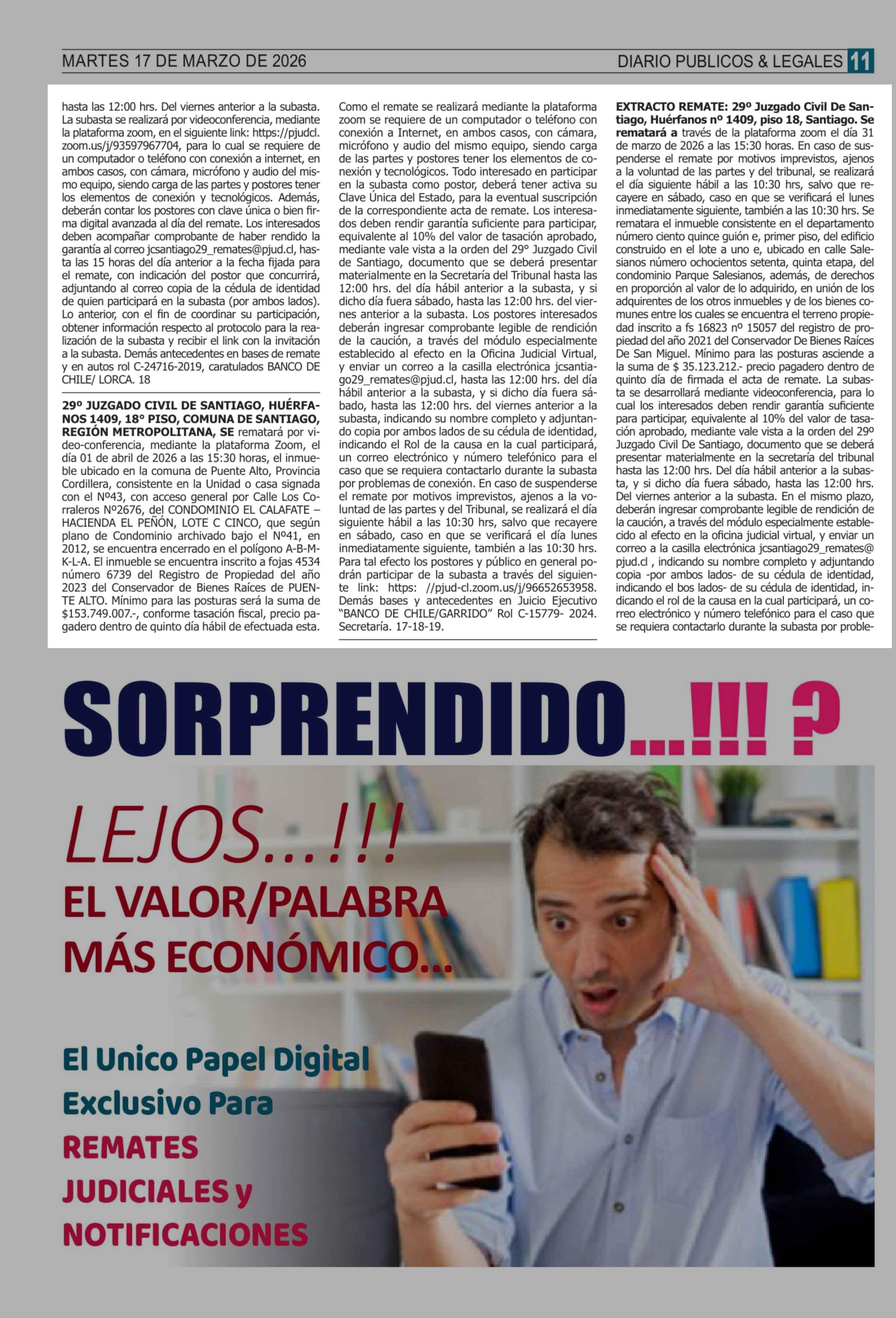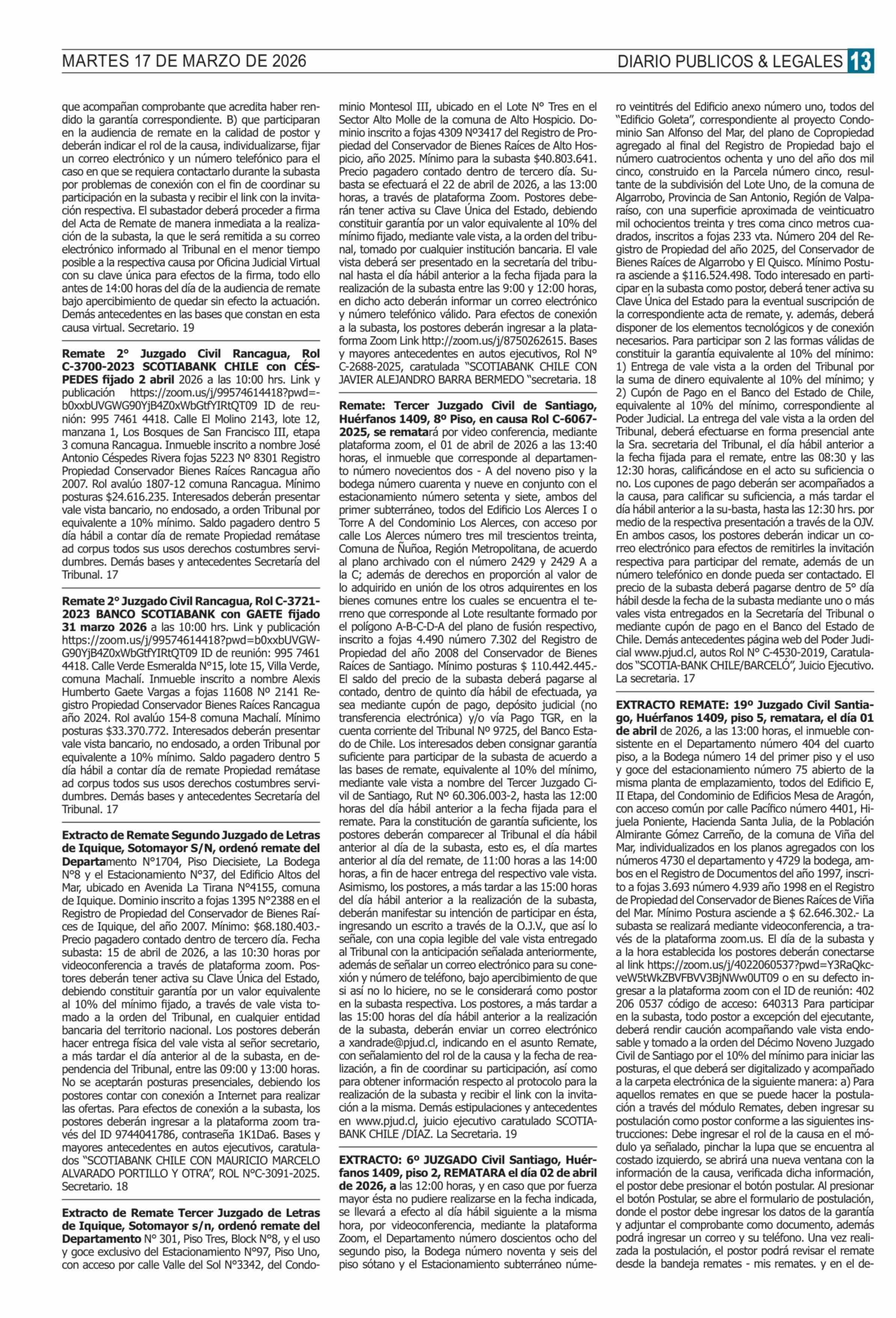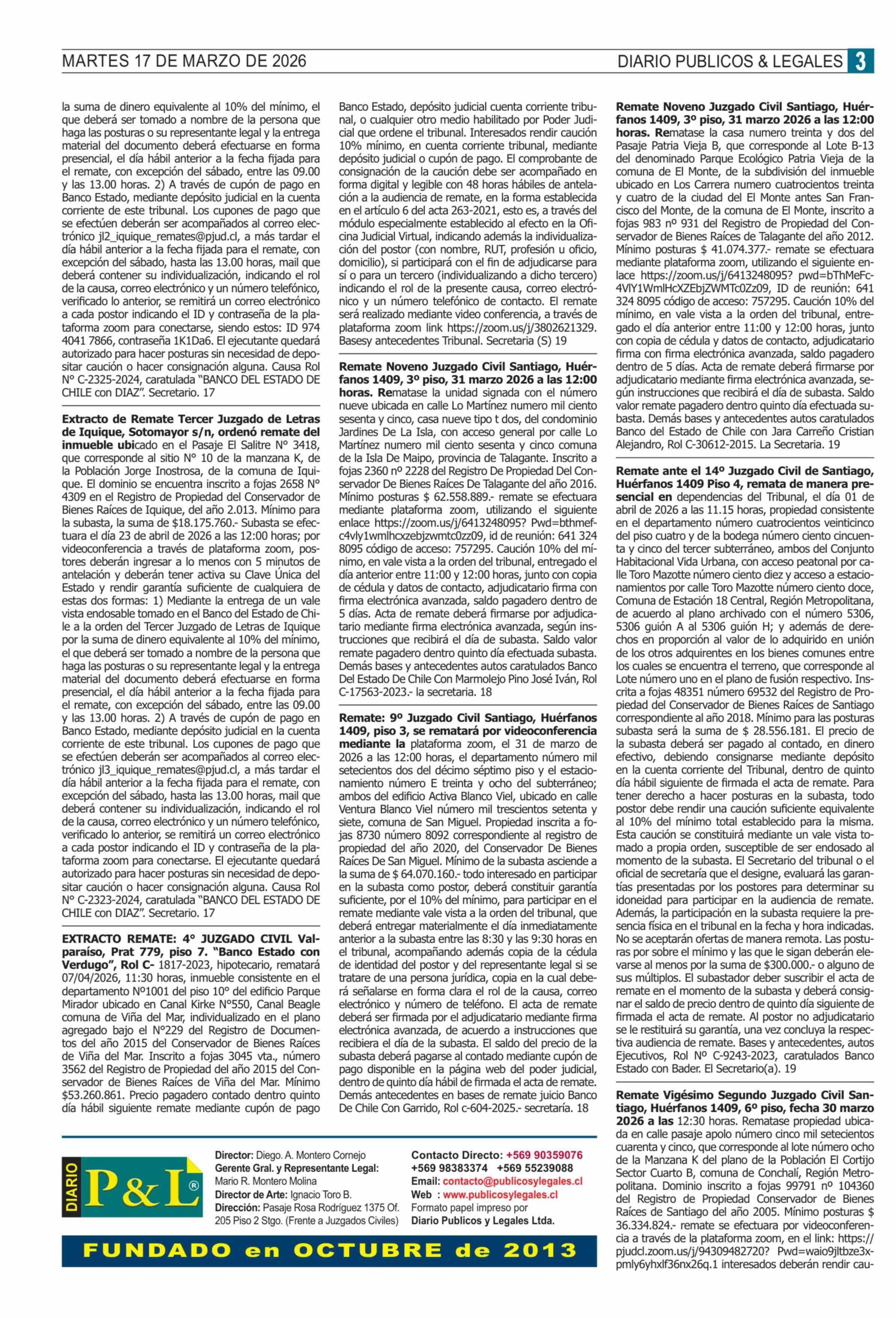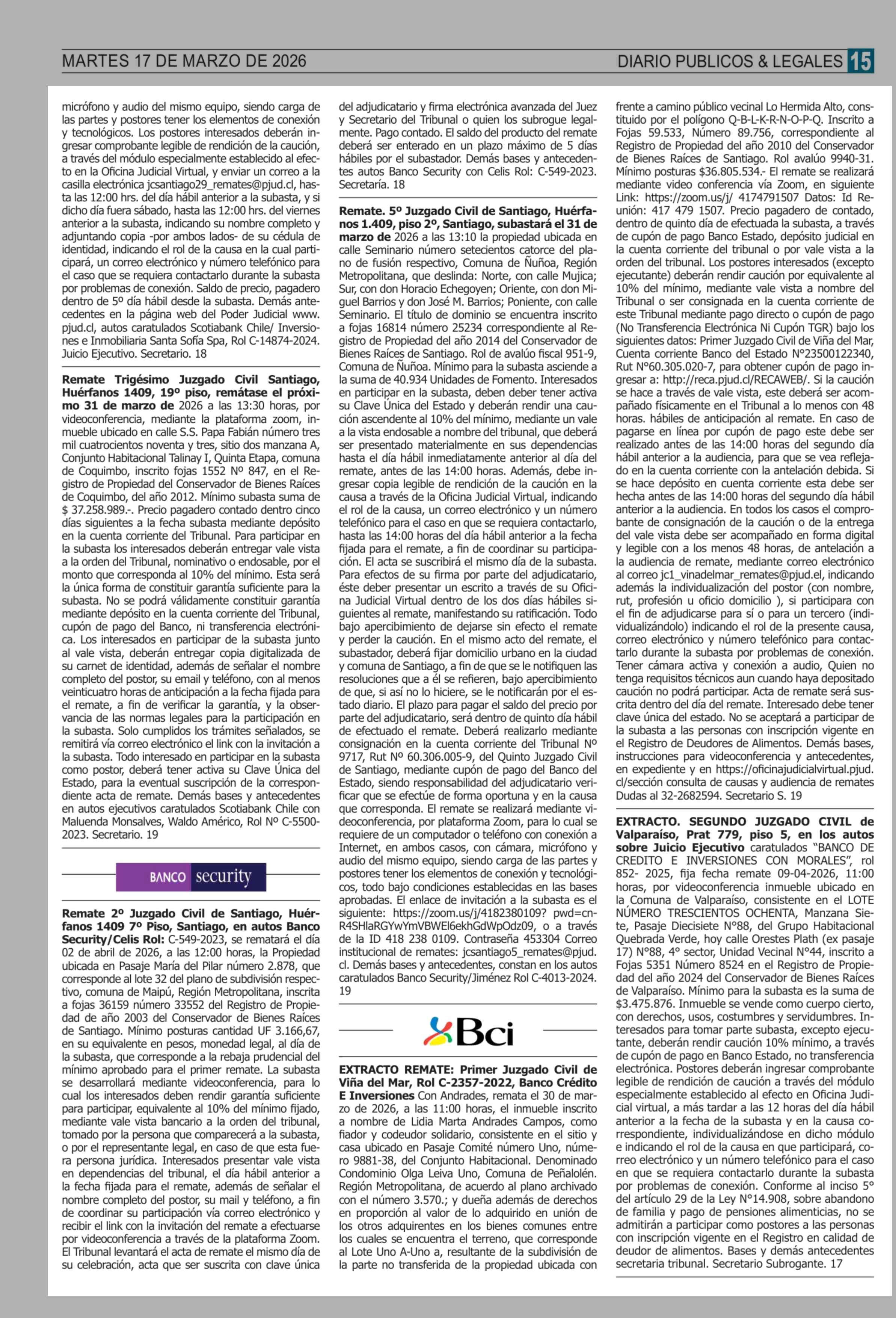 Fecha: 17-03-2026 Sector: Remates Región: Región Metropolitana de Santiago