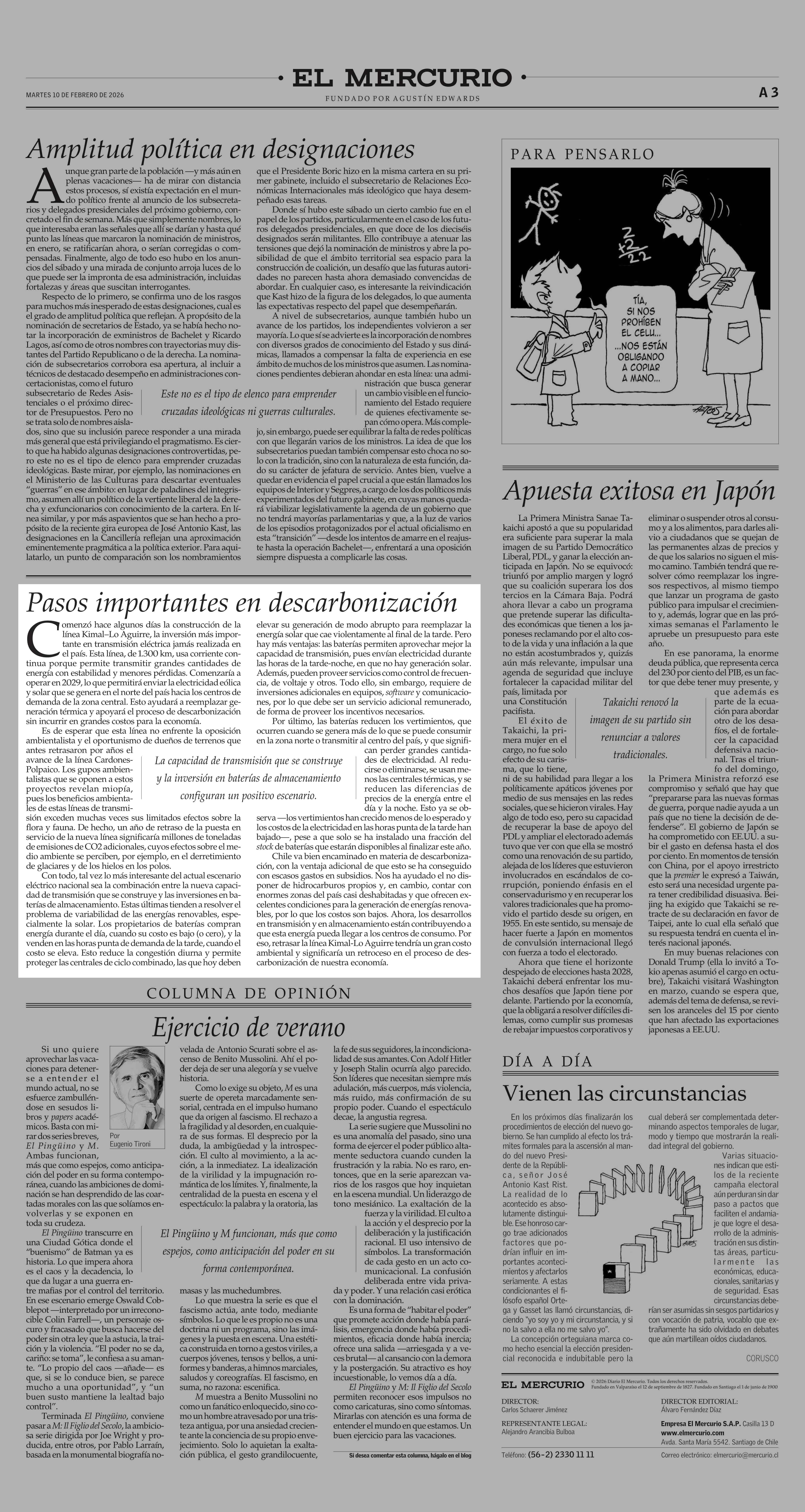 Editorial: Pasos importantes en descarbonización 10-02-2026 El Mercurio |