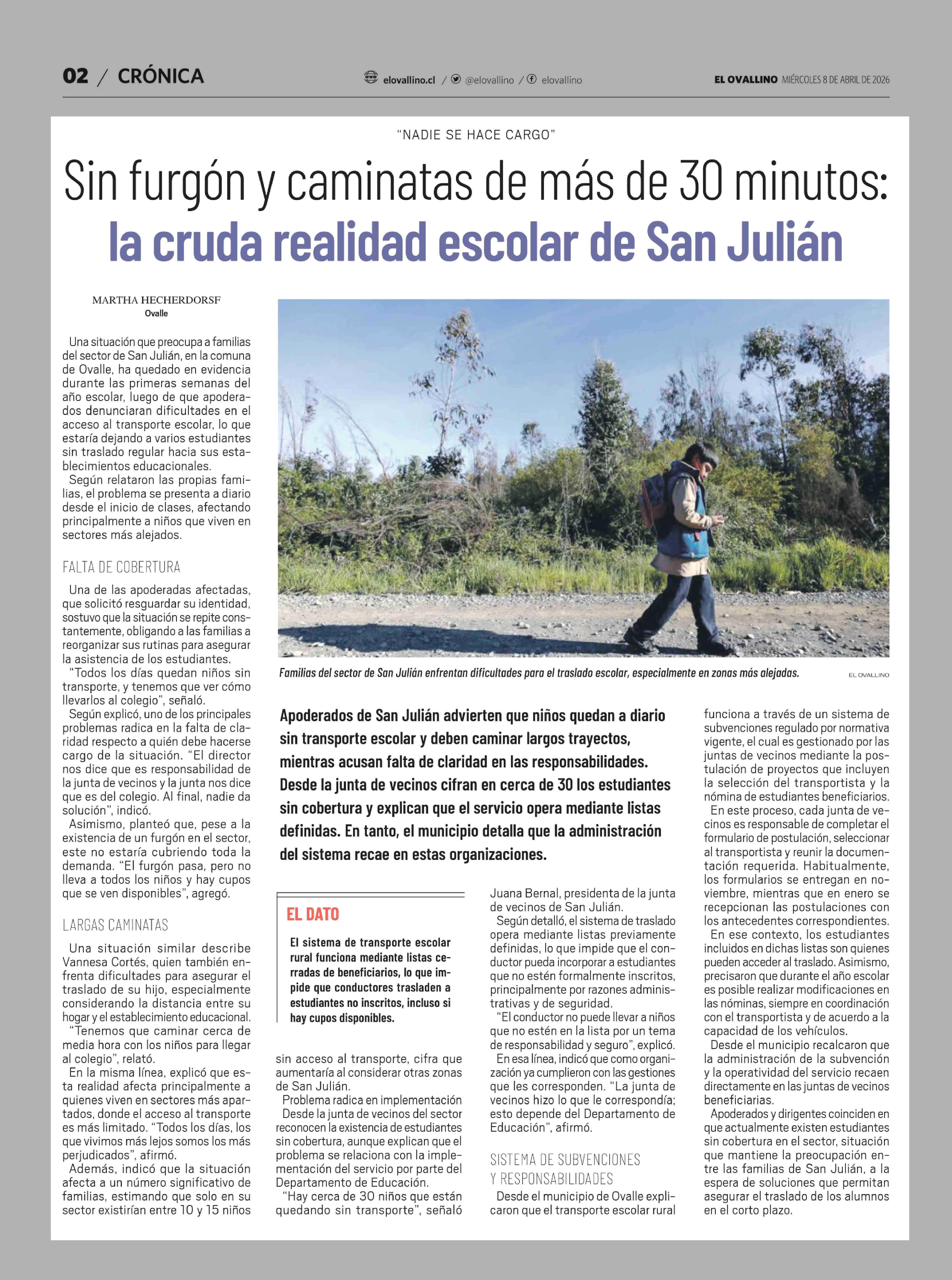 Sin furgón y caminatas de más de 30 minutos: la cruda realidad escolar de San Julián 08-04-2026 El Ovallino |