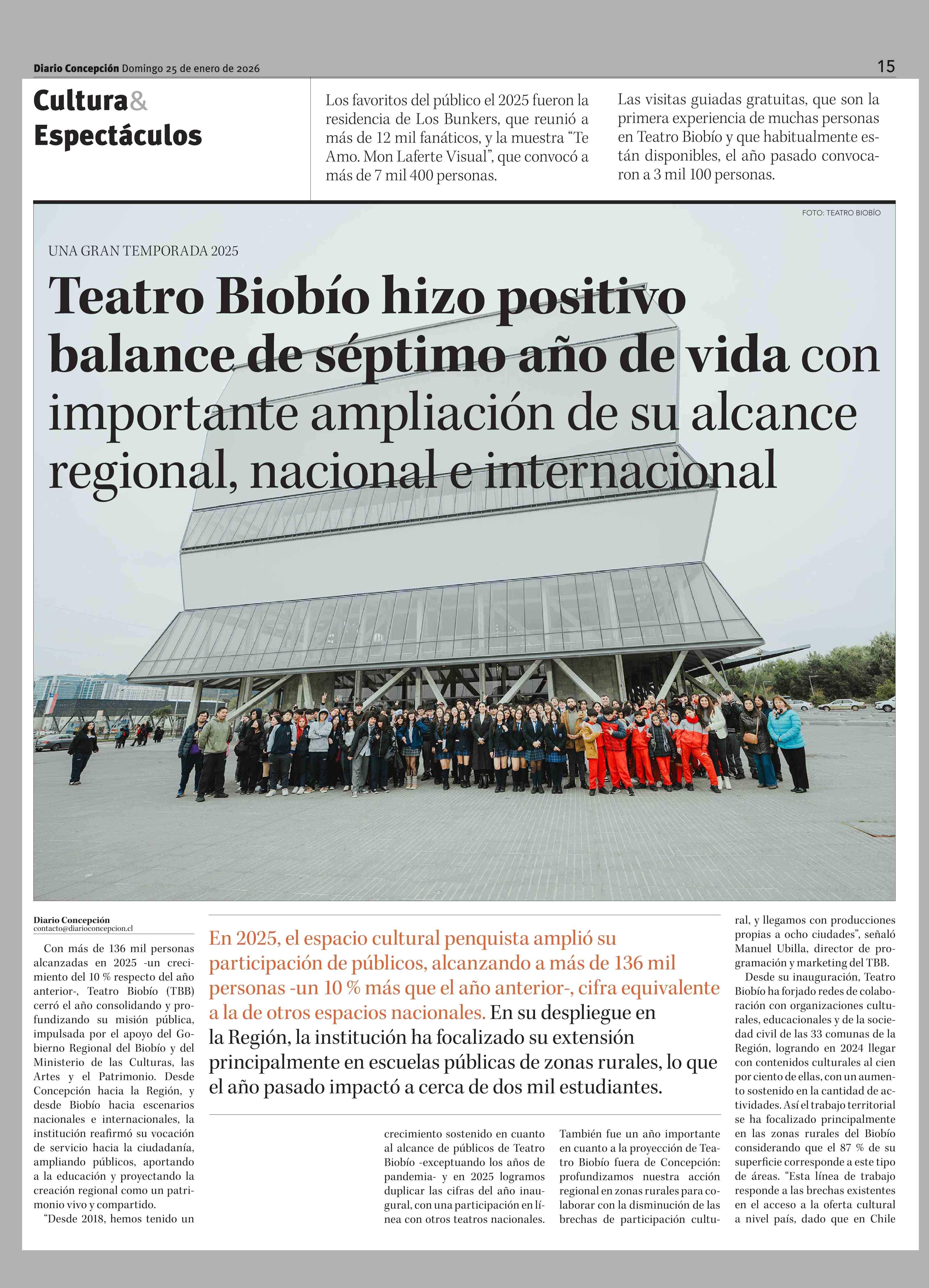Título: Teatro Biobío hizo positivo balance de séptimo año de vida con importante ampliación de su alcance regional, nacional e internacional