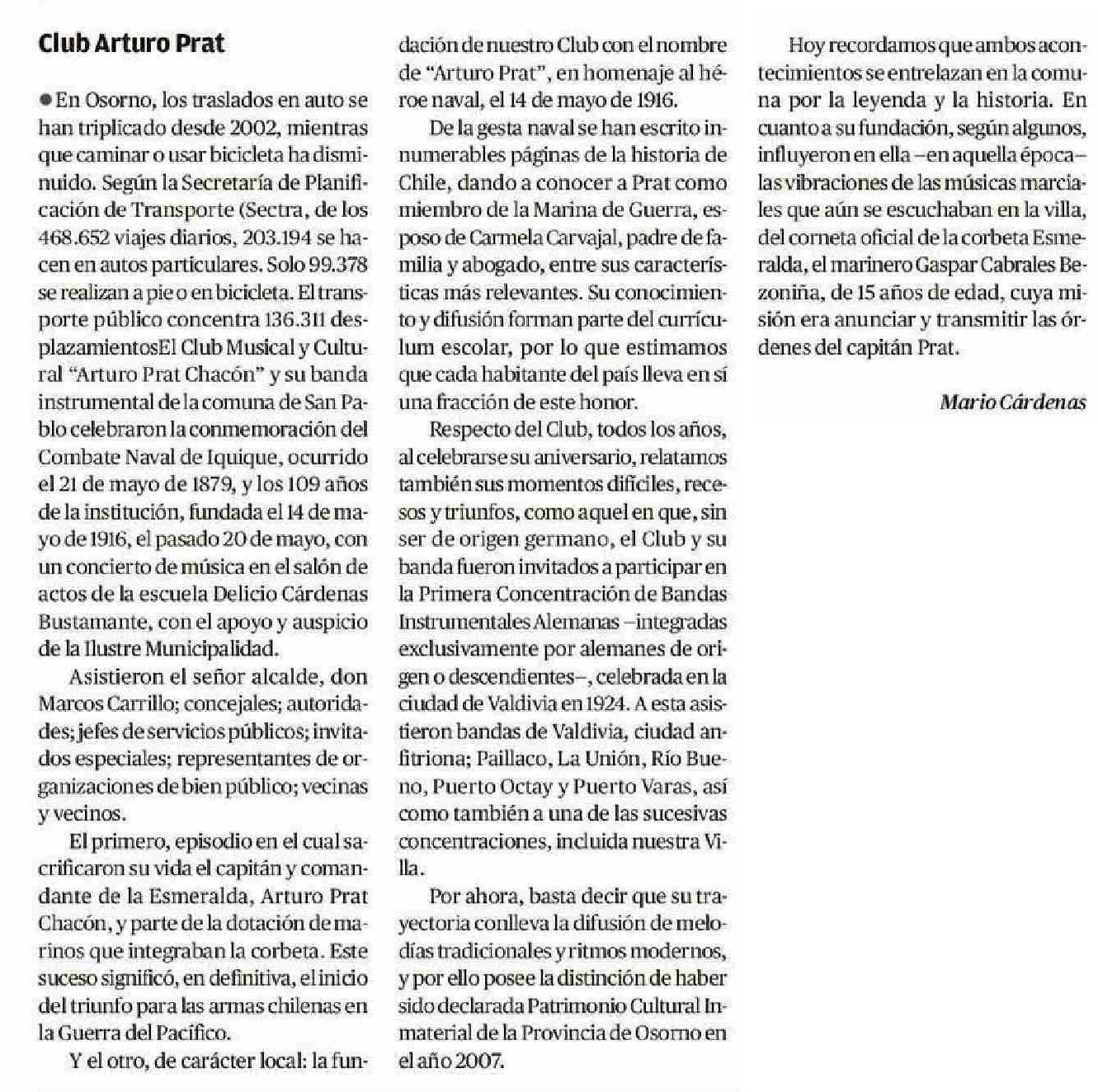 CARTAS: Club Arturo Prat 07-06-2025 El Austral de Osorno |