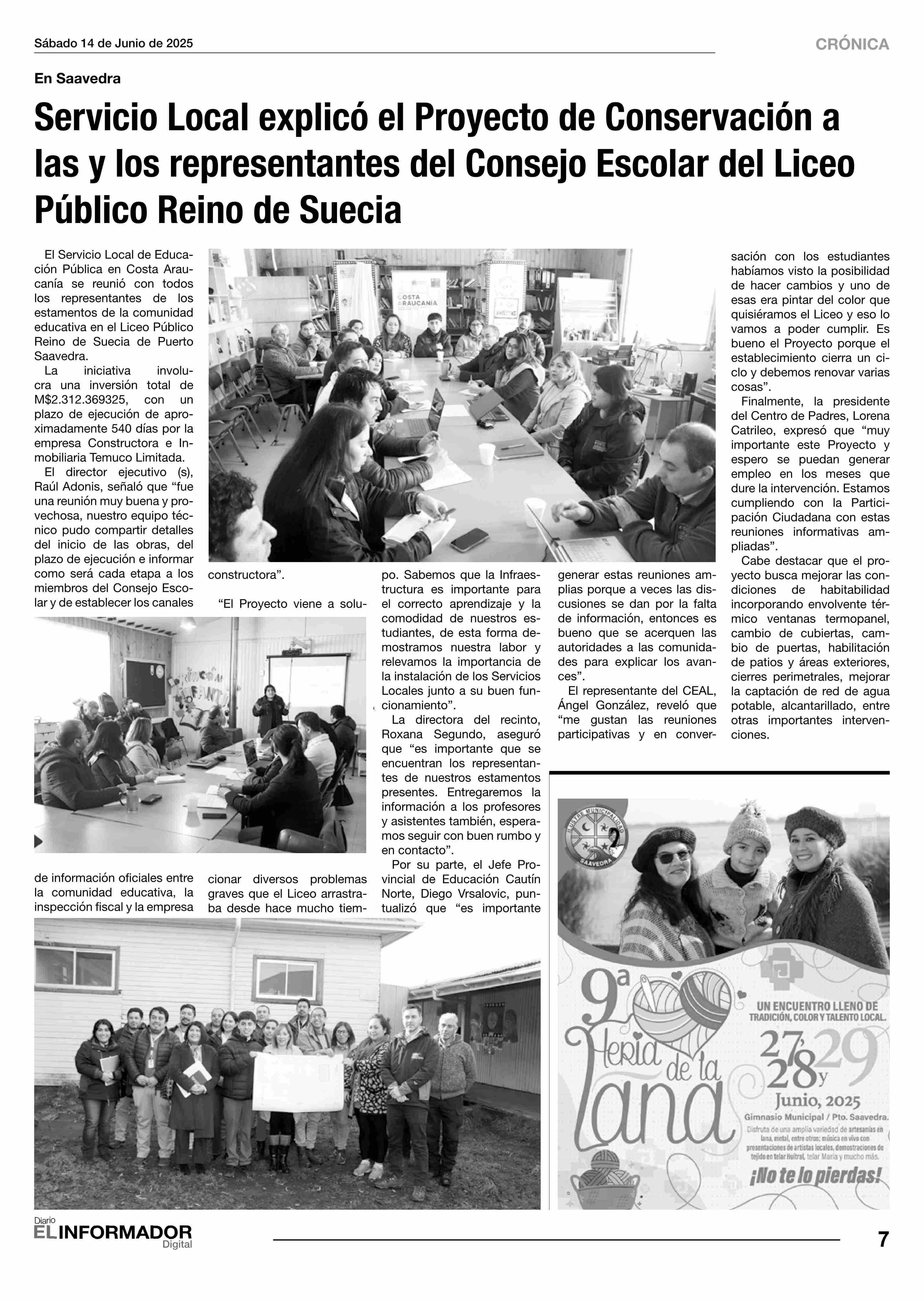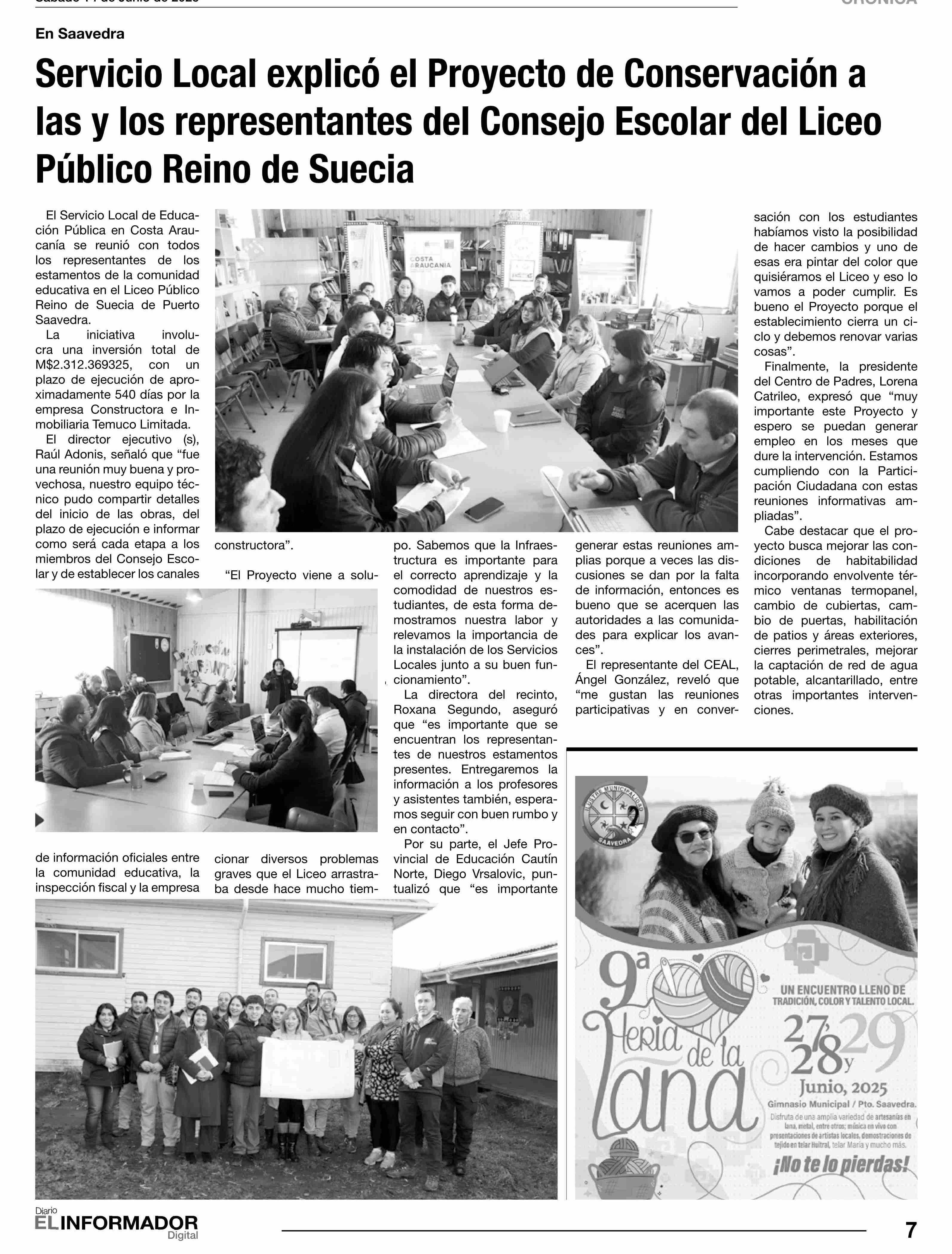 Servicio Local explicó el Proyecto de Conservación a las y los representantes del Consejo Escolar del Liceo Público Reino de Suecia 14-06-2025 El Informador |