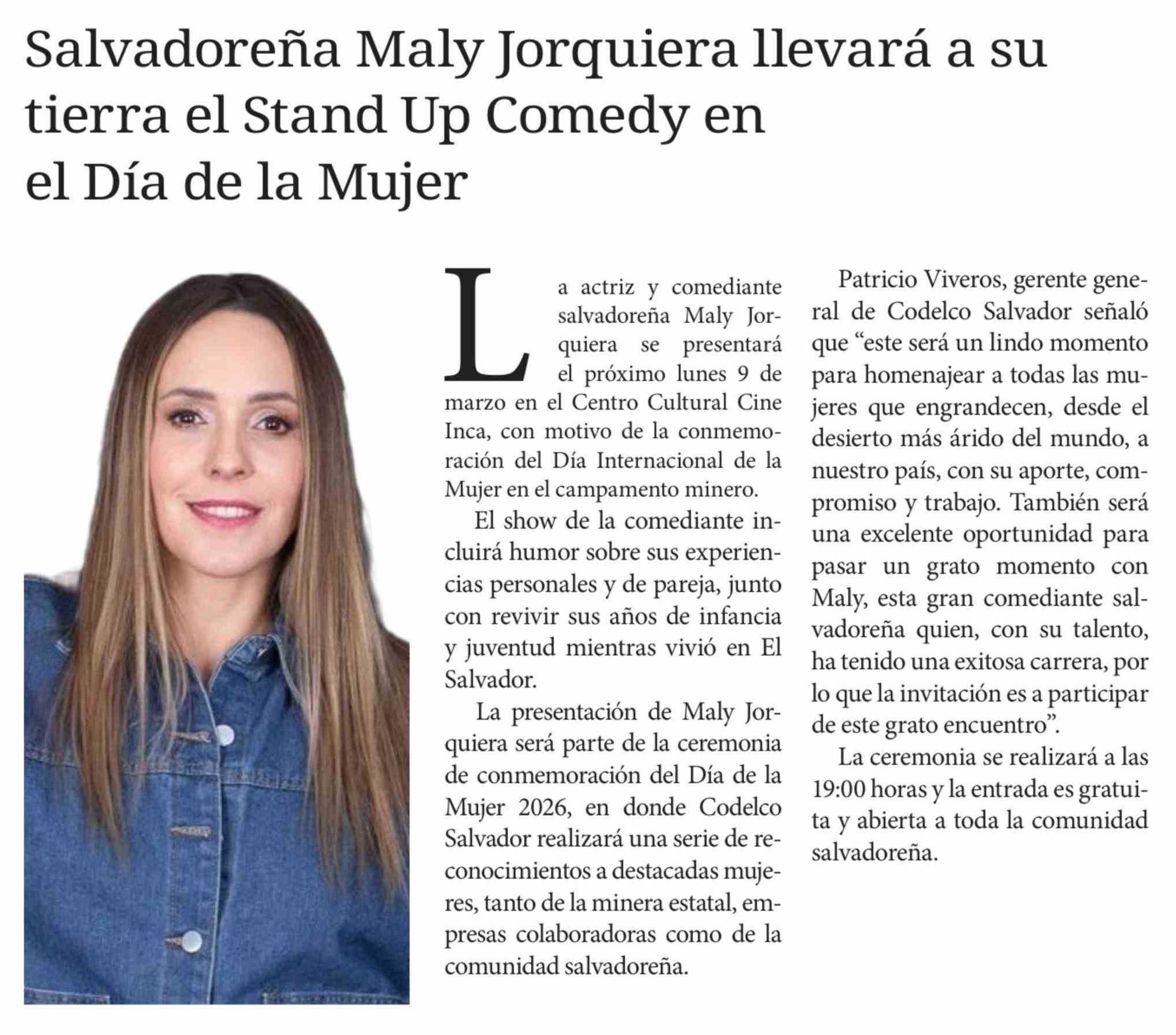 Título: Salvadoreña Maly Jorquiera llevará a su tierra el Stand Up Comedy en el Día de la Mujer