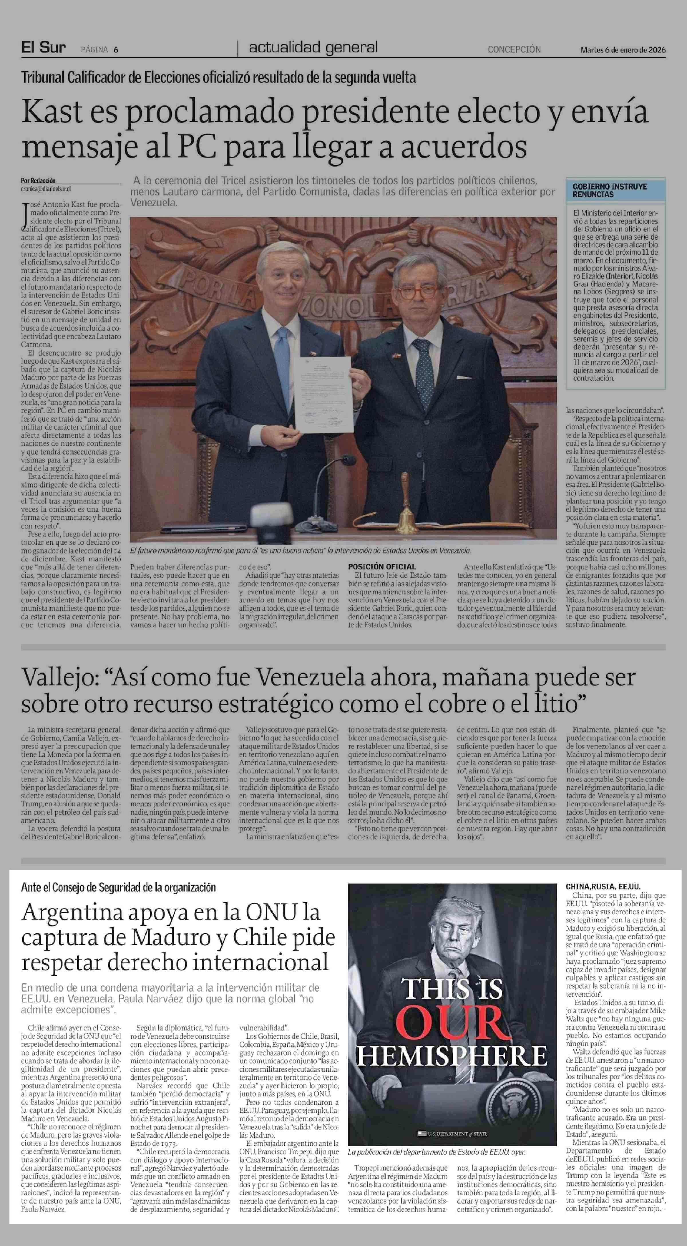 Argentina apoya en la ONU la captura de Maduro y Chile pide respetar derecho internacional 06-01-2026 El Sur |