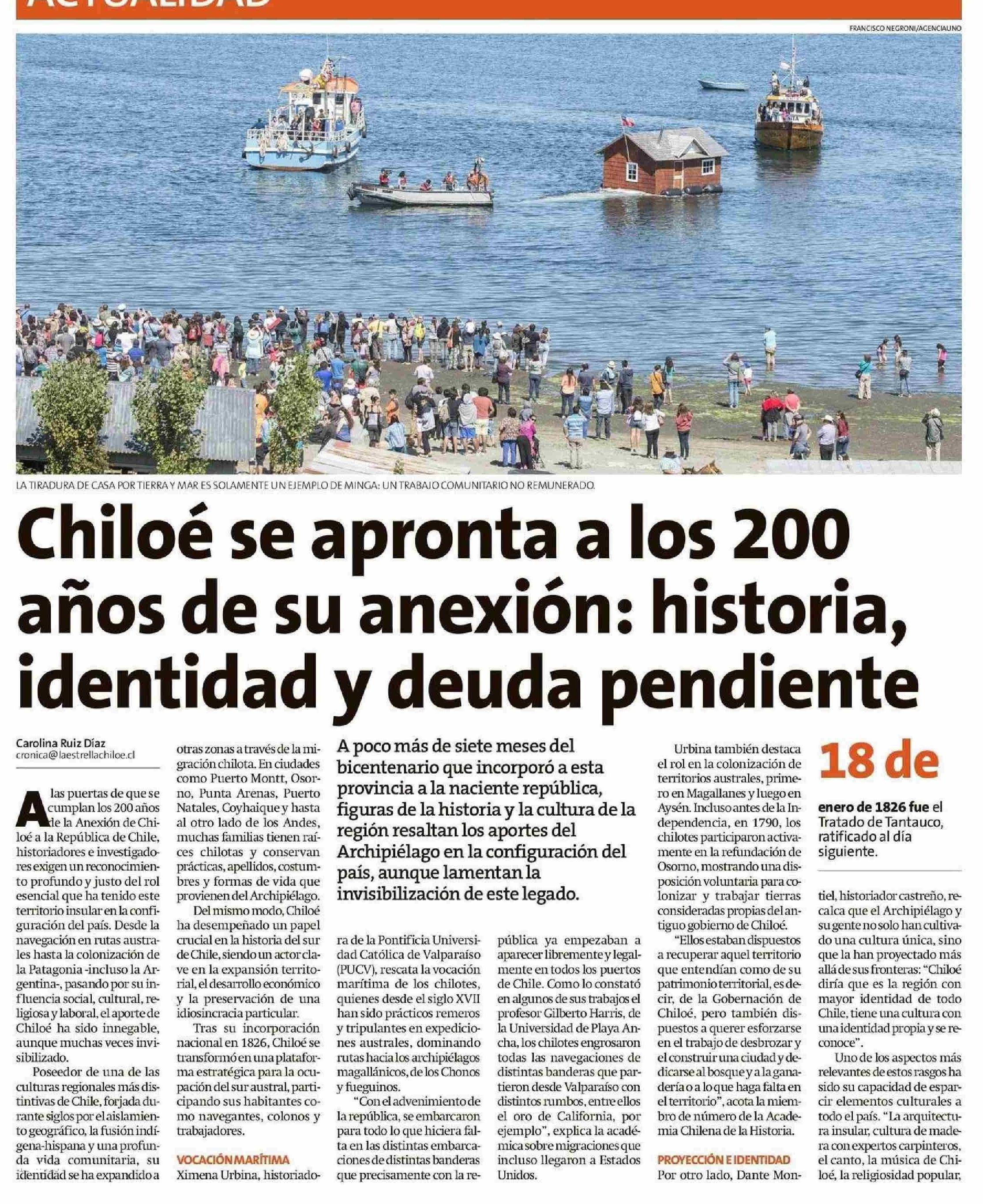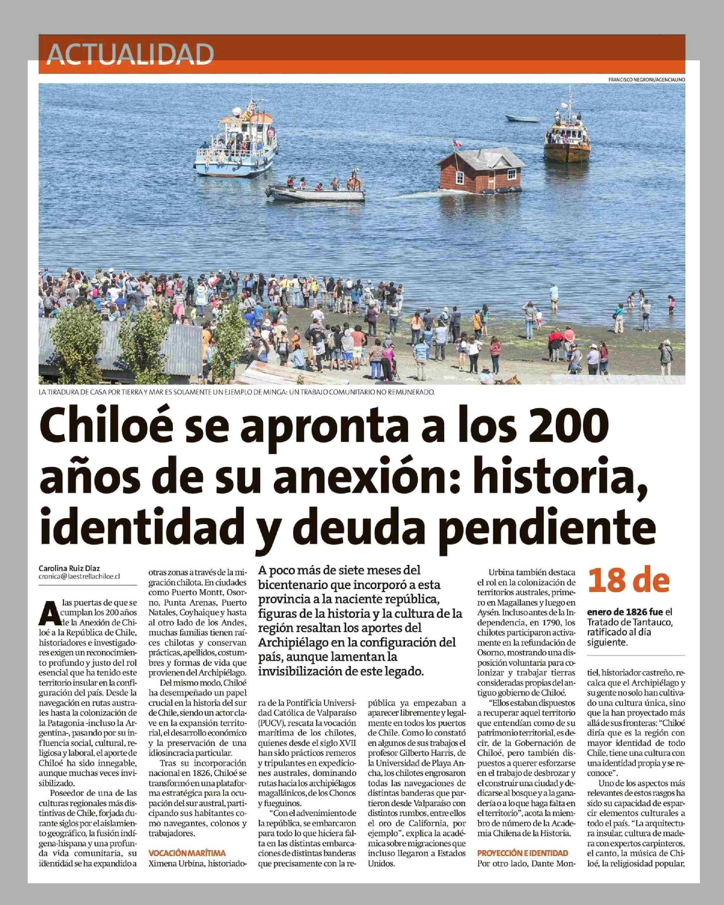 Chiloé se apronta a los 200 identidad y deuda pendiente años de su anexión: historia, 01-06-2025 La Estrella de Chiloé |