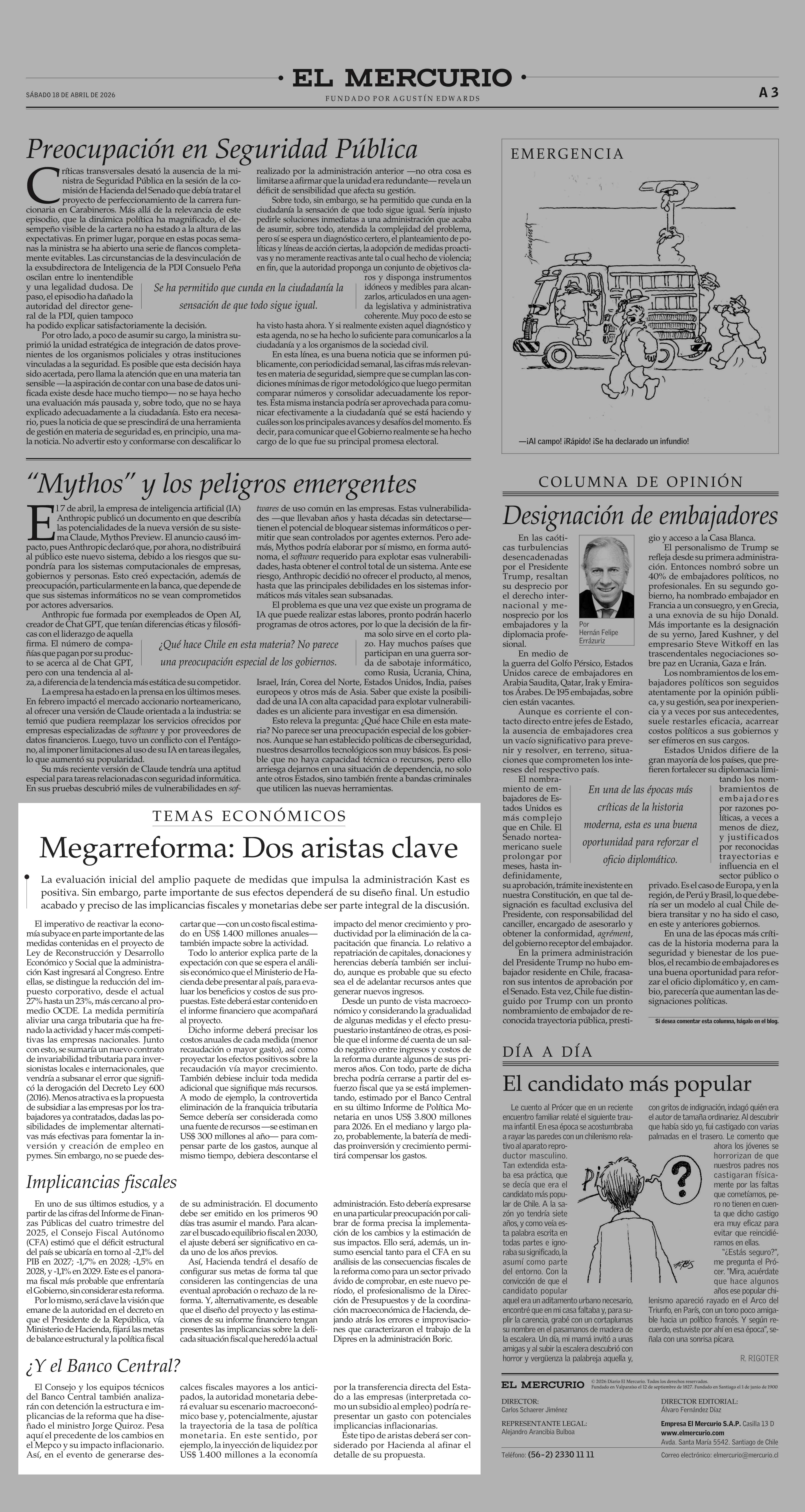 Editorial: Megarreforma: Dos aristas clave 18-04-2026 El Mercurio |