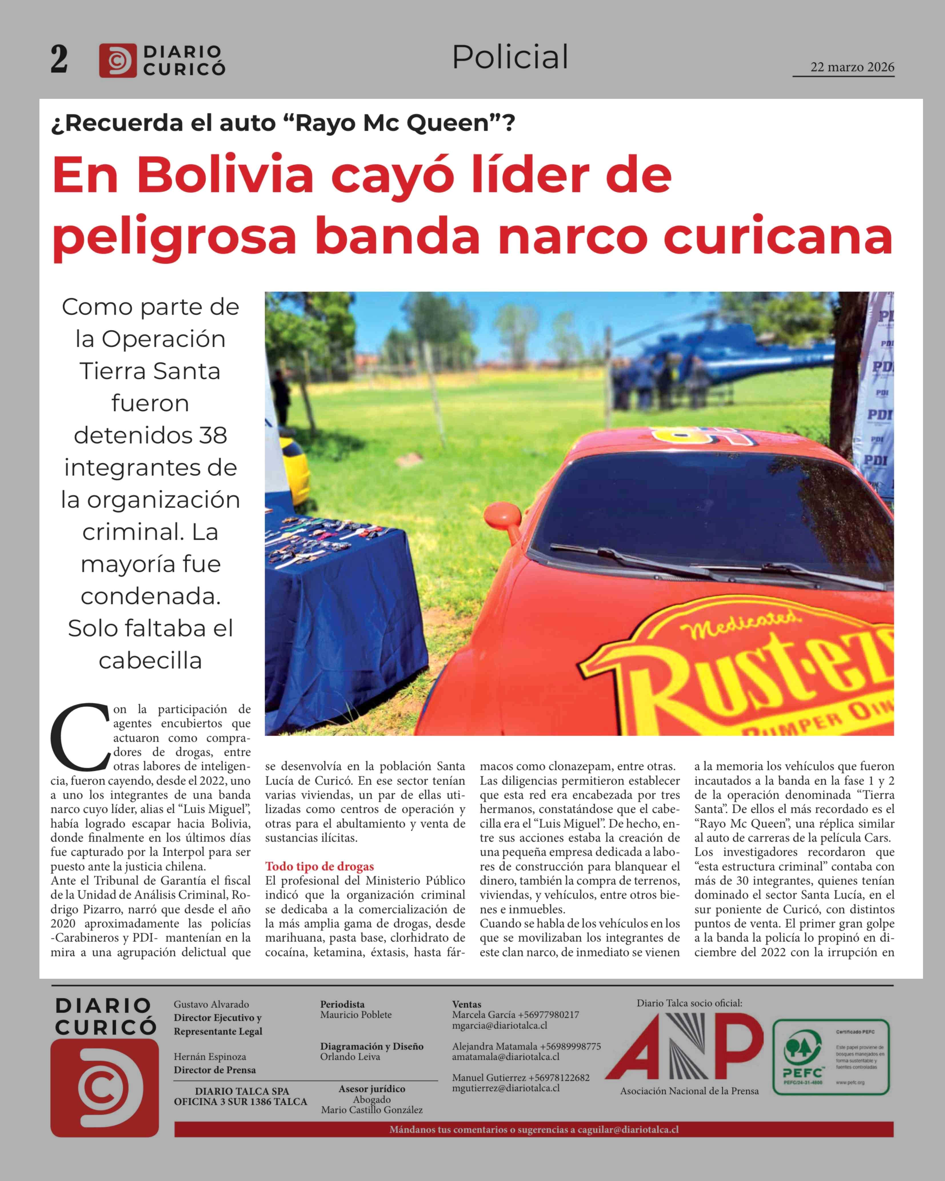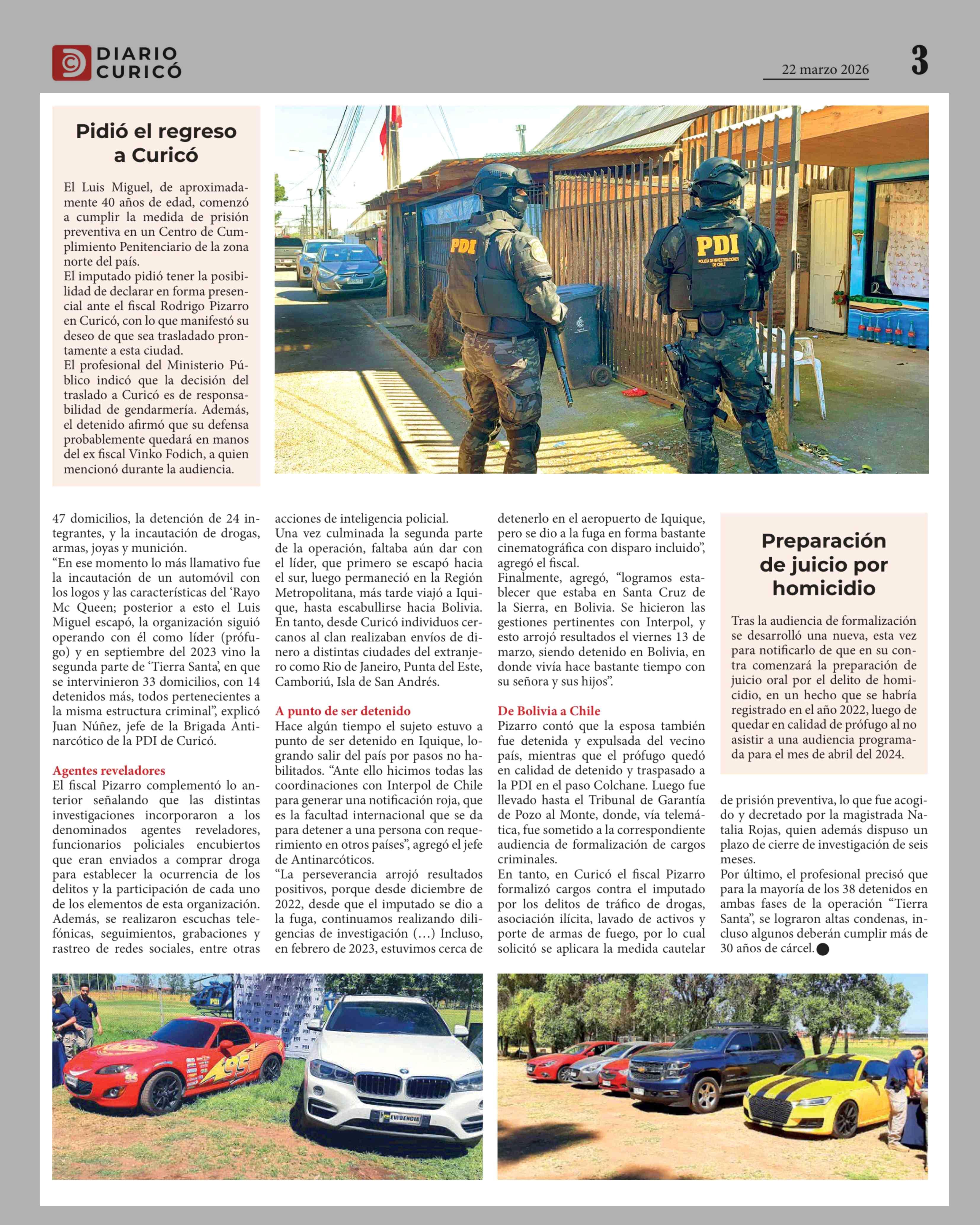 Título: En Bolivia cayó líder de peligrosa banda narco curicana