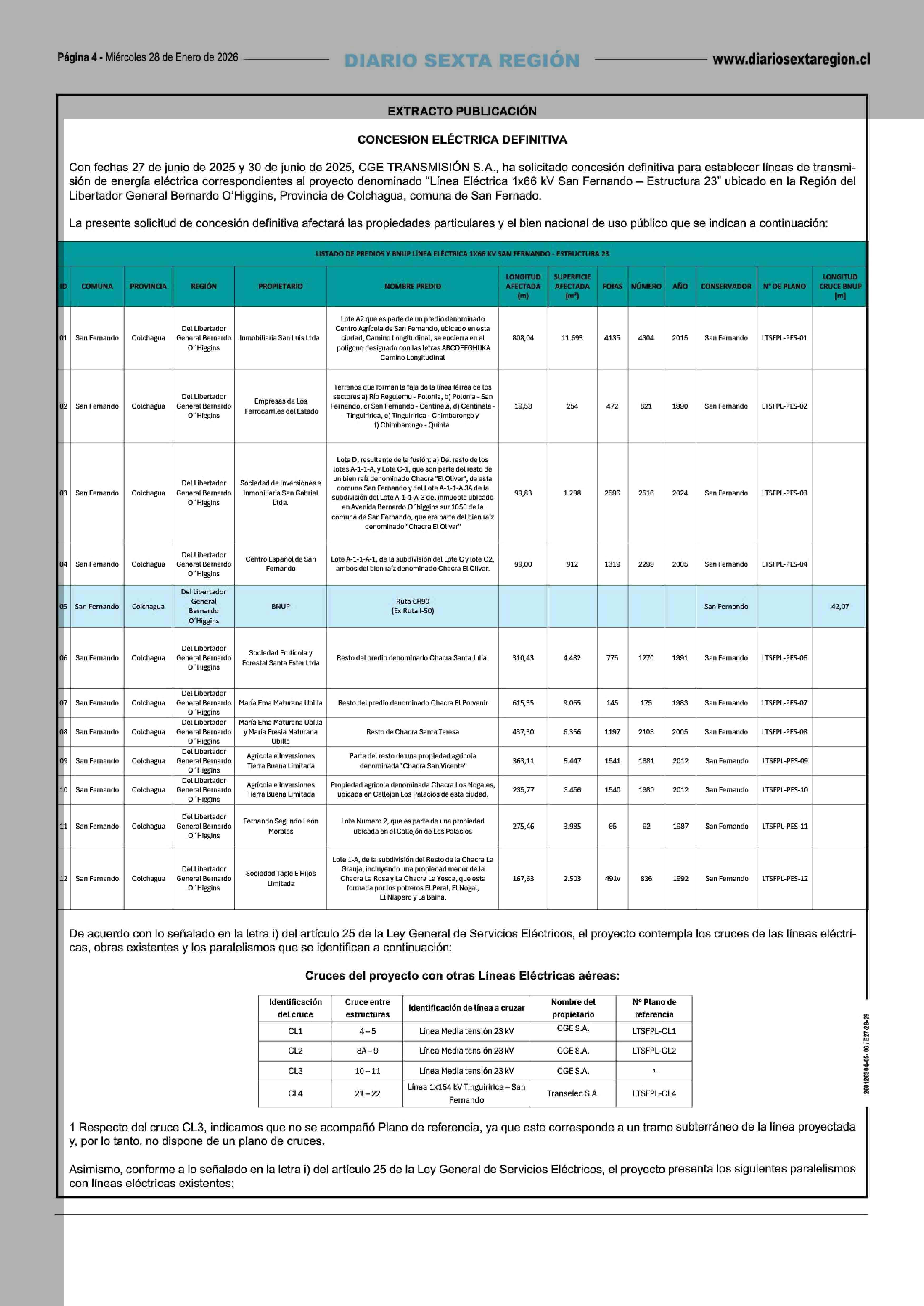 EXTRACTO PUBLICACIÓN 28-01-2026 Diario VI Región |