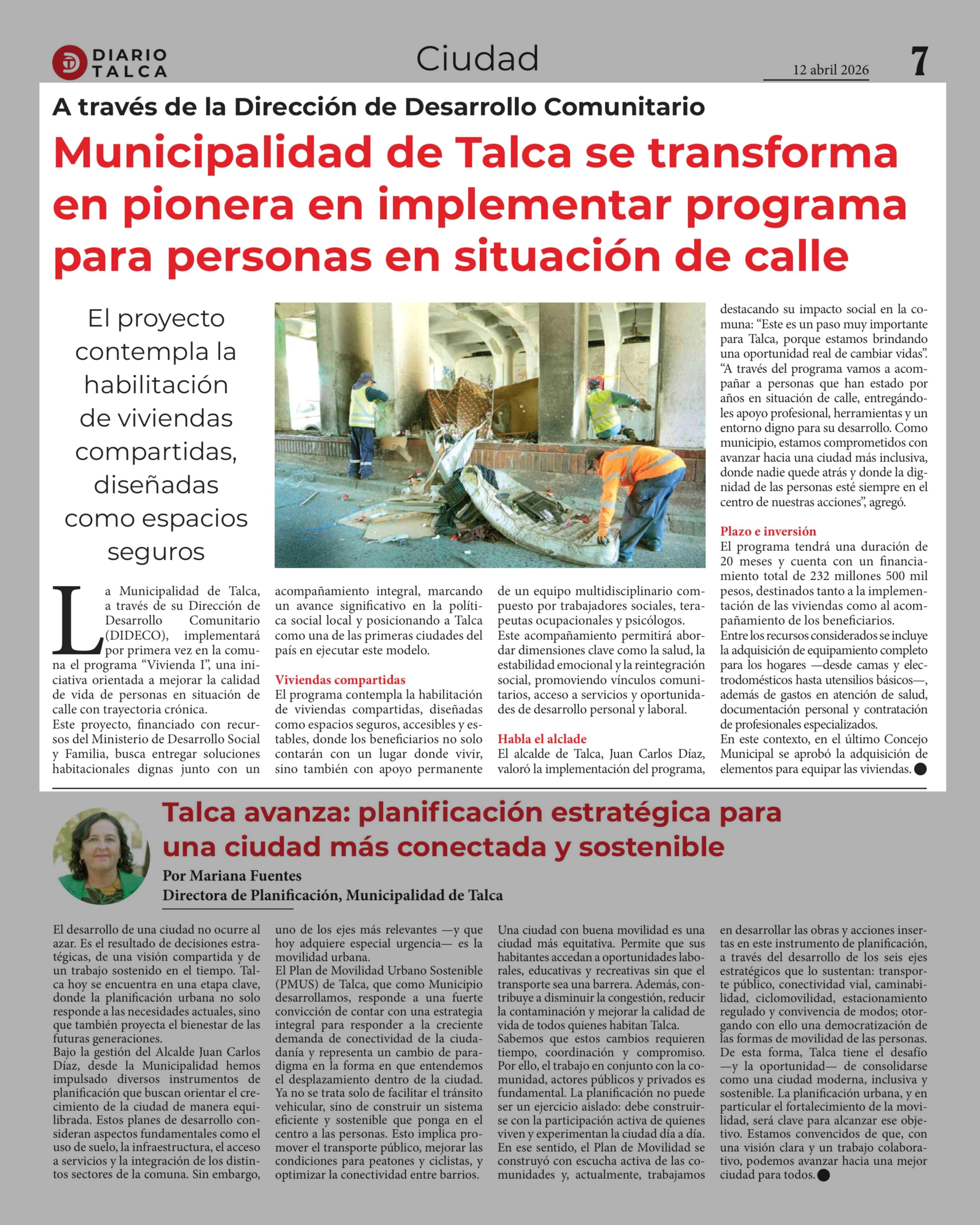 Municipalidad de Talca se transforma en pionera en implementar programa para personas en situación de calle 12-04-2026 Diario Talca |