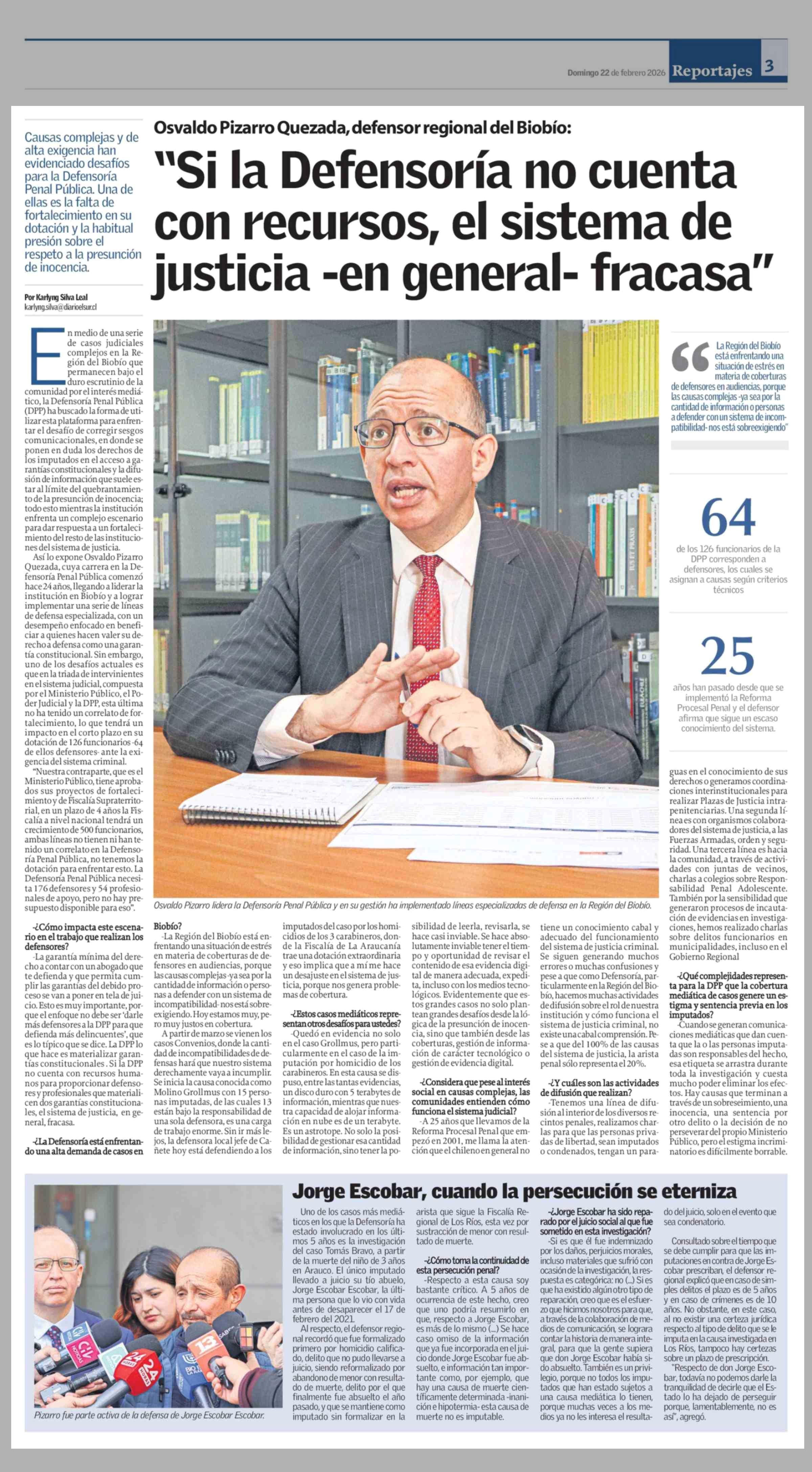 | Título: | "Si la Defensoría no cuenta con recursos, el sistema de justicia -en general- fracasa" |