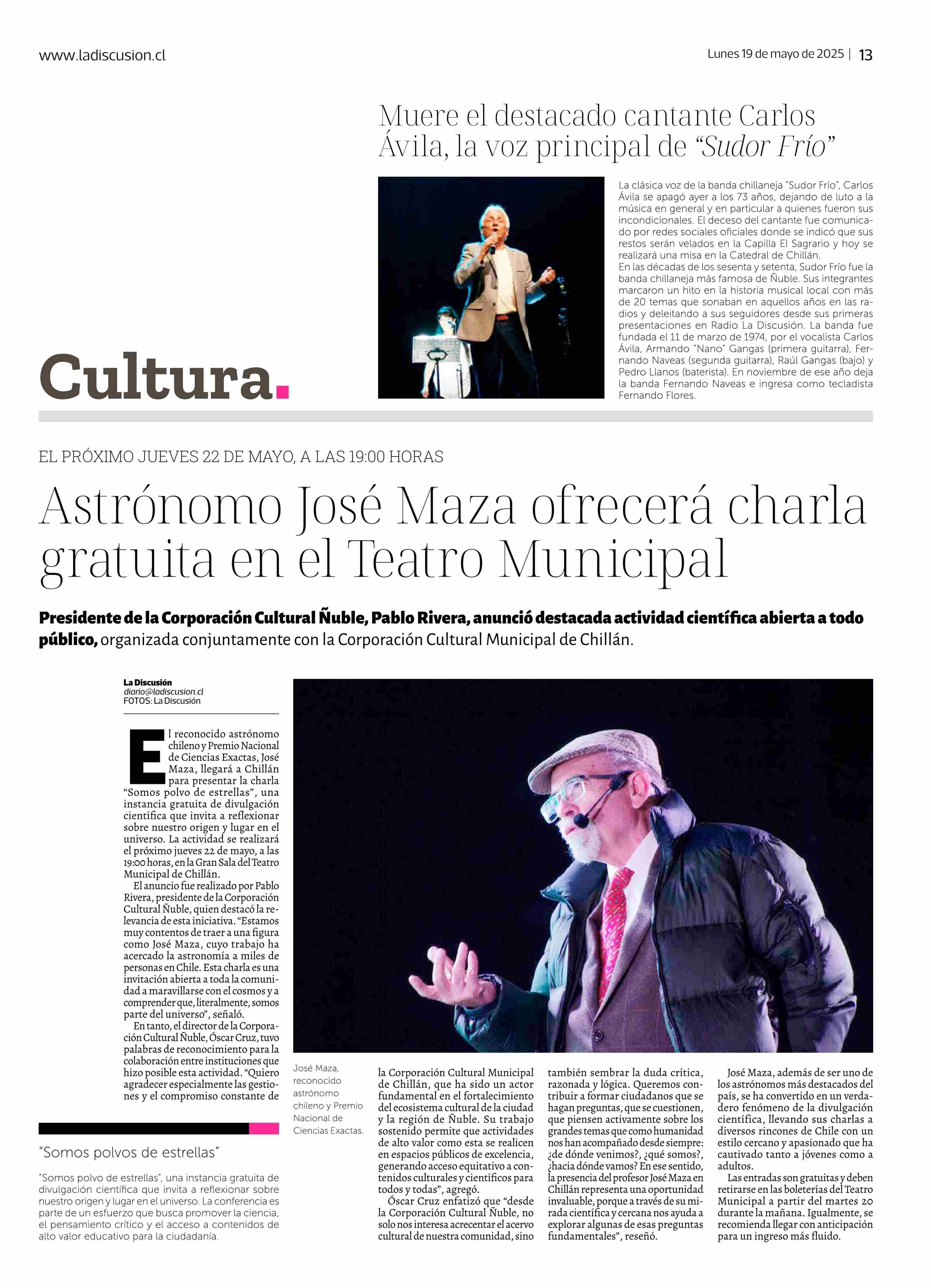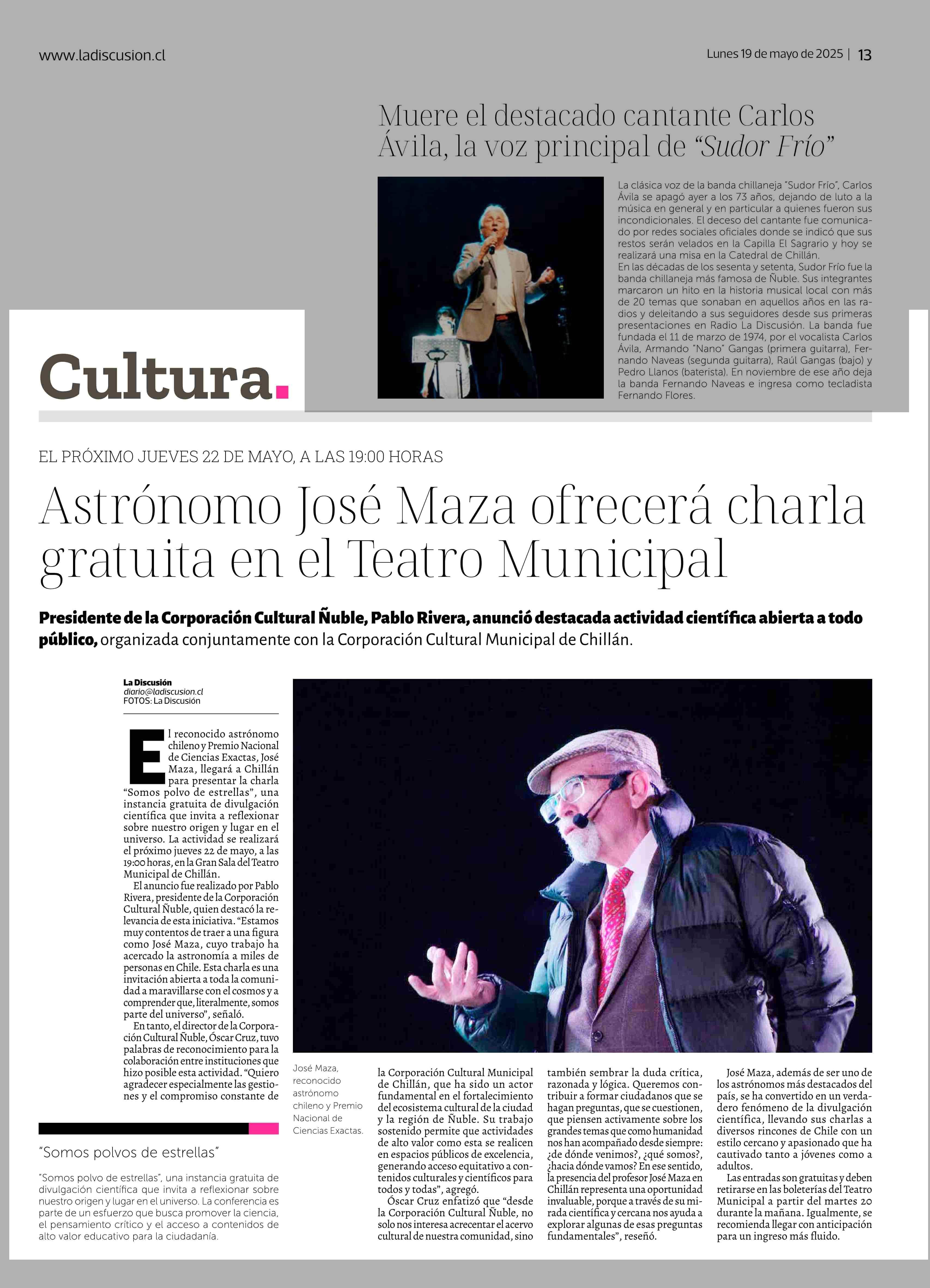 Título: Astrónomo José Maza ofrecerá charla gratuita en el Teatro Municipal