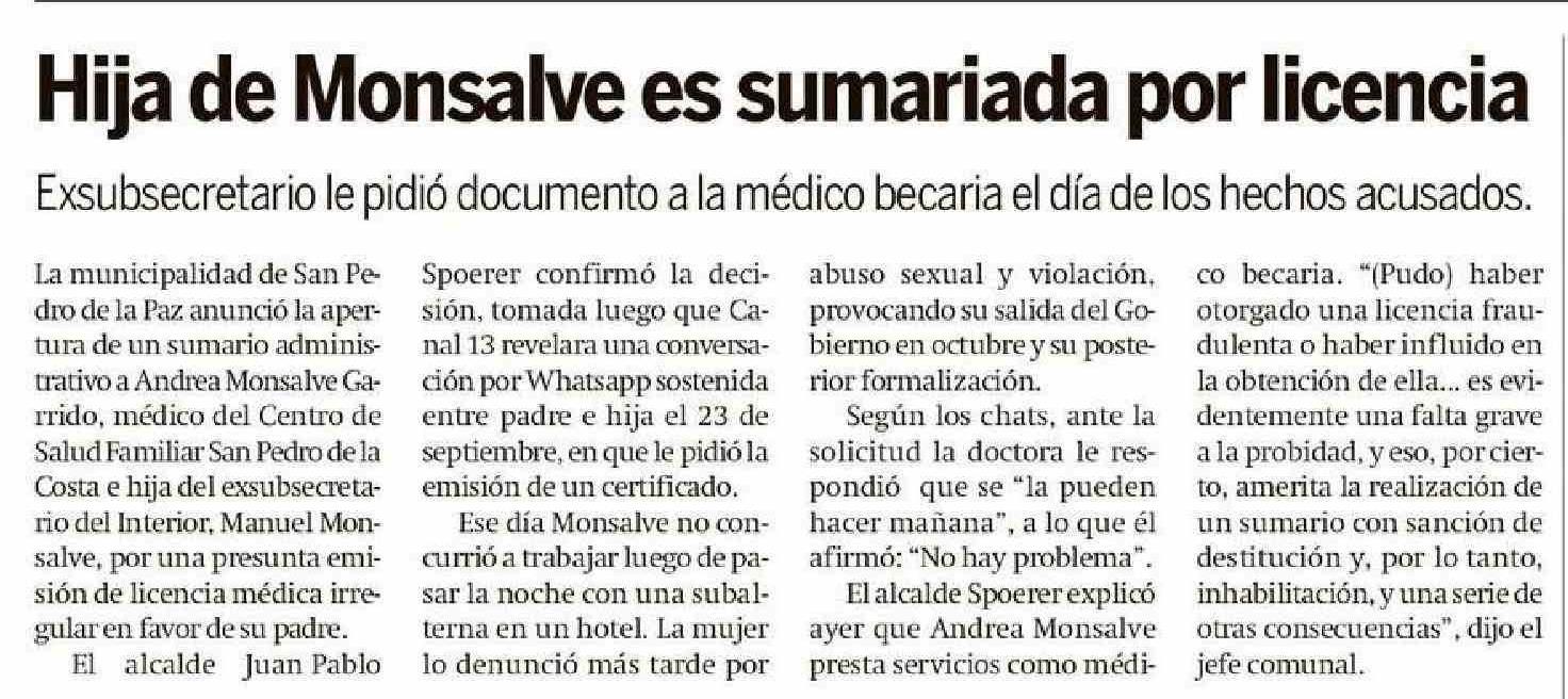 | Título: | Hija de Monsalve es sumariada por licencia |