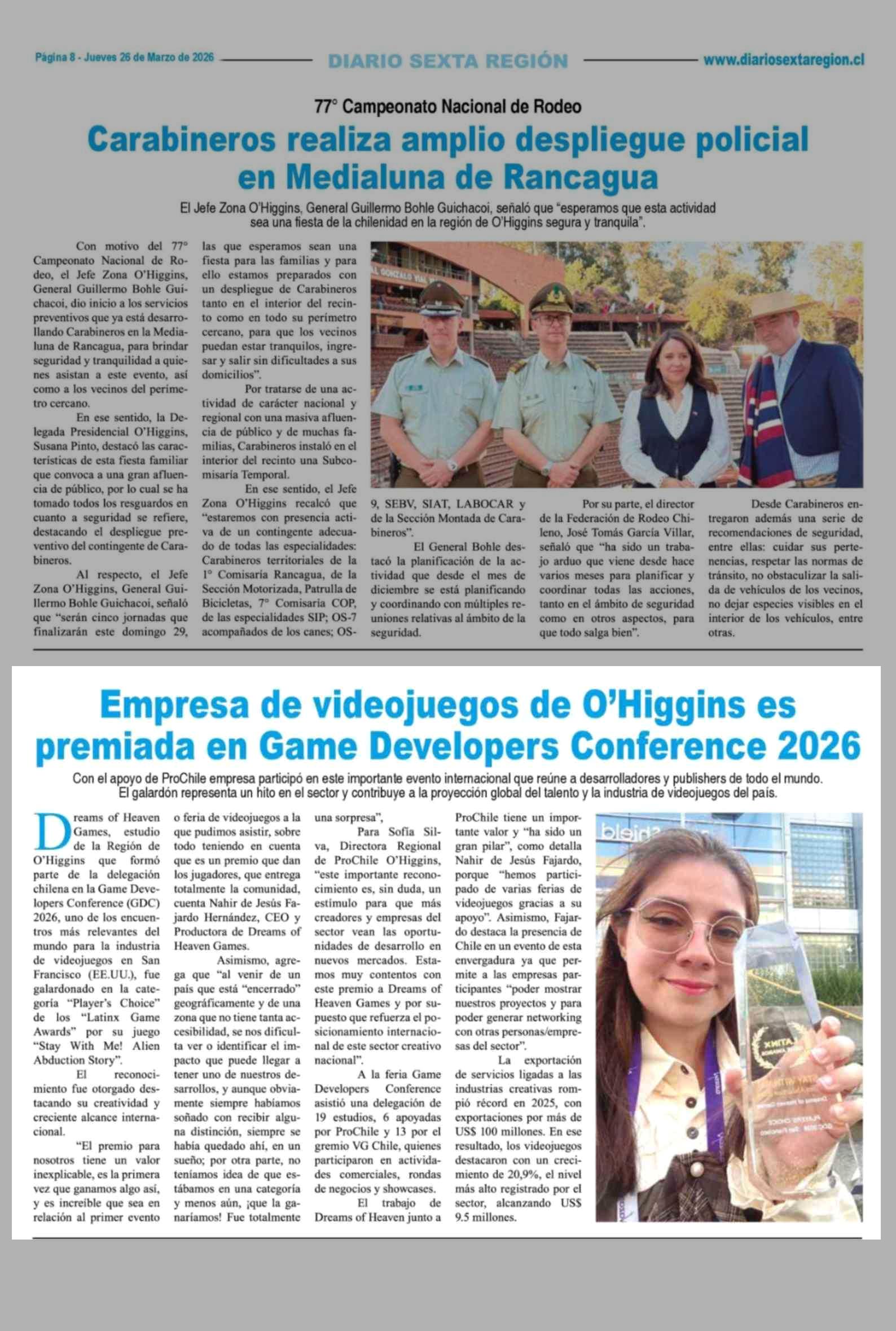 Título: Empresa de videojuegos de O'Higgins es premiada en Game Developers Conference 2026