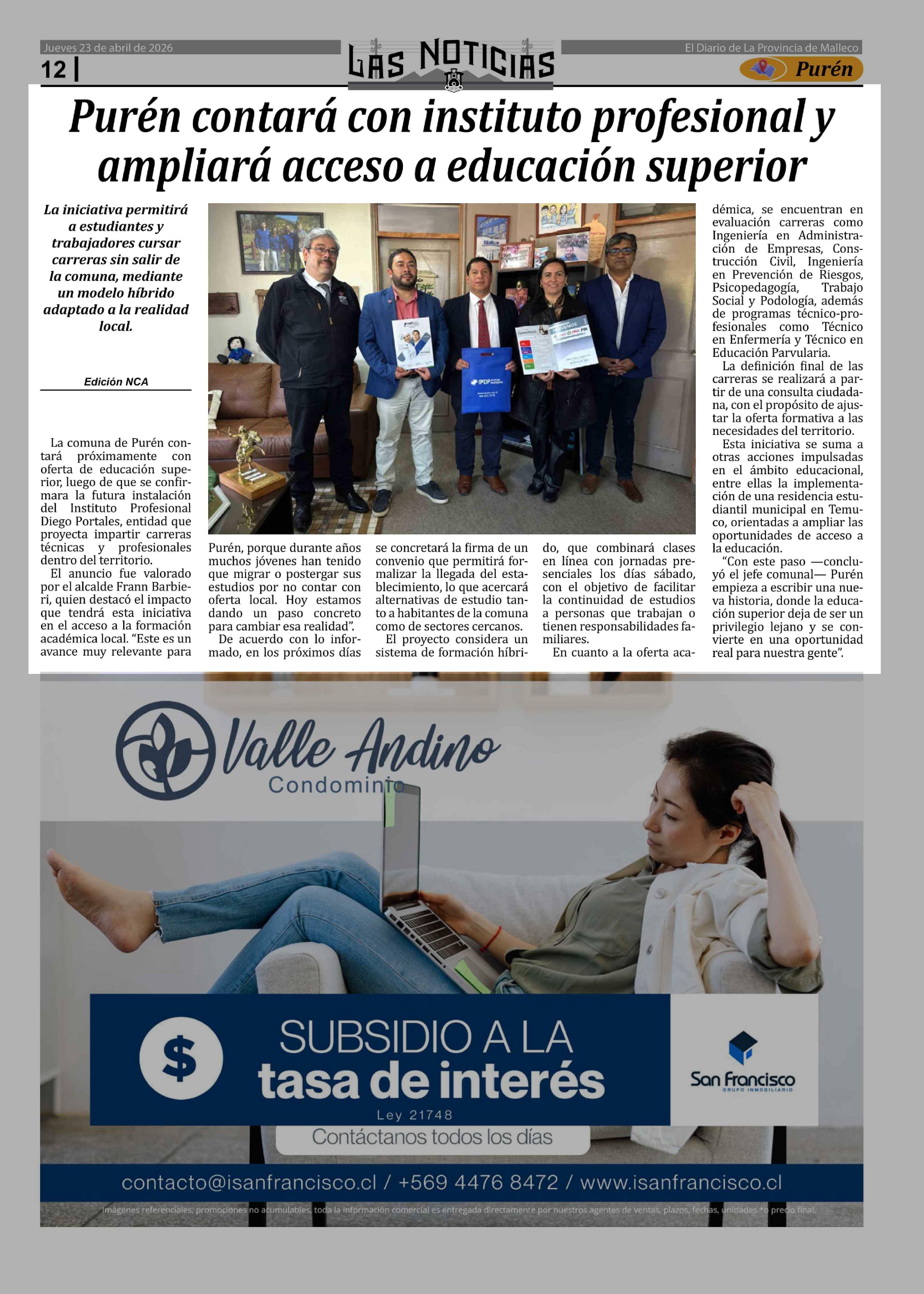 Purén contará con instituto profesional y ampliará acceso a educación superior 23-04-2026 Las Noticias |