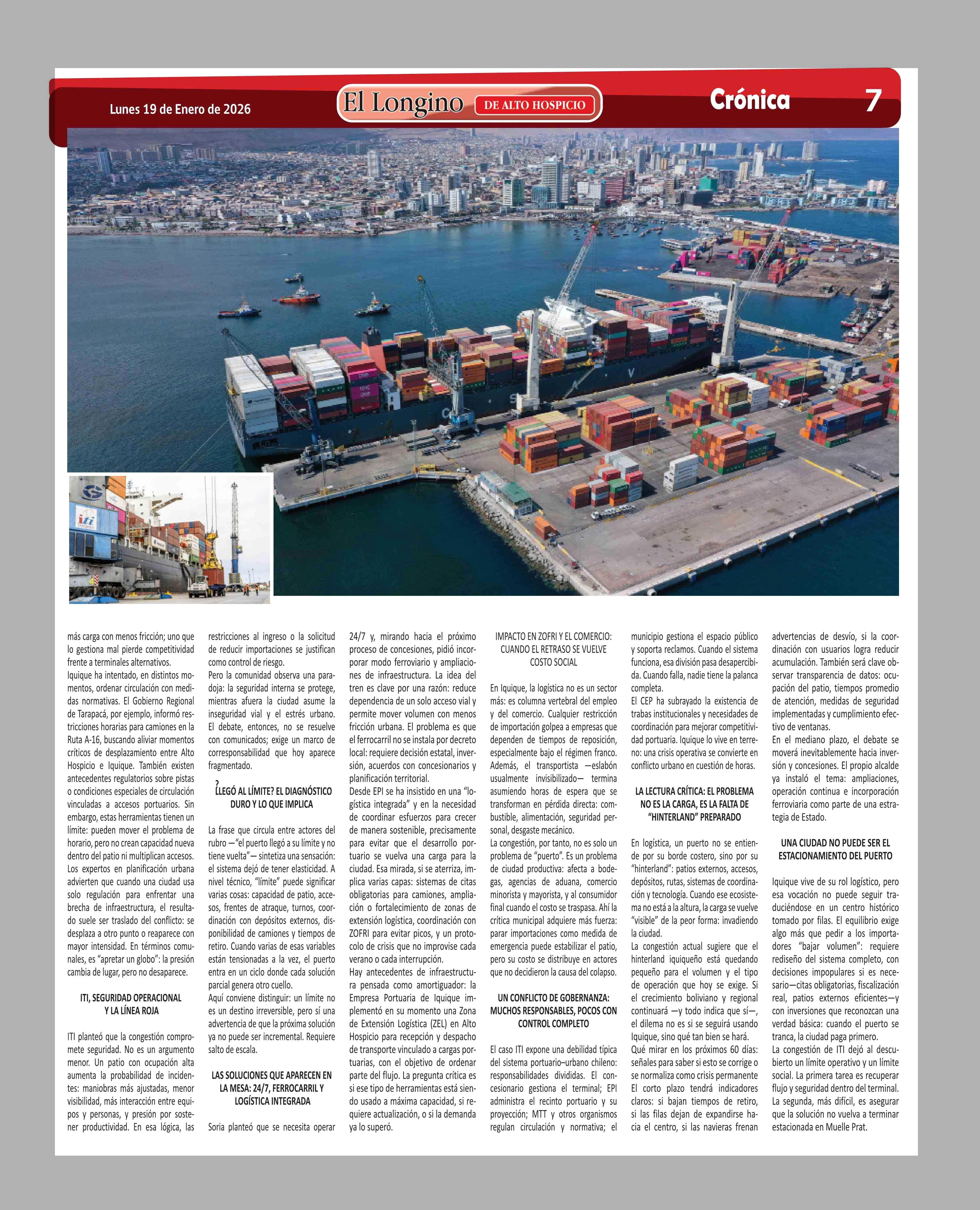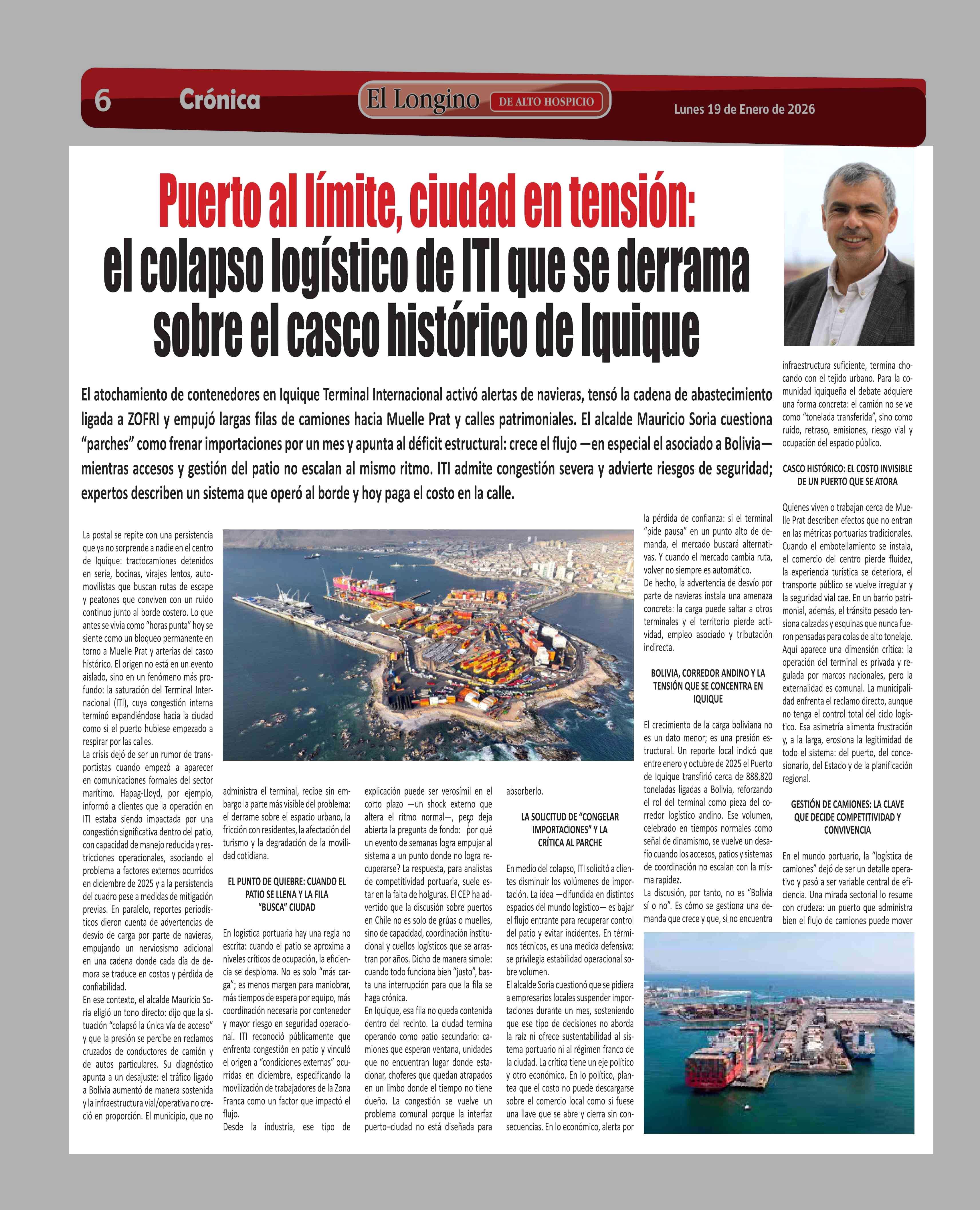 Puerto al límite, ciudad en tensión: el colapso logístico de ITI que se derrama sobre el casco histórico de Iquique 19-01-2026 El Longino |