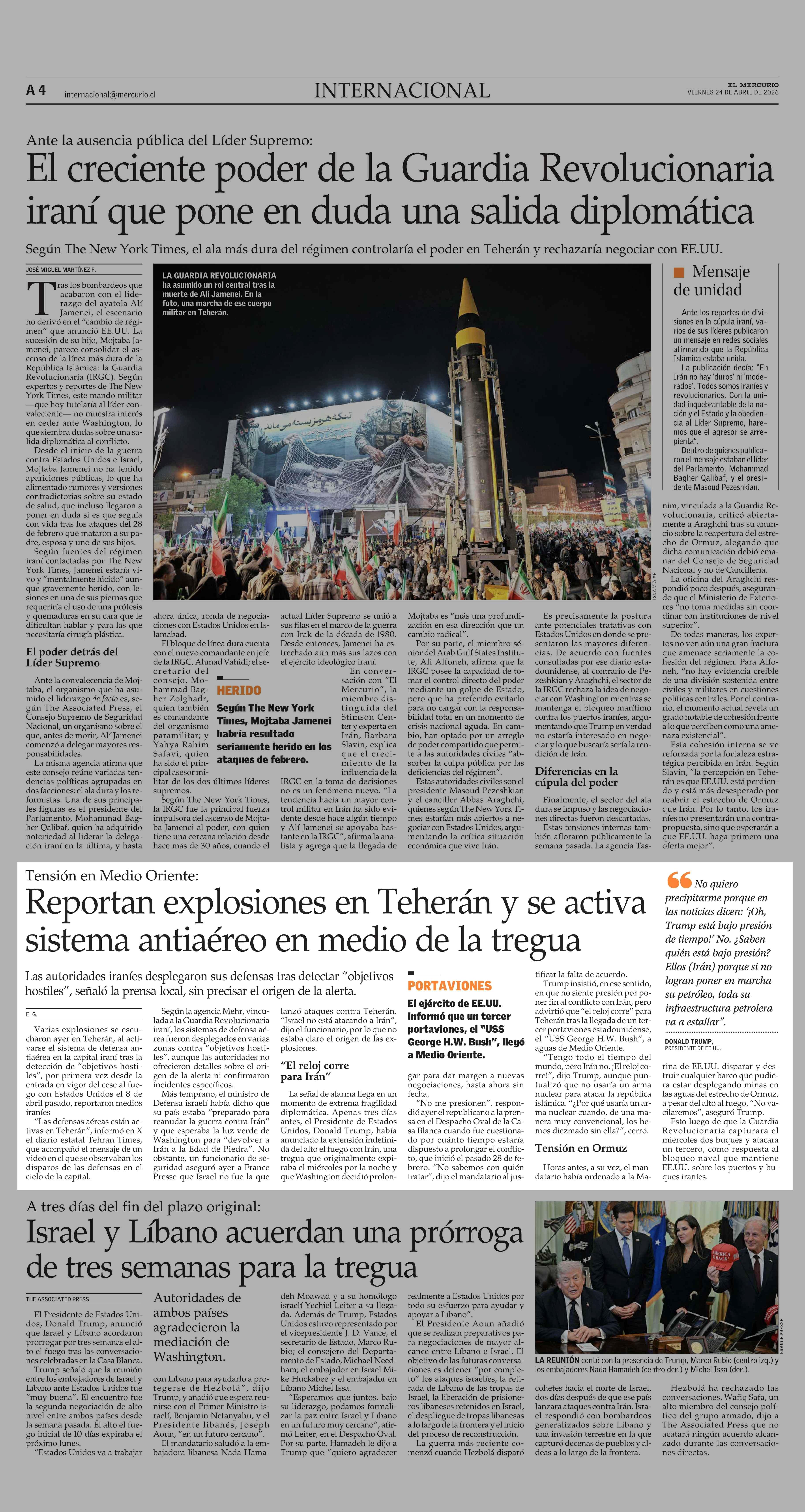 Reportan explosiones en Teherán y se activa sistema antiaéreo en medio de la tregua 24-04-2026 El Mercurio |