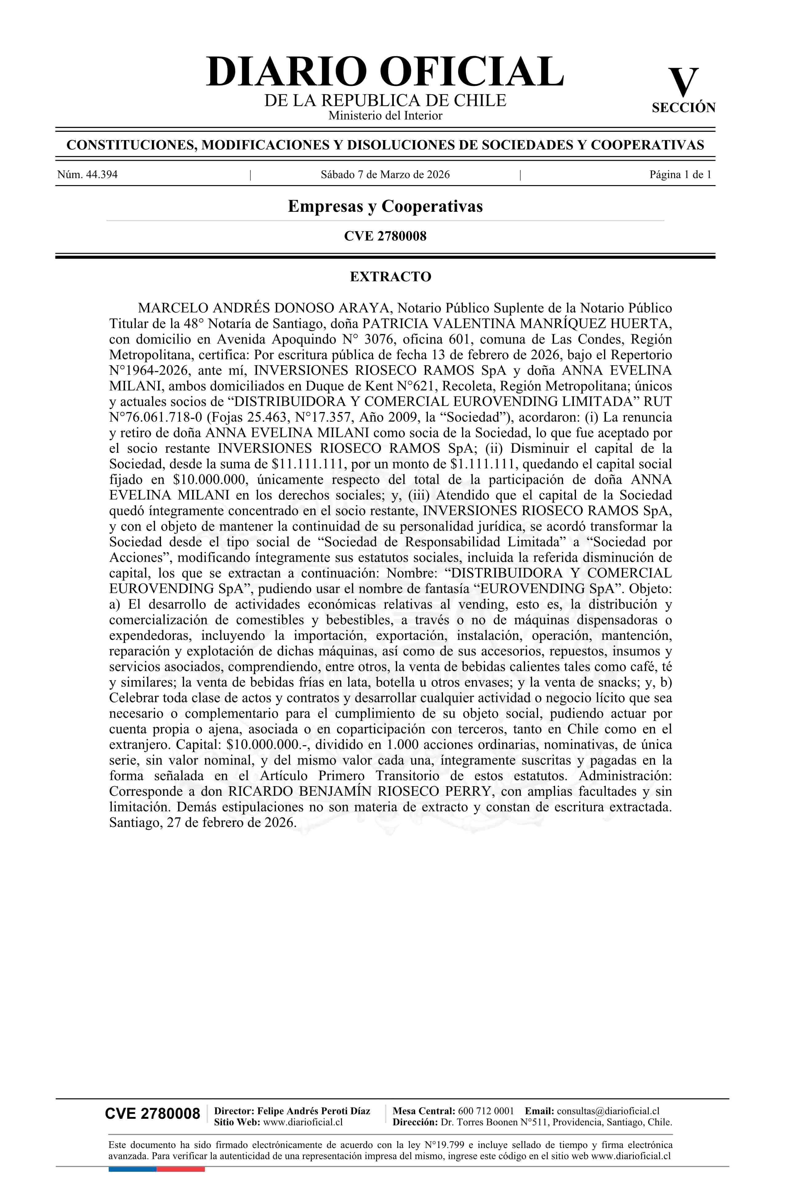 Título: DISTRIBUIDORA Y COMERCIAL EUROVENDING LIMITADA