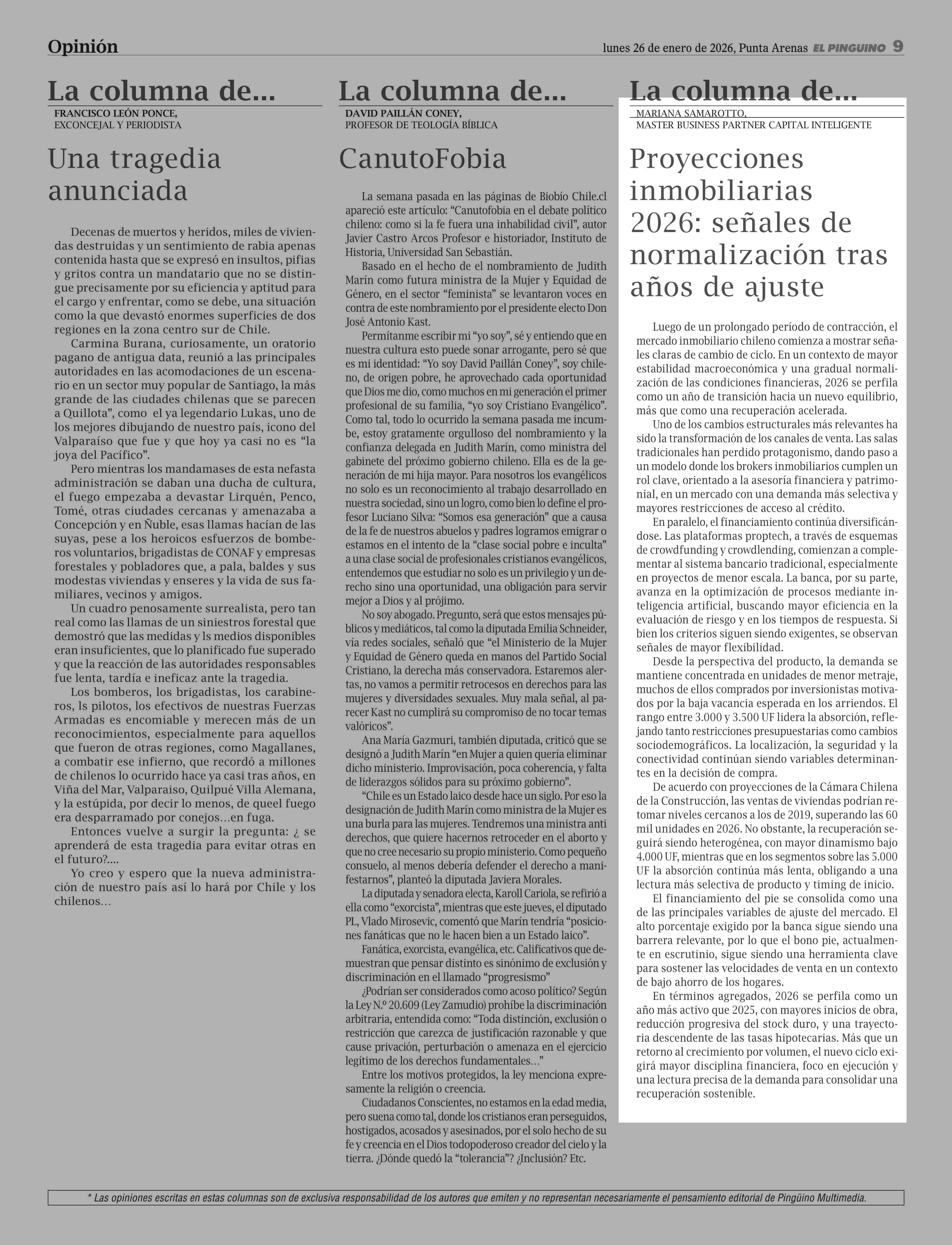 Fecha: 26-01-2026 Sector: Columnas de Opinión Región: Región de Magallanes y de la Antártica Chilena