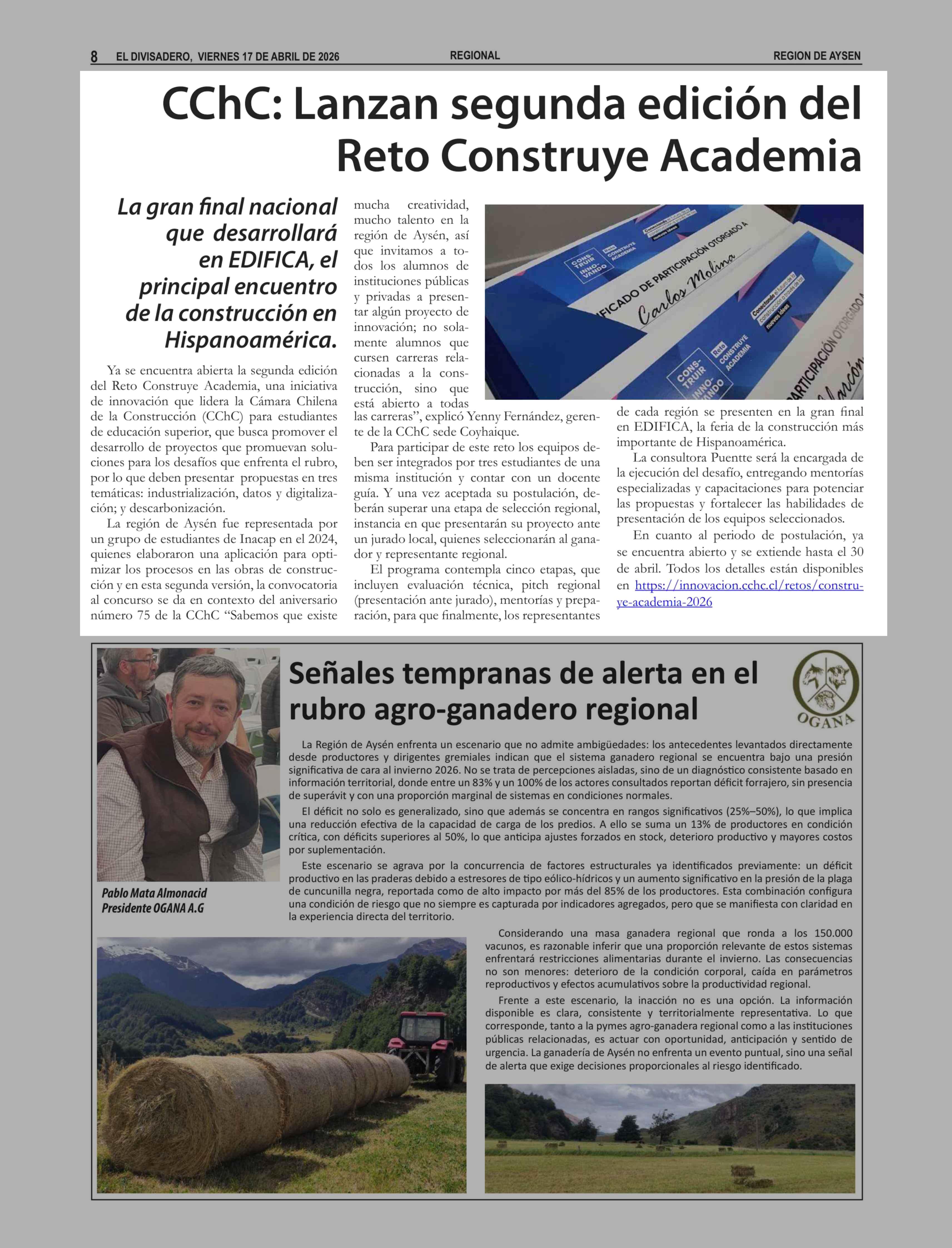 Fecha: 17-04-2026 Sector: Noticia general Región: Región Aysén del General Carlos Ibáñez del Campo