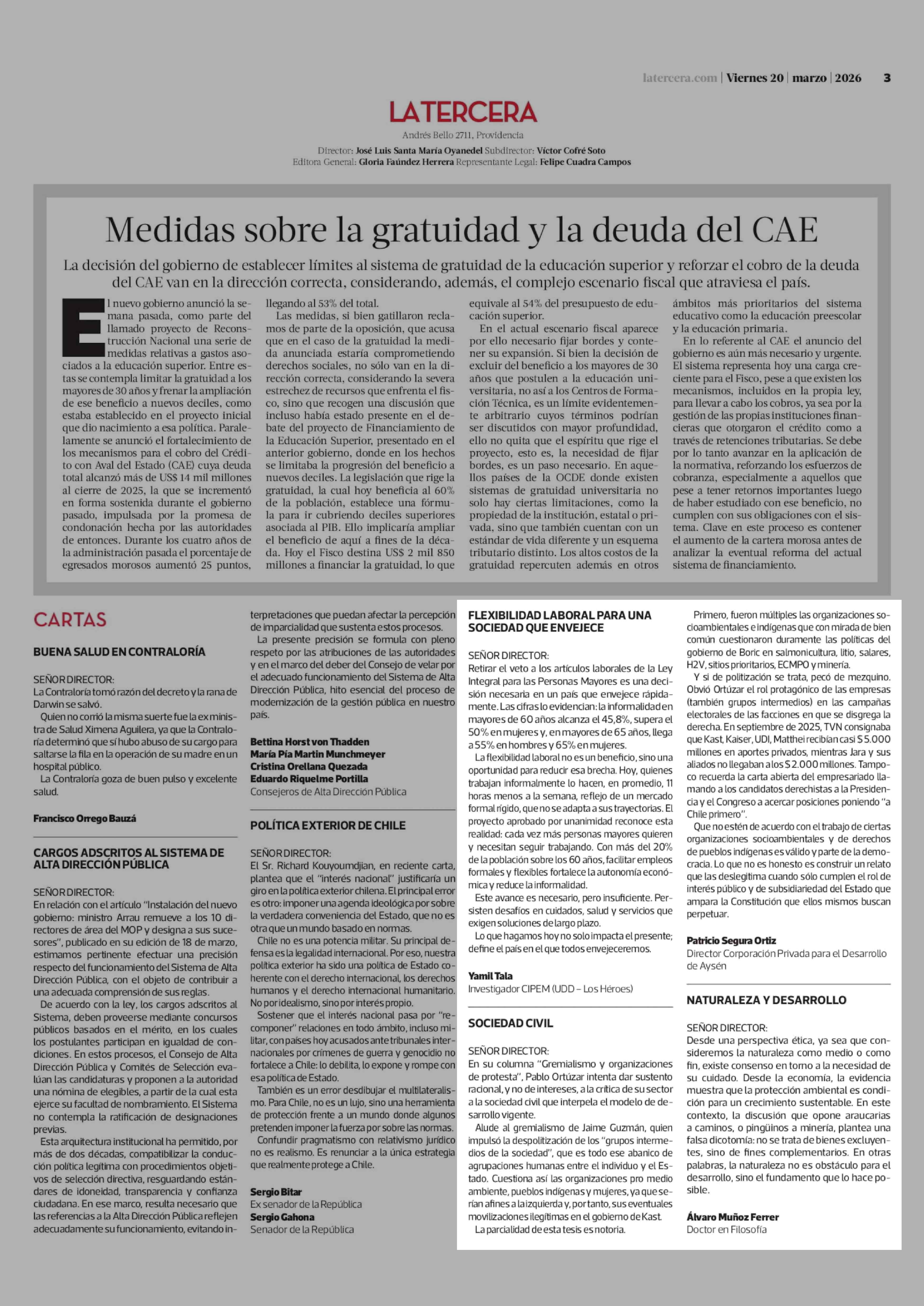 Cartas: SOCIEDAD CIVIL 20-03-2026 La Tercera |