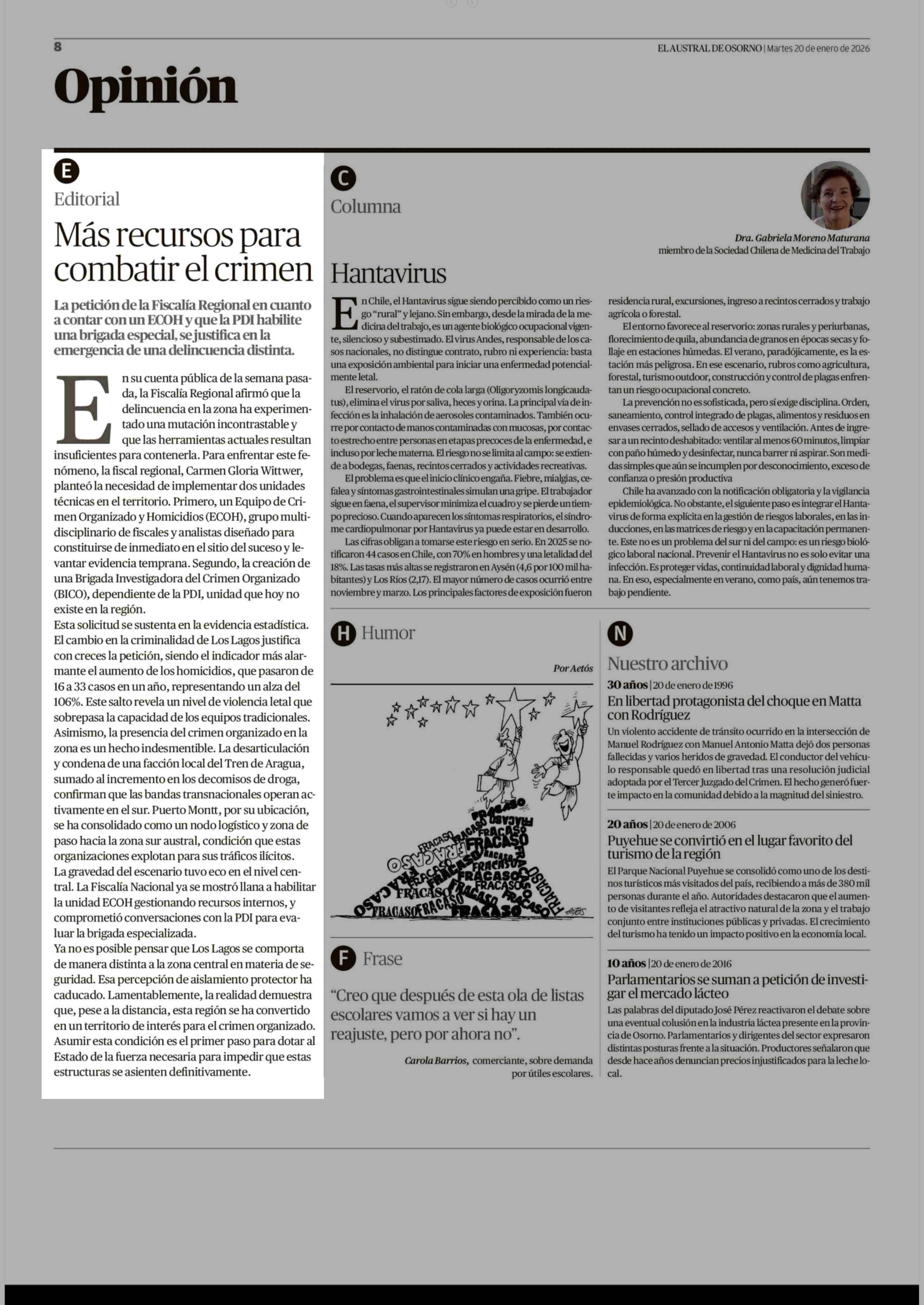 Fecha: 20-01-2026 Sector: Editorial Región: Región de Los Lagos