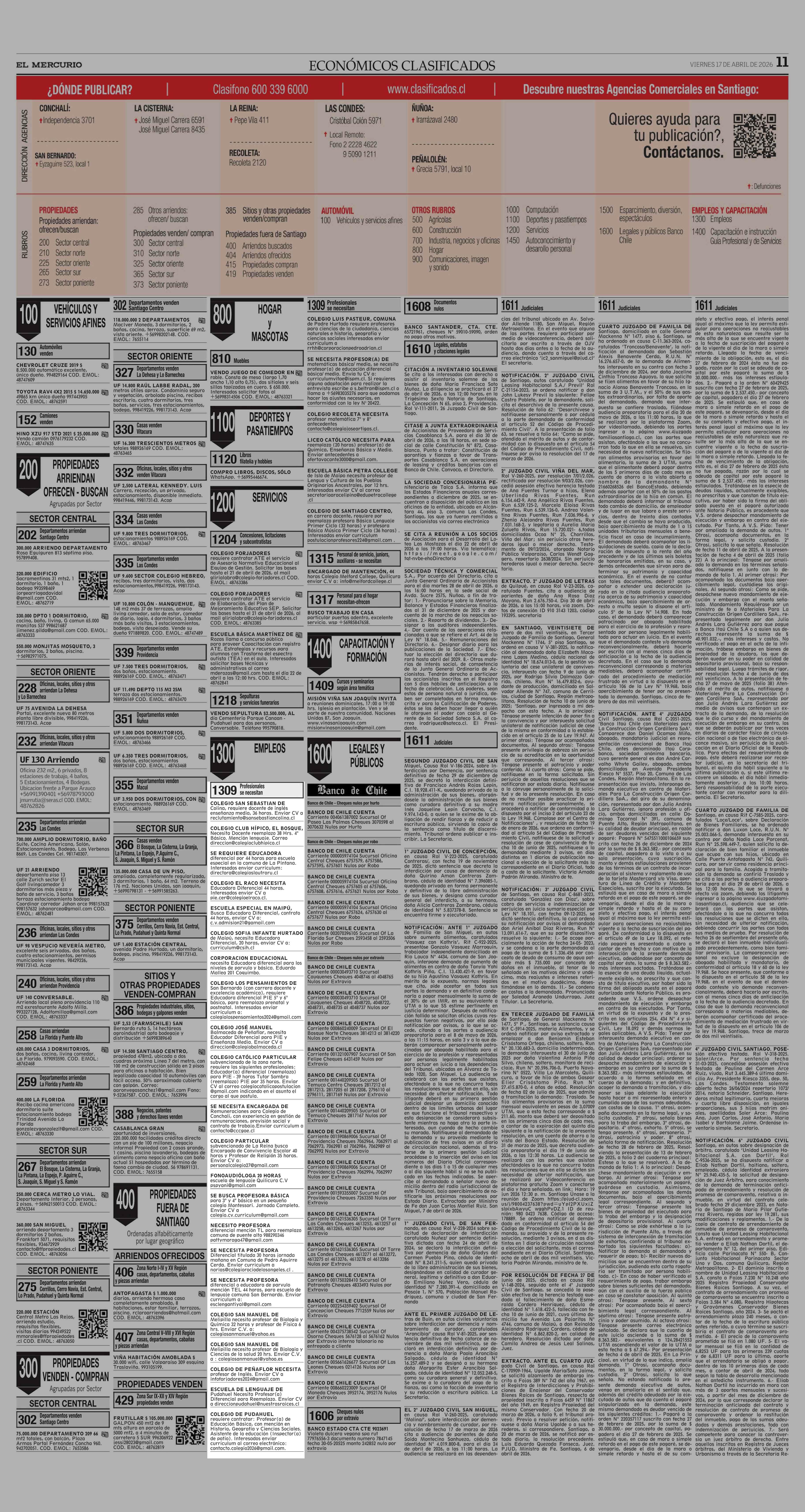 AVISO LICITACIONES: Área Educación 17-04-2026 El Mercurio |