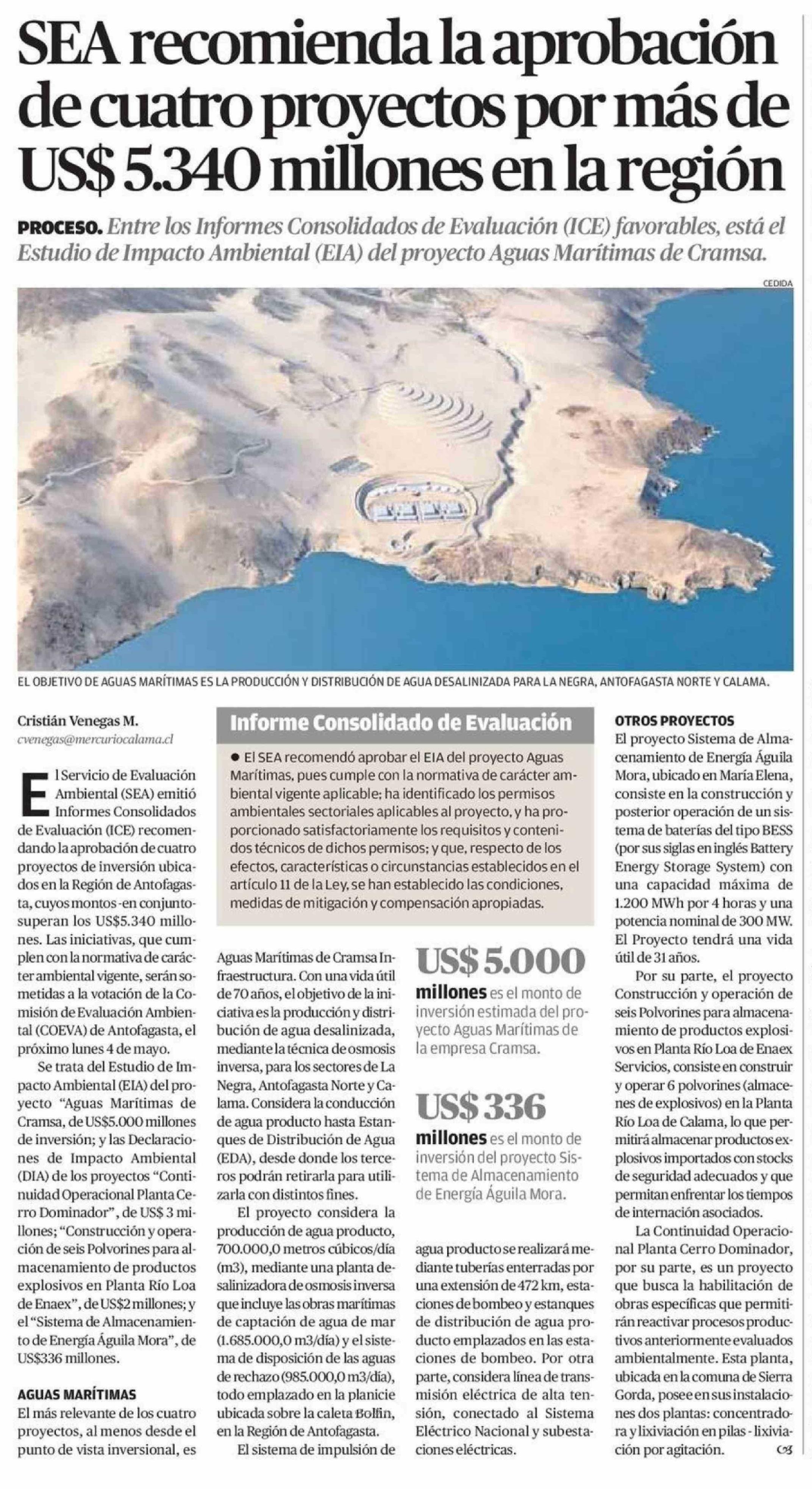Título: SEA recomienda la aprobación de cuatro proyectos por más de US$ 5.340 millones en la región
