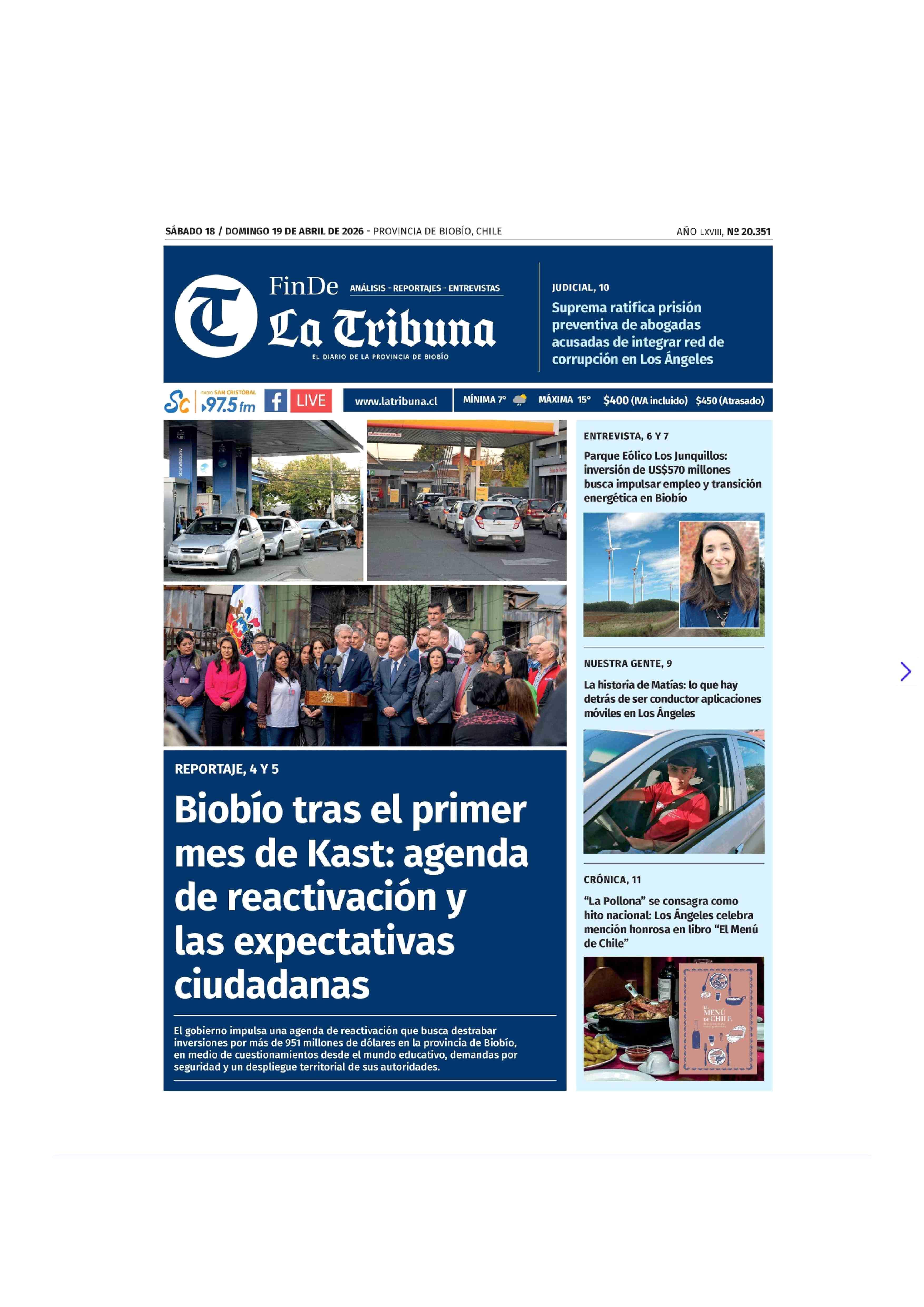 | Fecha: | 18-04-2026 | Sector: | Portada | Región: | Región del Bío-Bío |