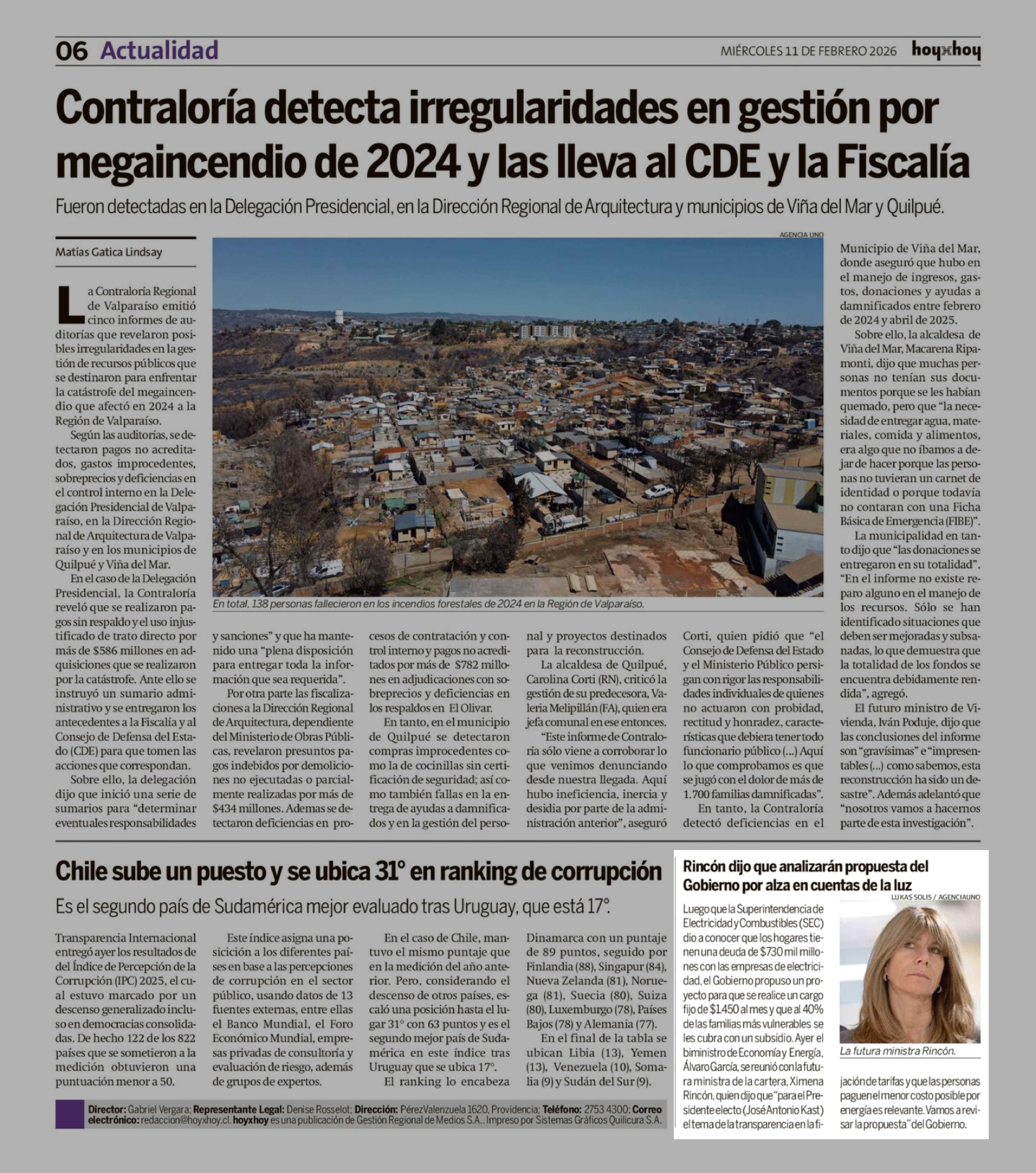 Rincón dijo que analizarán propuesta del Gobierno por alza en cuentas de la luz 11-02-2026 Hoy x Hoy Concepción |