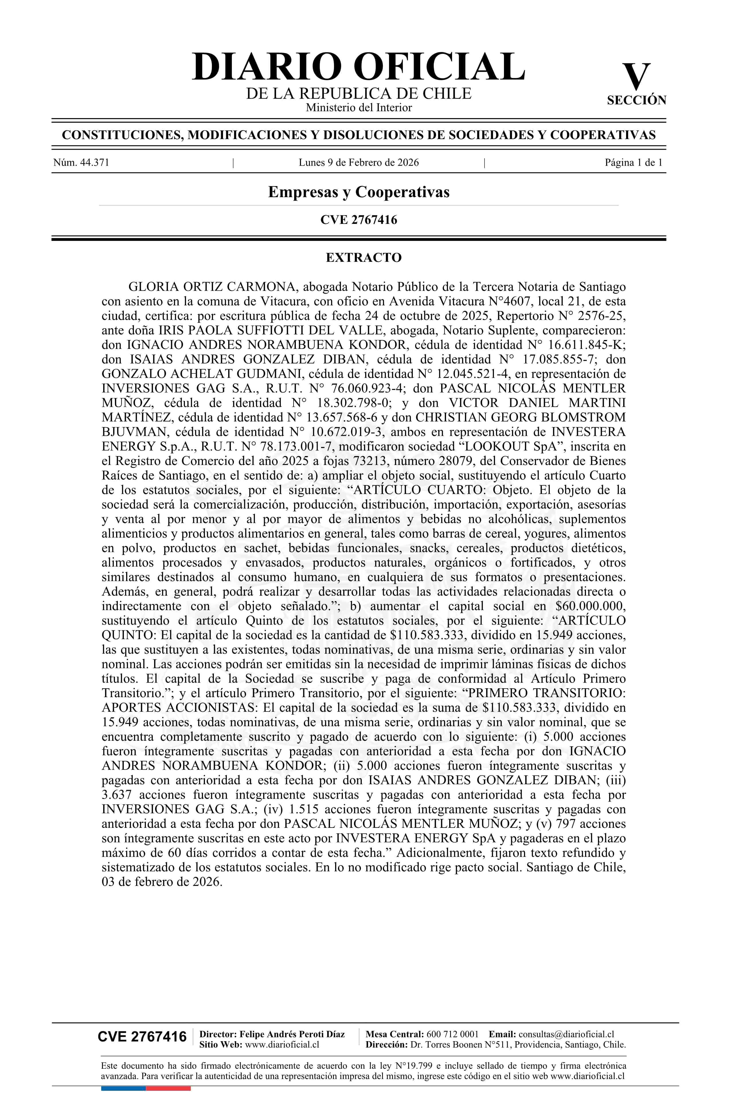 Fuente: Diario Oficial Edición Electrónica (Diario Oficial de Chile - 5 Empresas Y Cooper) Página(s): 144