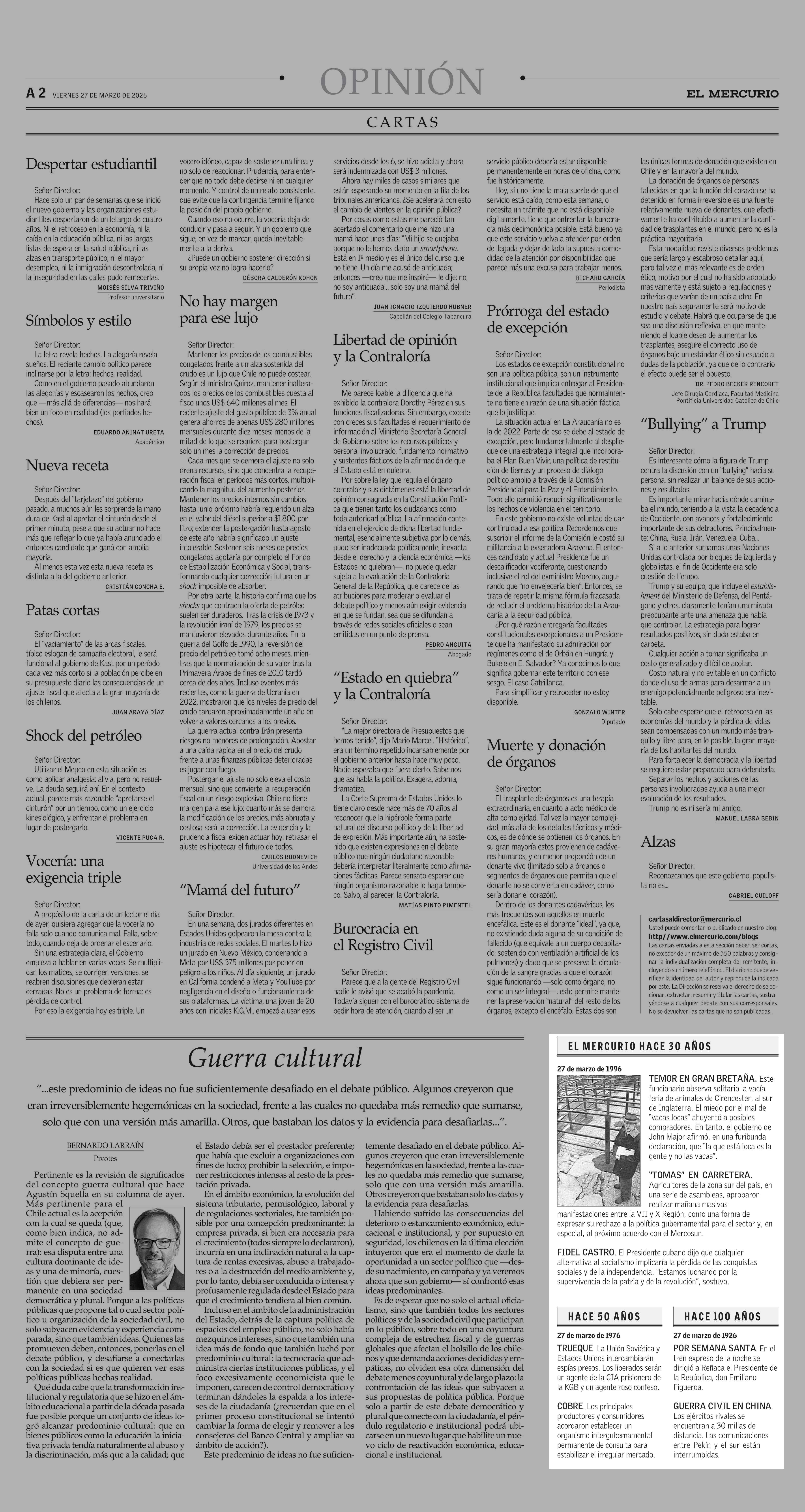 EL MERCRUIO HACE 30 AÑOS 27-03-2026 El Mercurio |