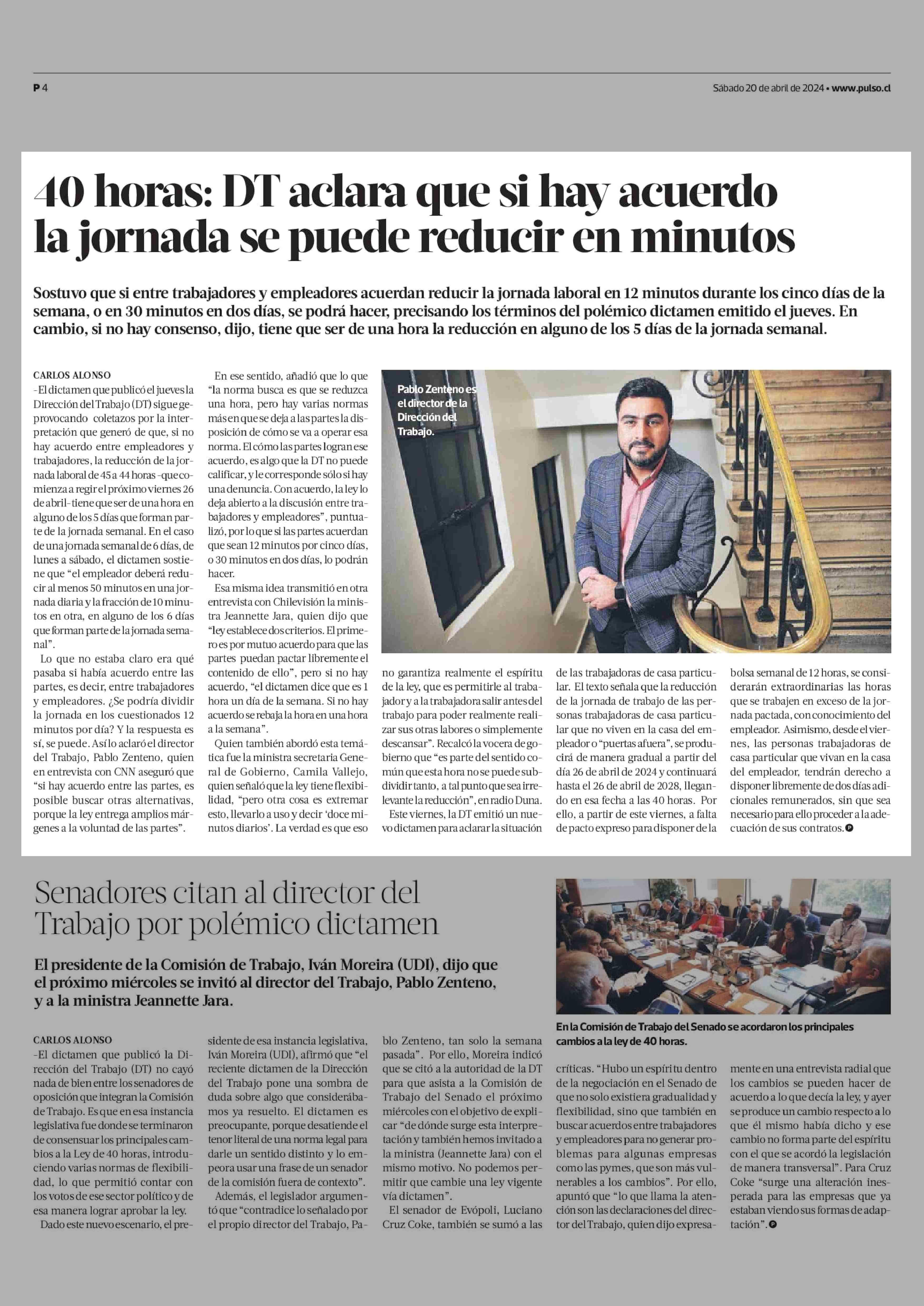 40 horas: DT aclara que si hay acuerdo la jornada se puede reducir en minutos 20-04-2024 La Tercera |