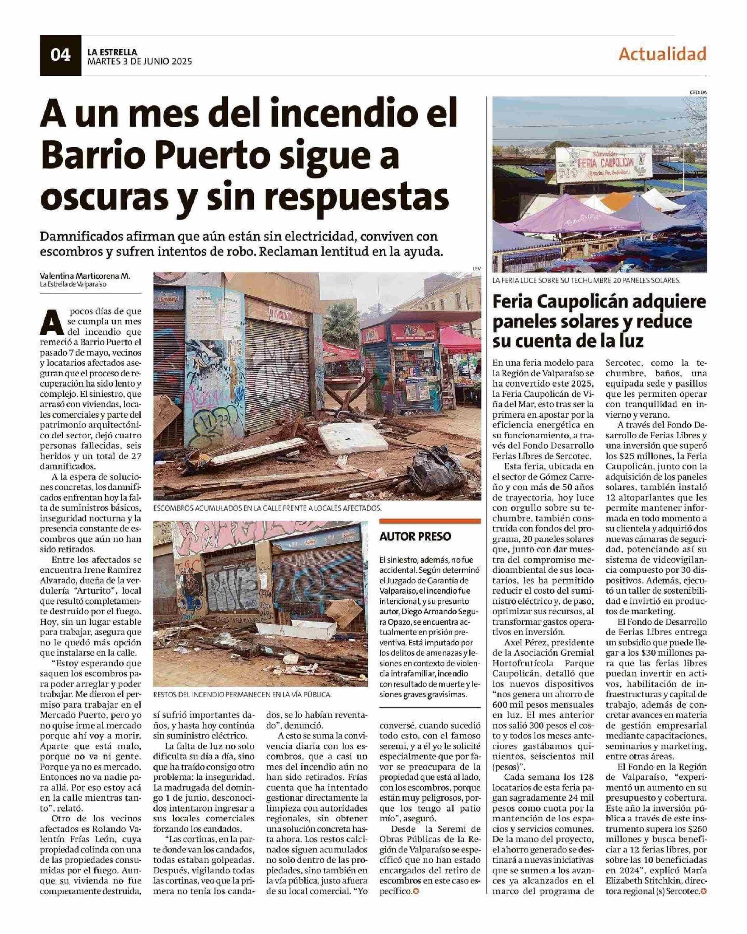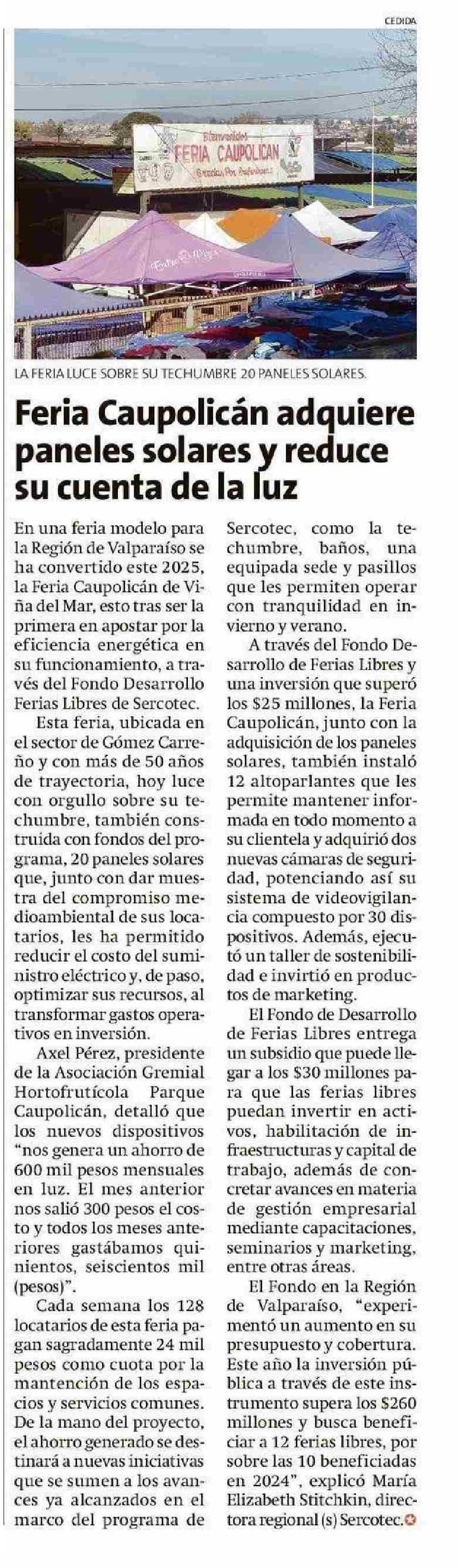Feria Caupolicán adquiere paneles solares y reduce su cuenta de la luz 03-06-2025 La Estrella de Valparaíso |