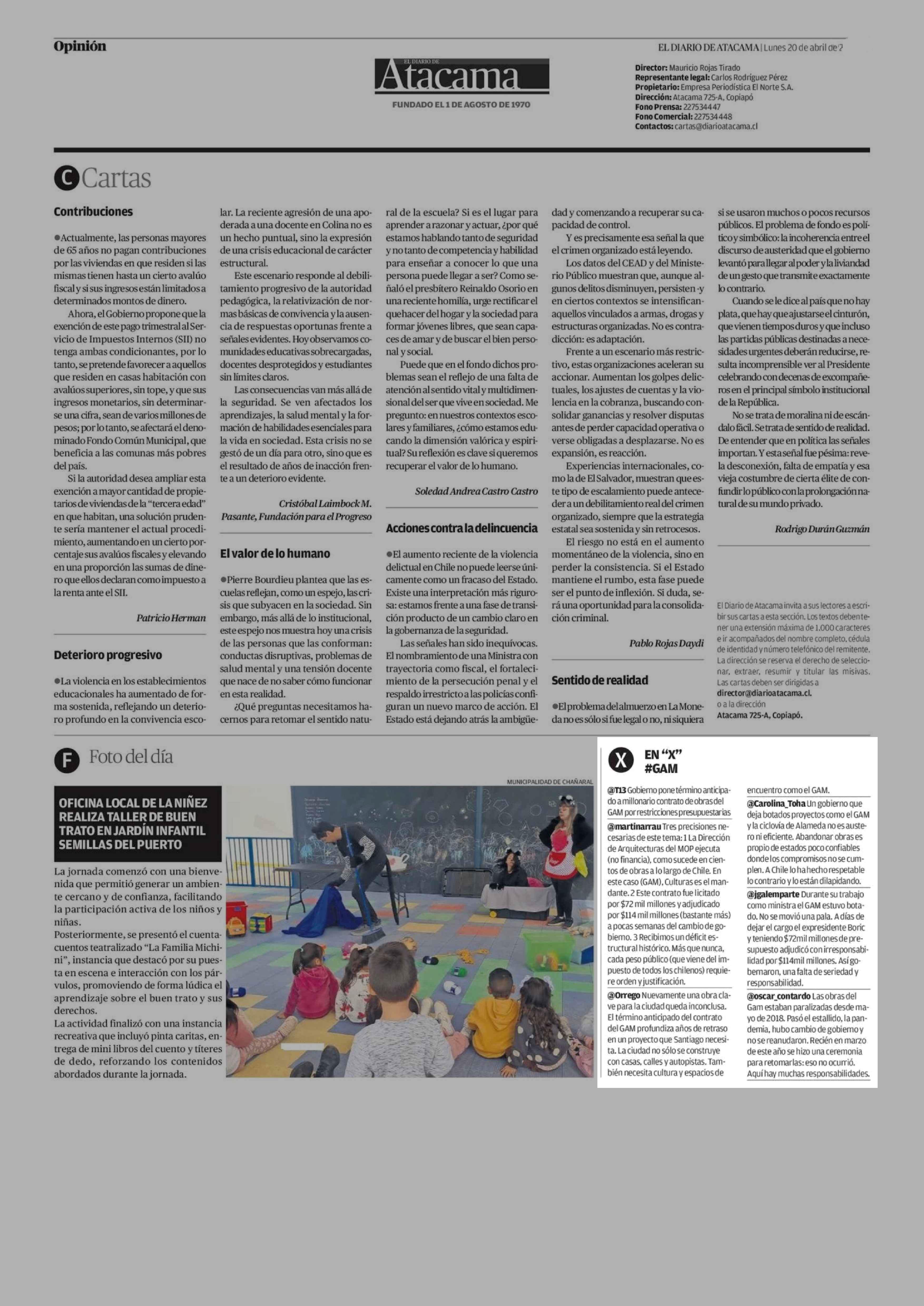 EN "X" #GAM 20-04-2026 El Diario de Atacama |