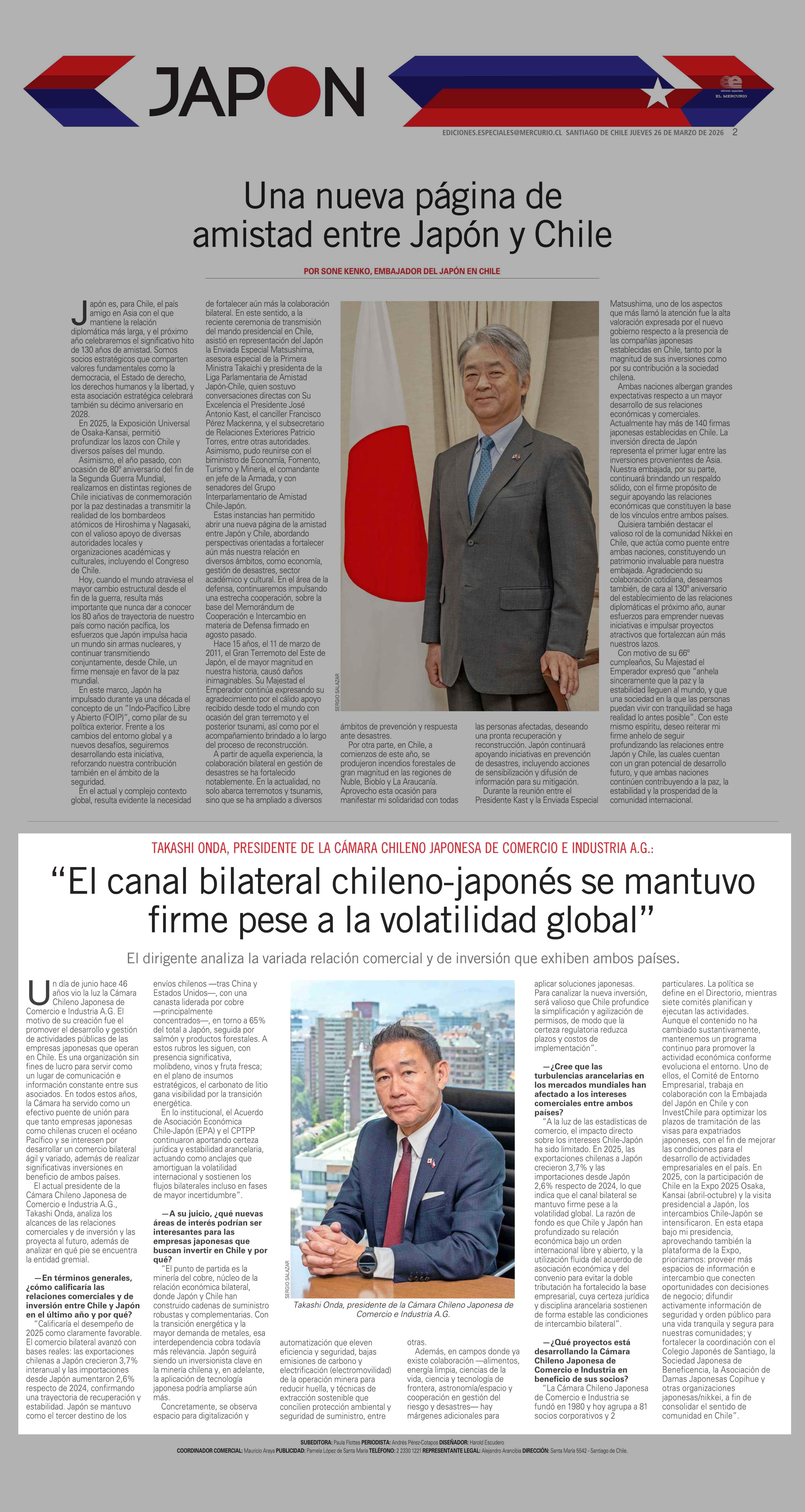 “El canal bilateral chileno-japonés se mantuvo firme pese a la volatilidad global” 26-03-2026 El Mercurio |