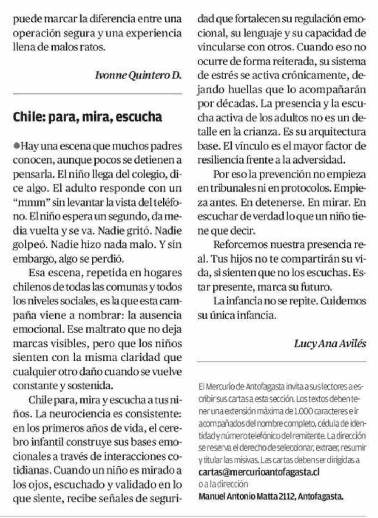 Cartas: Chile: para, mira, escucha 16-04-2026 El Mercurio de Antofagasta |