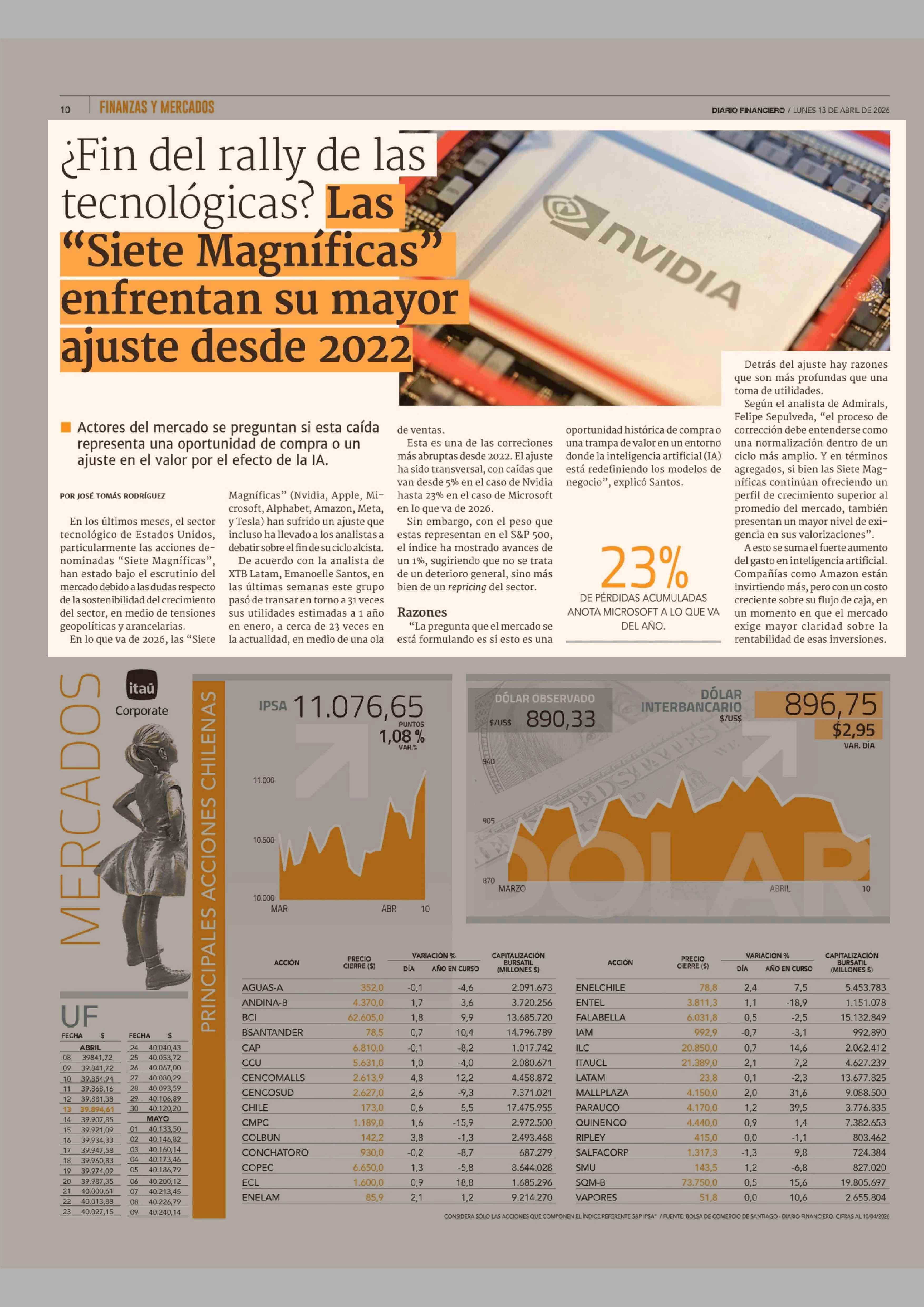 ¿Fin del rally de las tecnológicas? Las "Siete Magníficas' enfrentan su mayor ajuste desde 2022 13-04-2026 Diario Financiero |