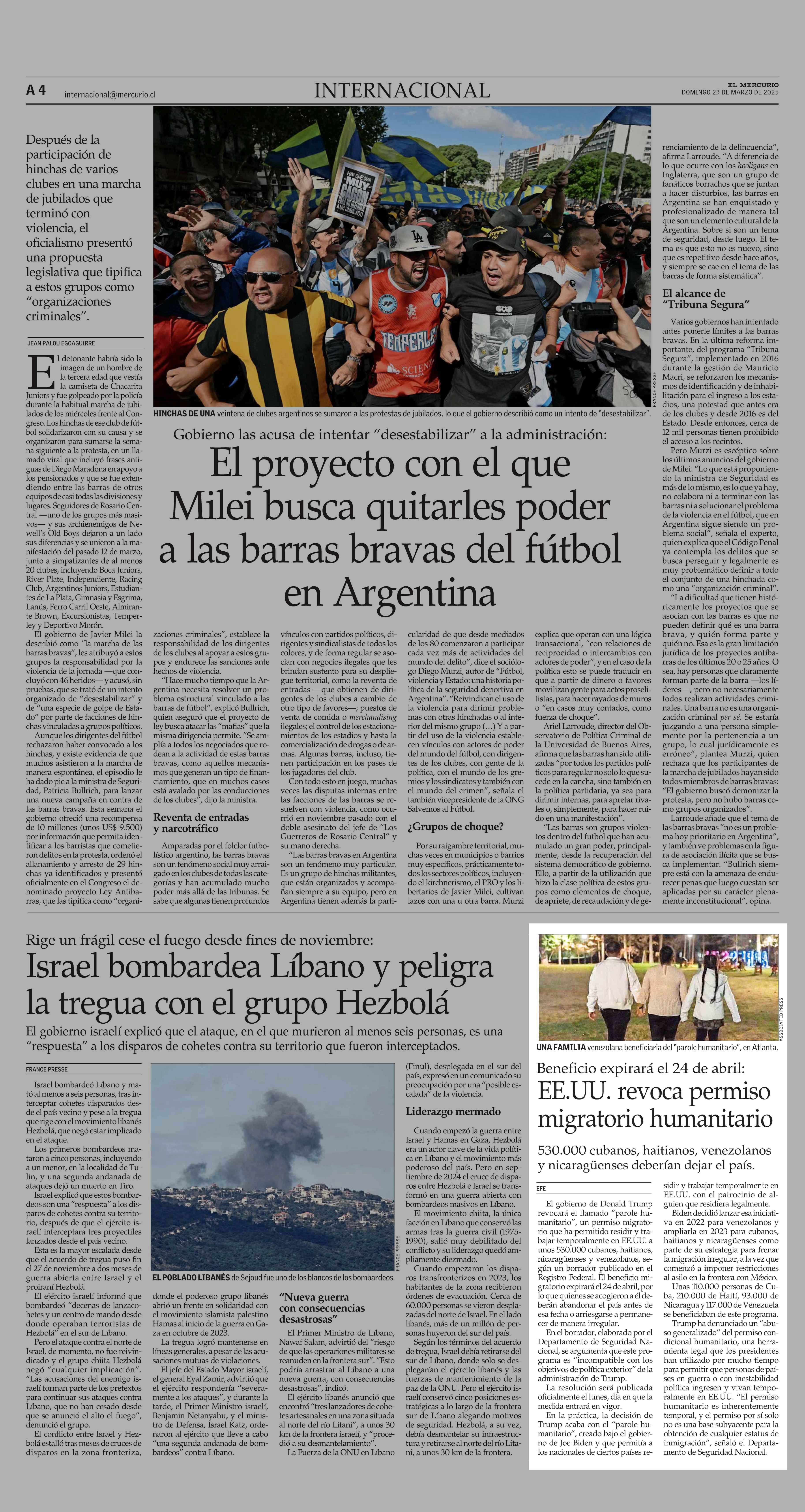 EE.UU. revoca permiso migratorio humanitario 23-03-2025 El Mercurio |