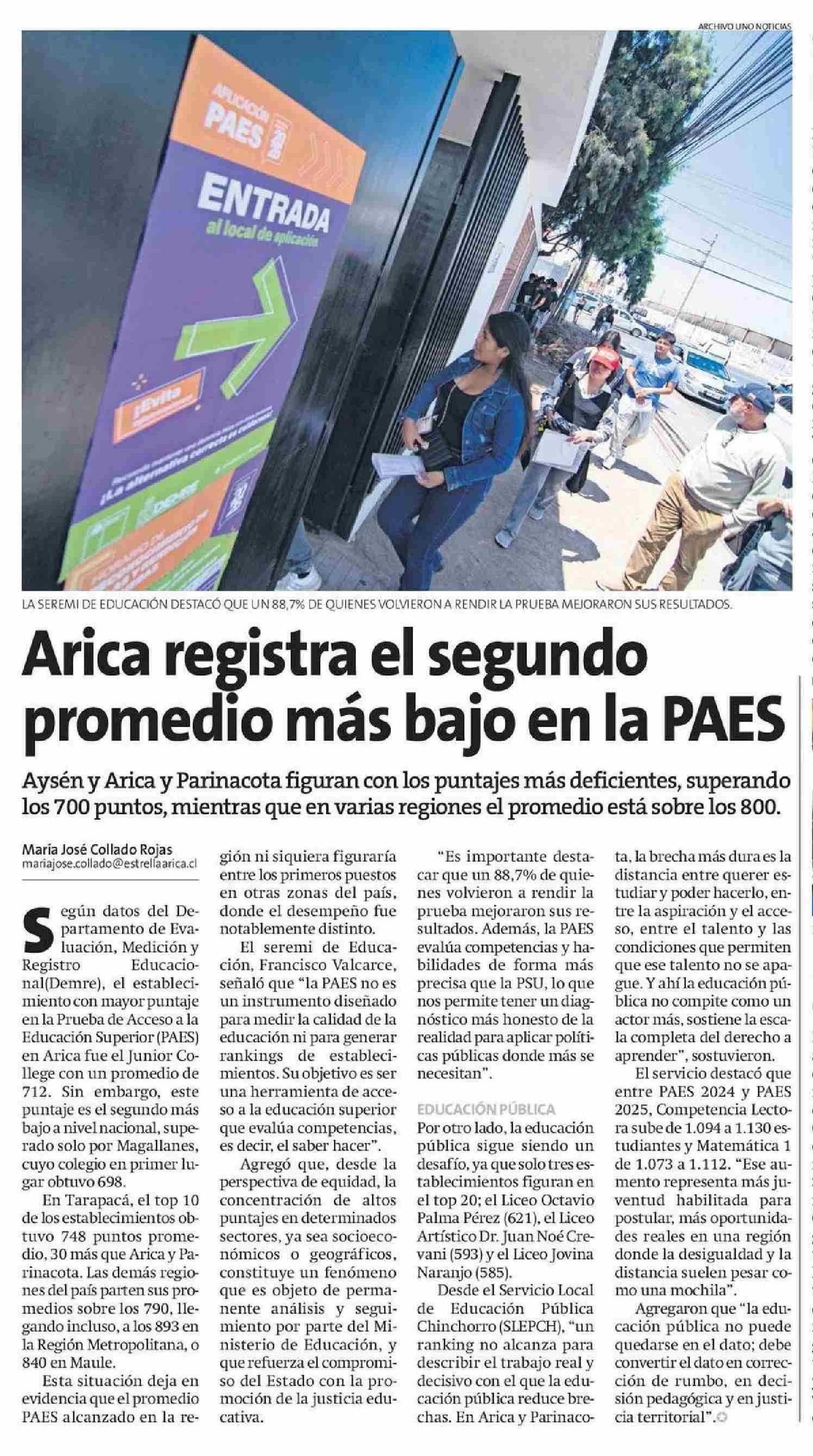 Título: Arica registra el segundo promedio más bajo en la PAES