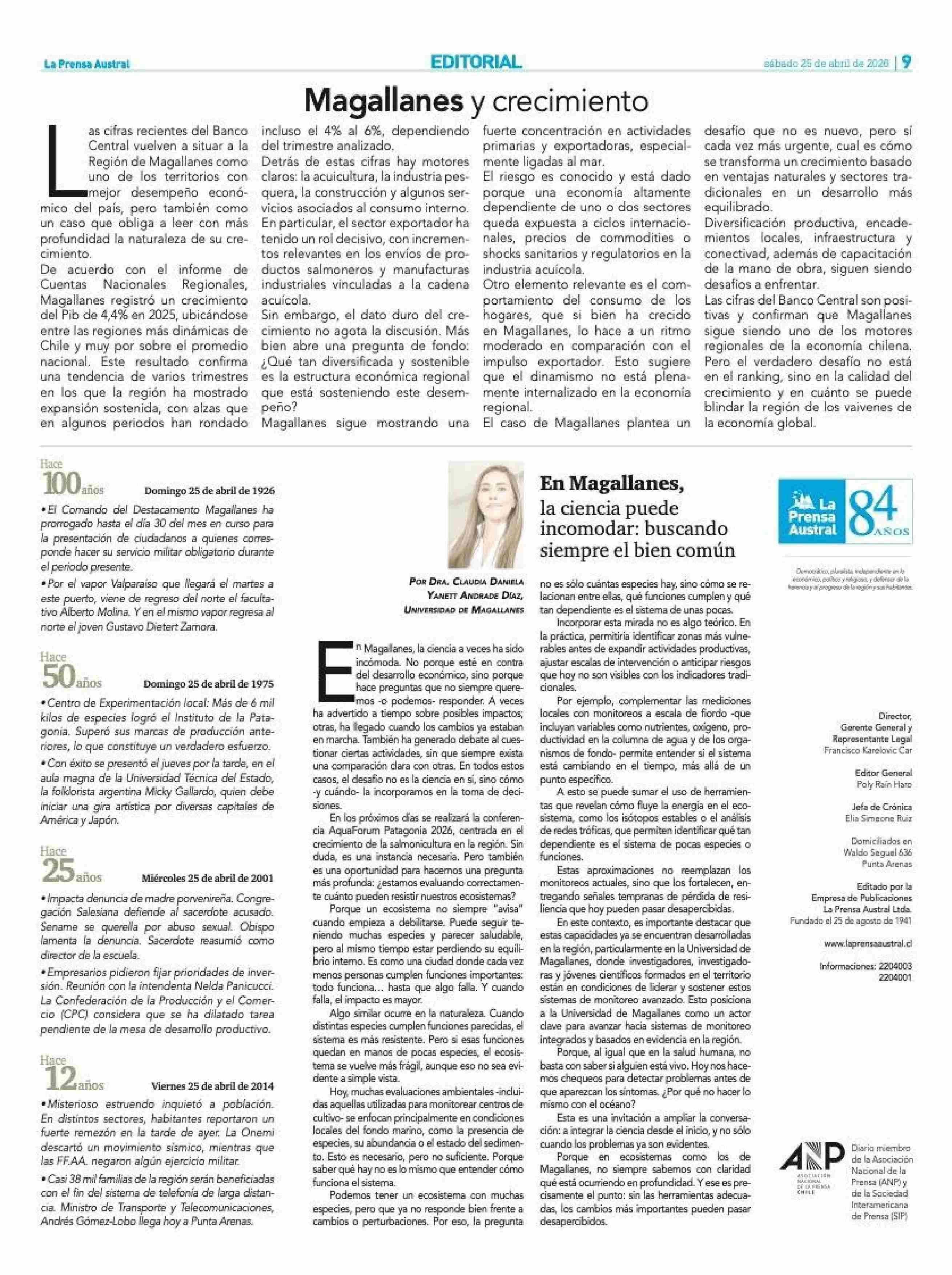 EDITORIAL: Magallanes y crecimiento 25-04-2026 La Prensa Austral |