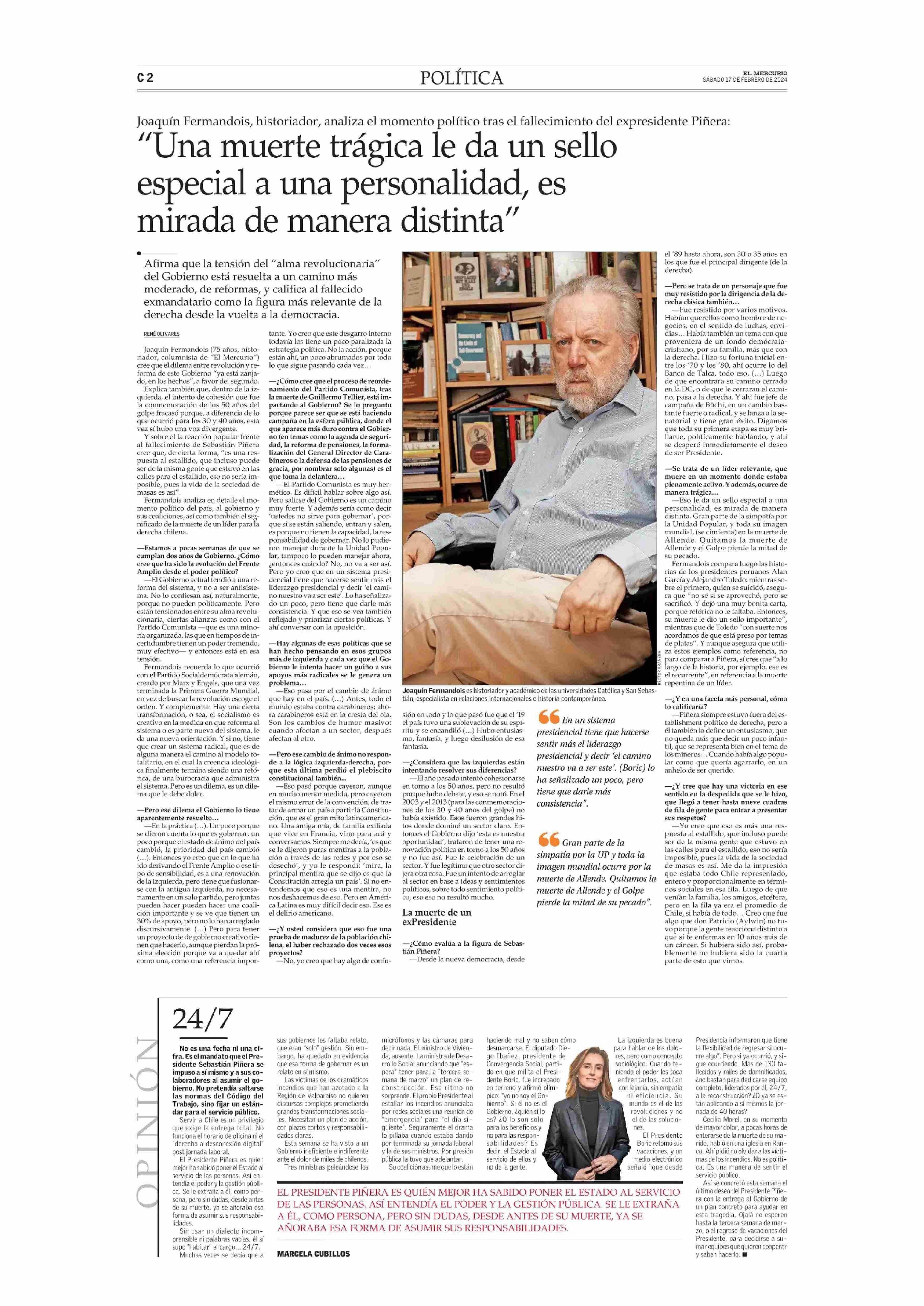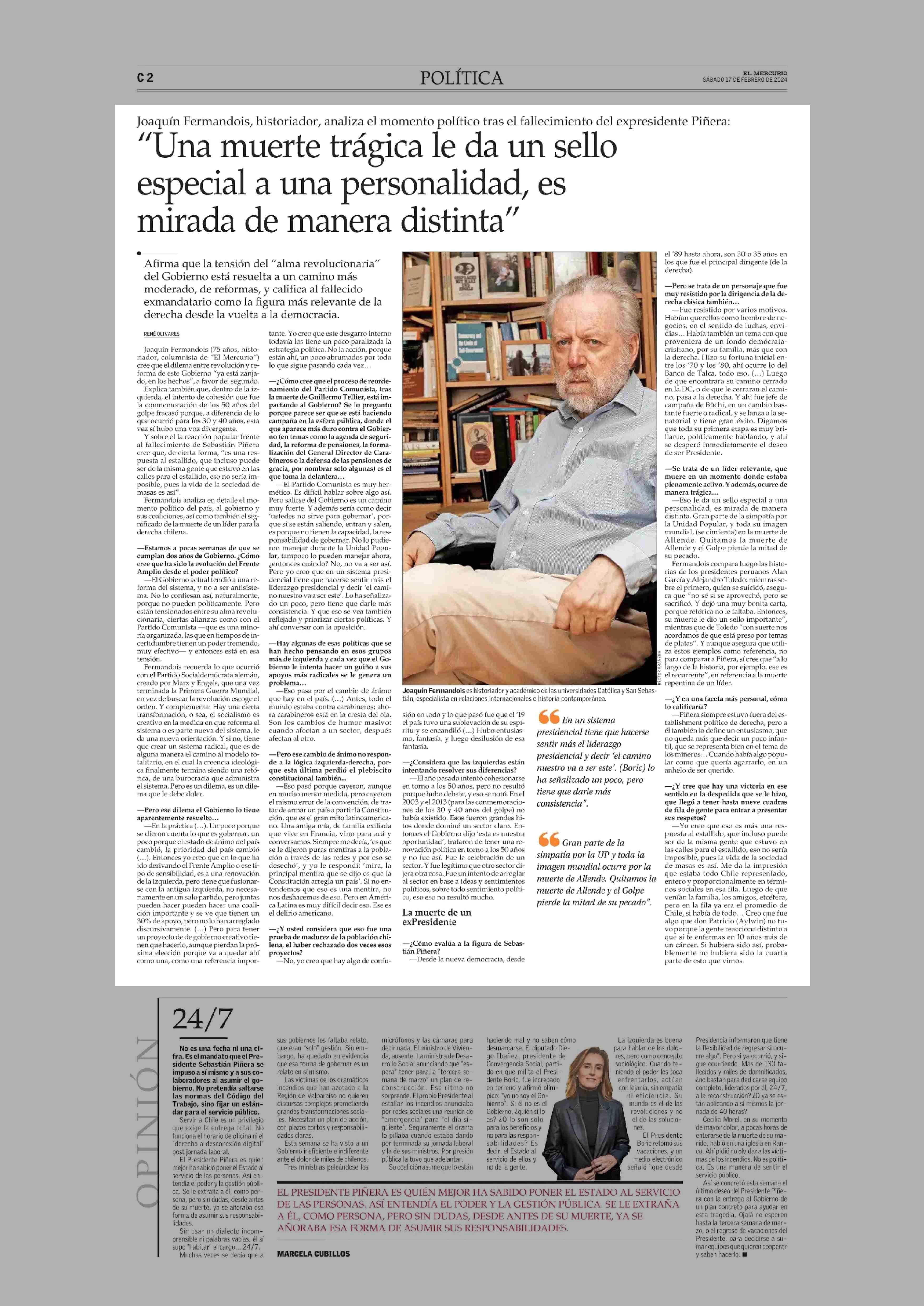 “Una muerte trágica le da un sello especial a una personalidad, es mirada de manera distinta” 17-02-2024 El Mercurio |