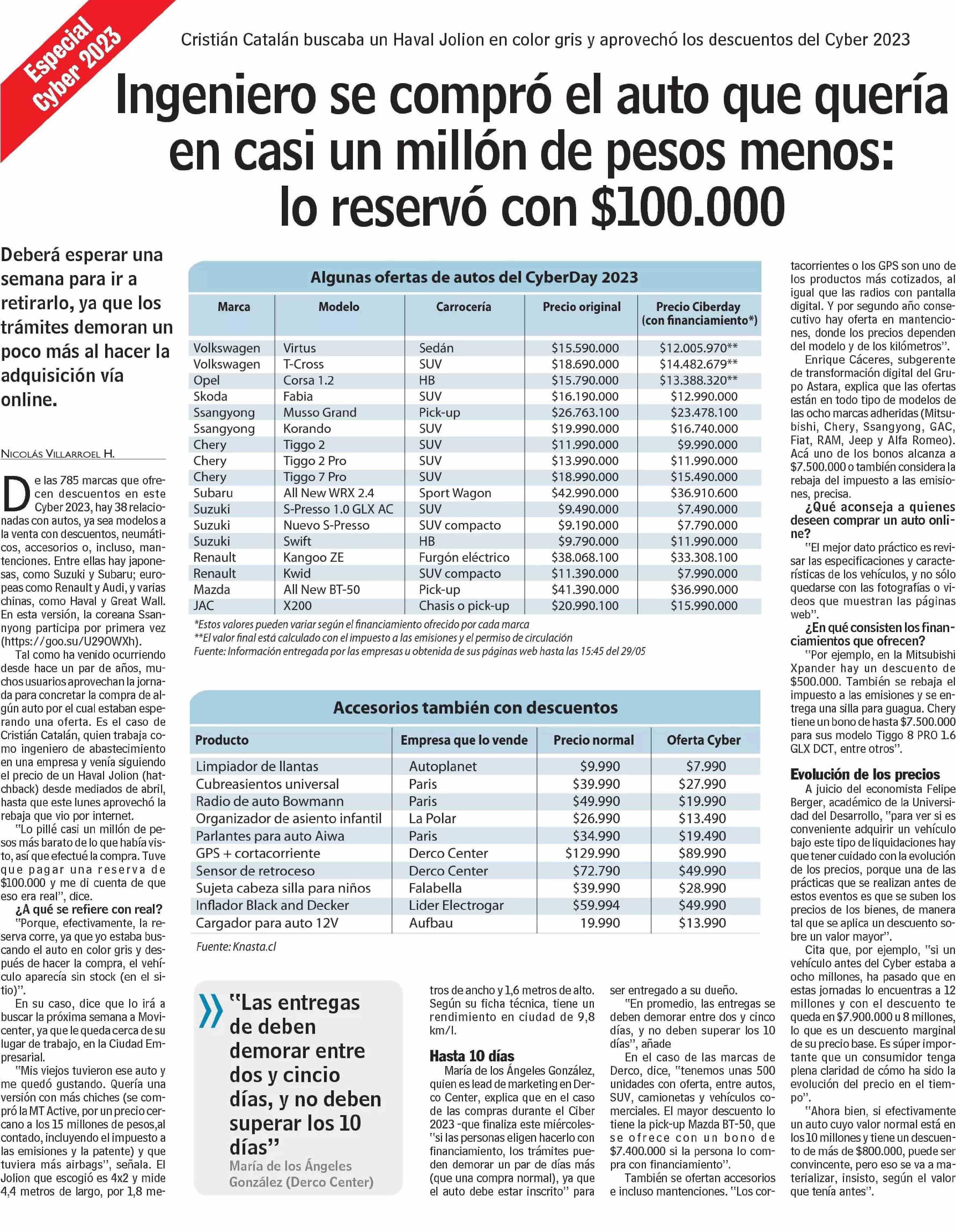 | Título: | Ingeniero se compró el auto que quería en casi un millón de pesos menos: lo reservó con $100.000 |