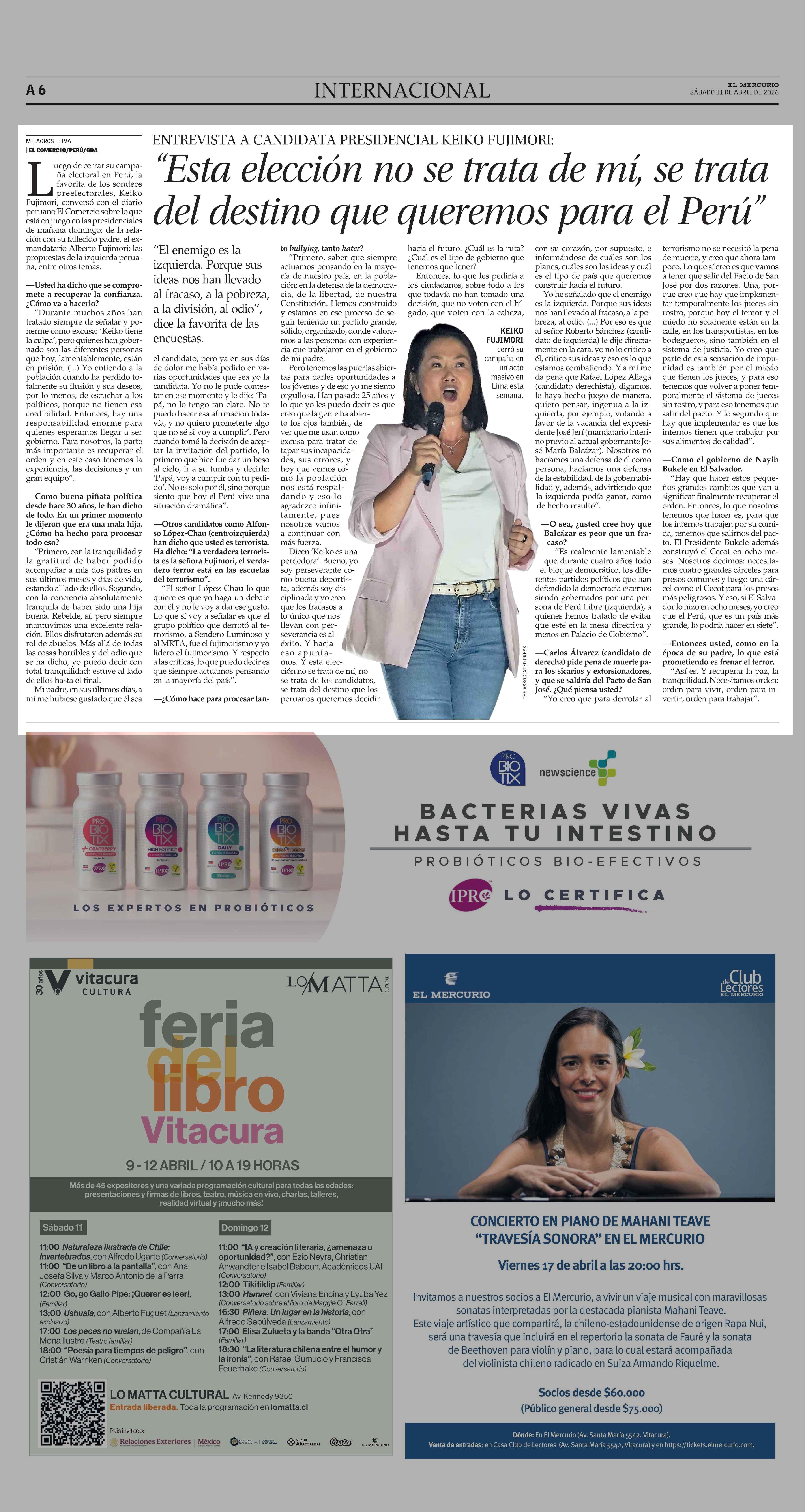 “Esta elección no se trata de mí, se trata del destino que queremos para el Perú” 11-04-2026 El Mercurio |