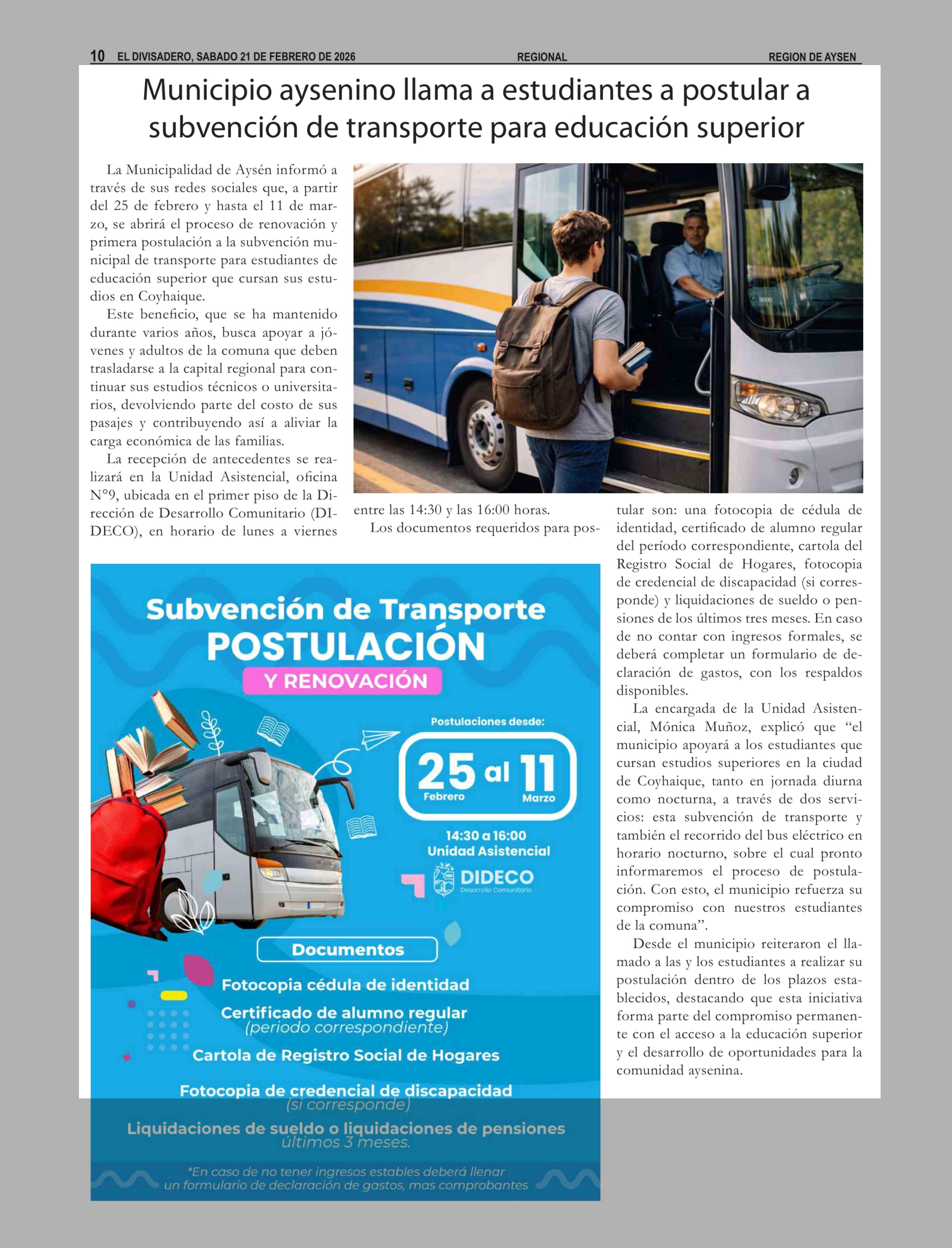 Título: Municipio aysenino llama a estudiantes a postular a subvención de transporte para educación superior