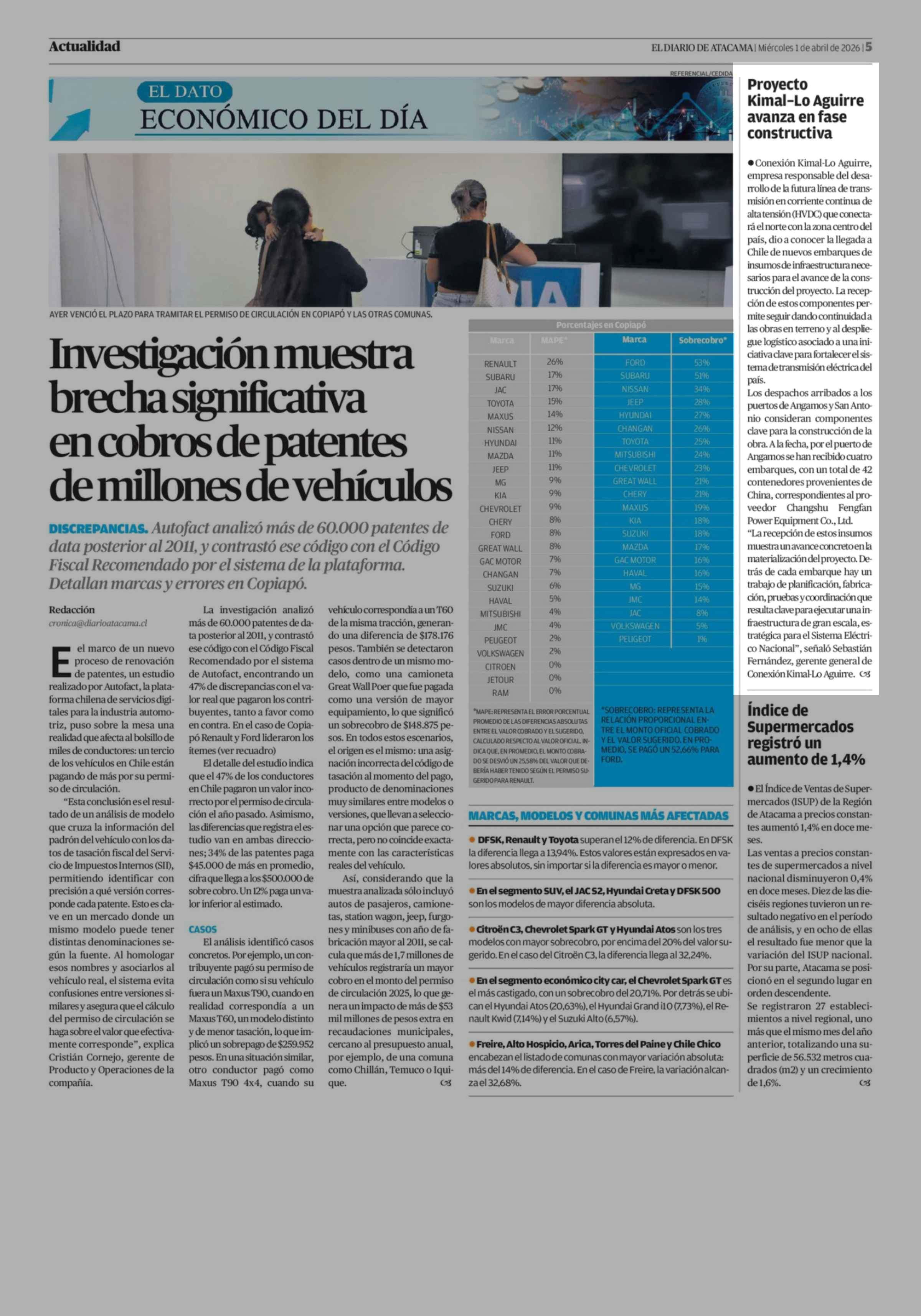 | Fuente: | El Diario de Atacama (El Diario de Atacama) | Página(s): | 5 |