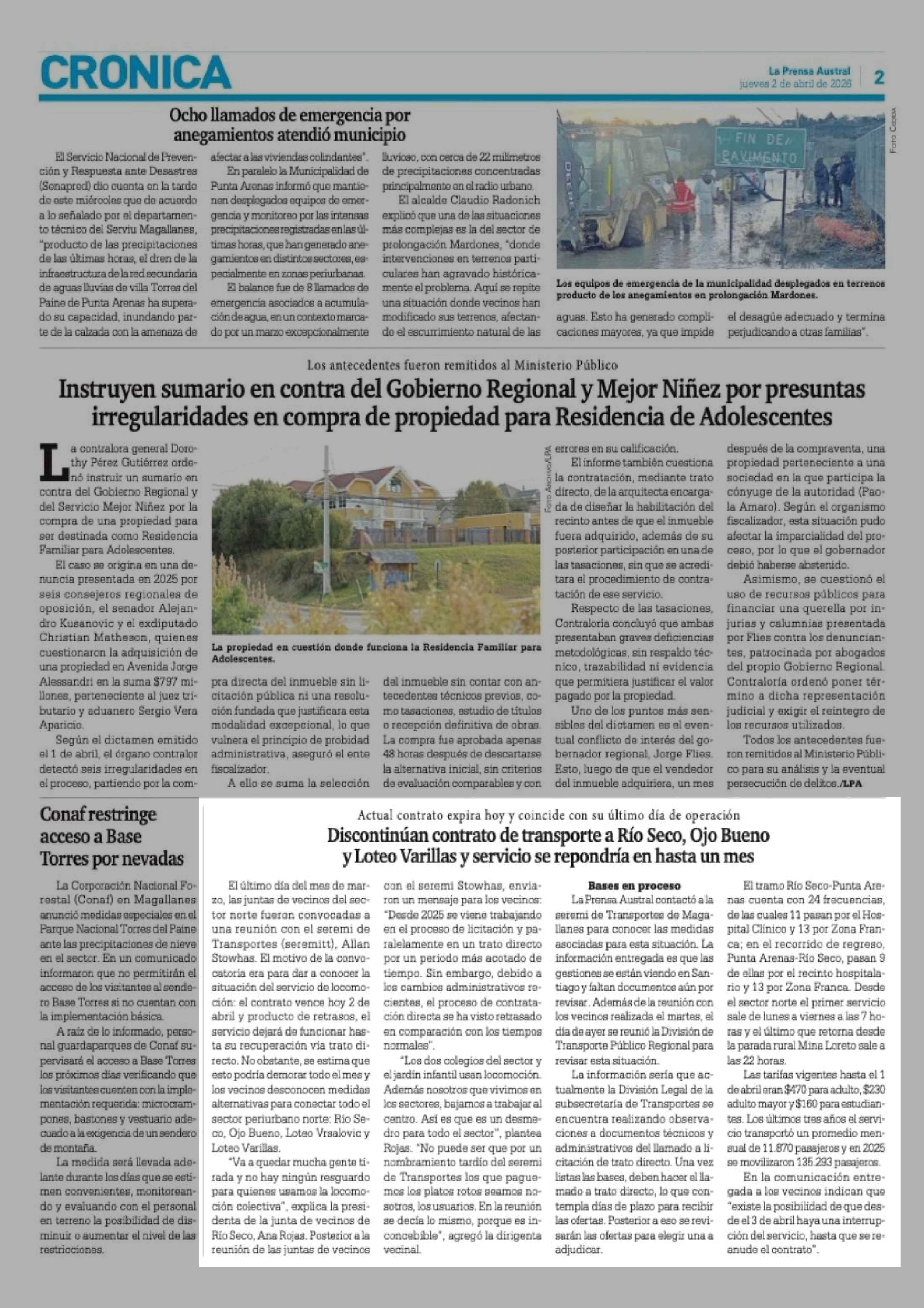 Fecha: 02-04-2026 Sector: Noticia general Región: Región de Magallanes y de la Antártica Chilena