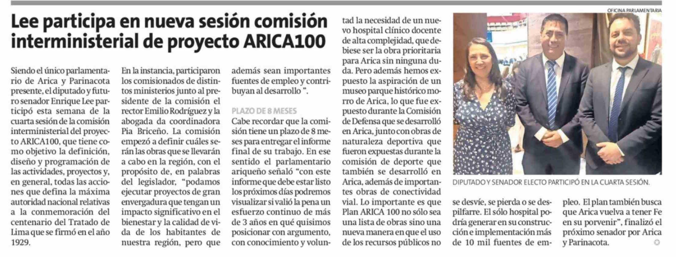 Título: Lee participa en nueva sesión comisión interministerial de proyecto ARICA100
