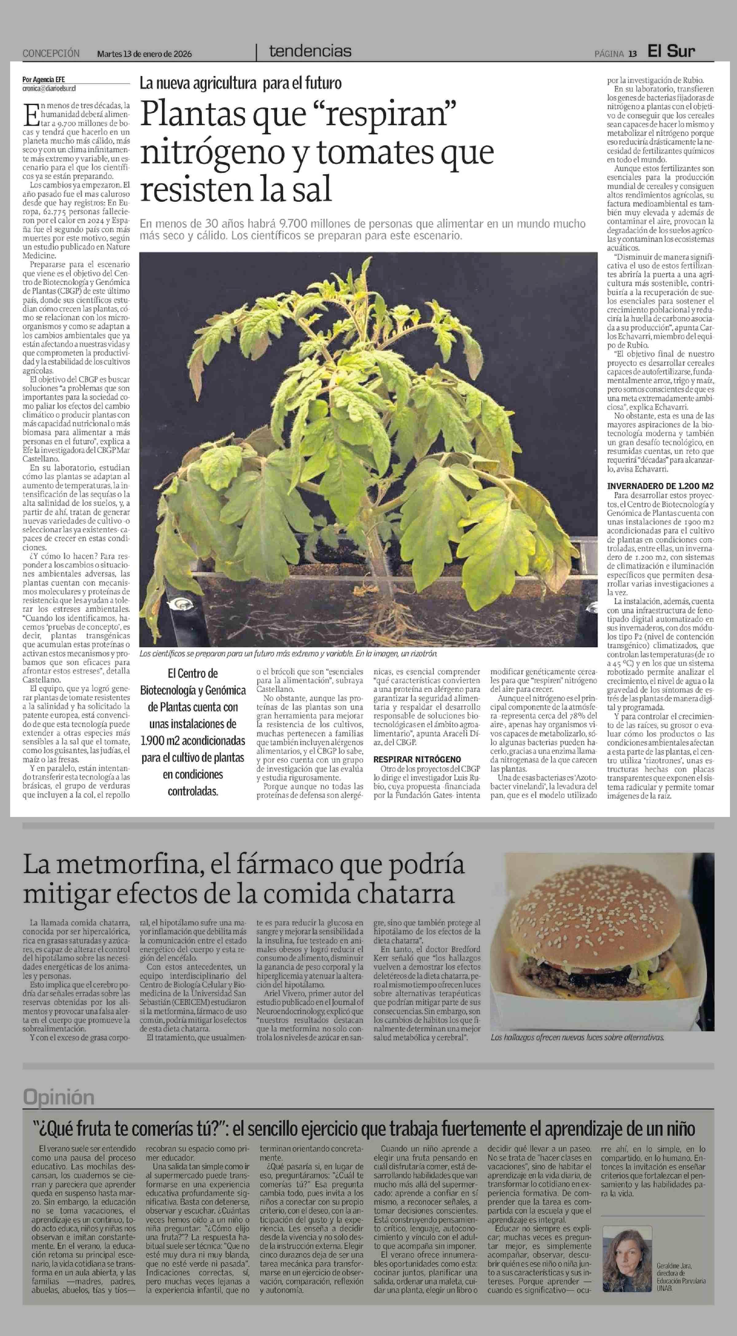 Título: Plantas que "respiran" nitrógeno y tomates que resisten la sal
