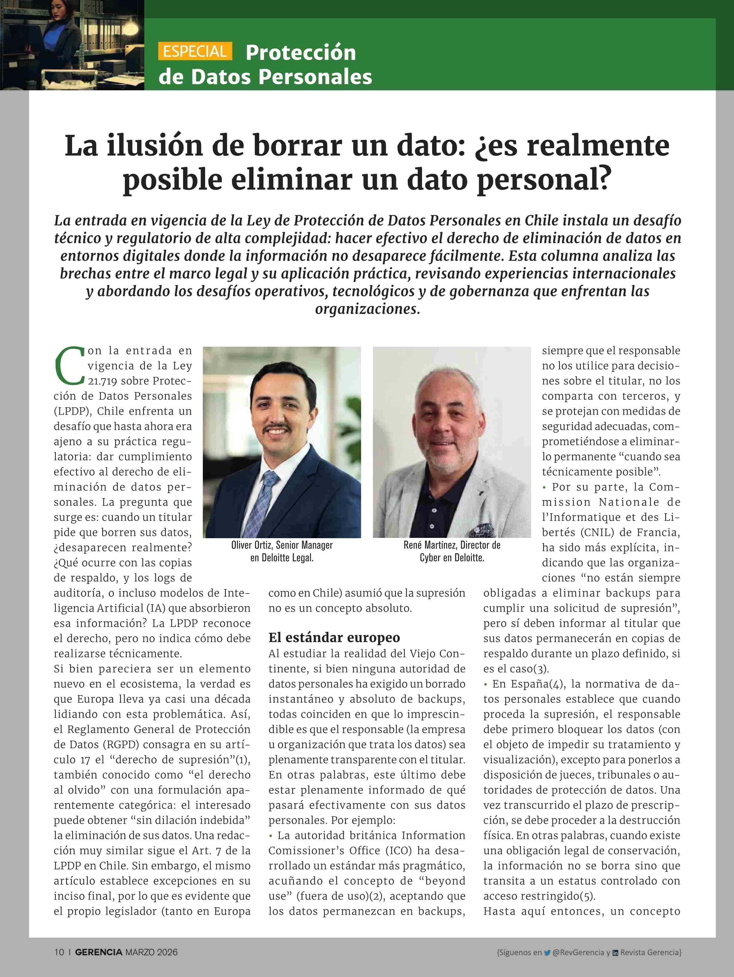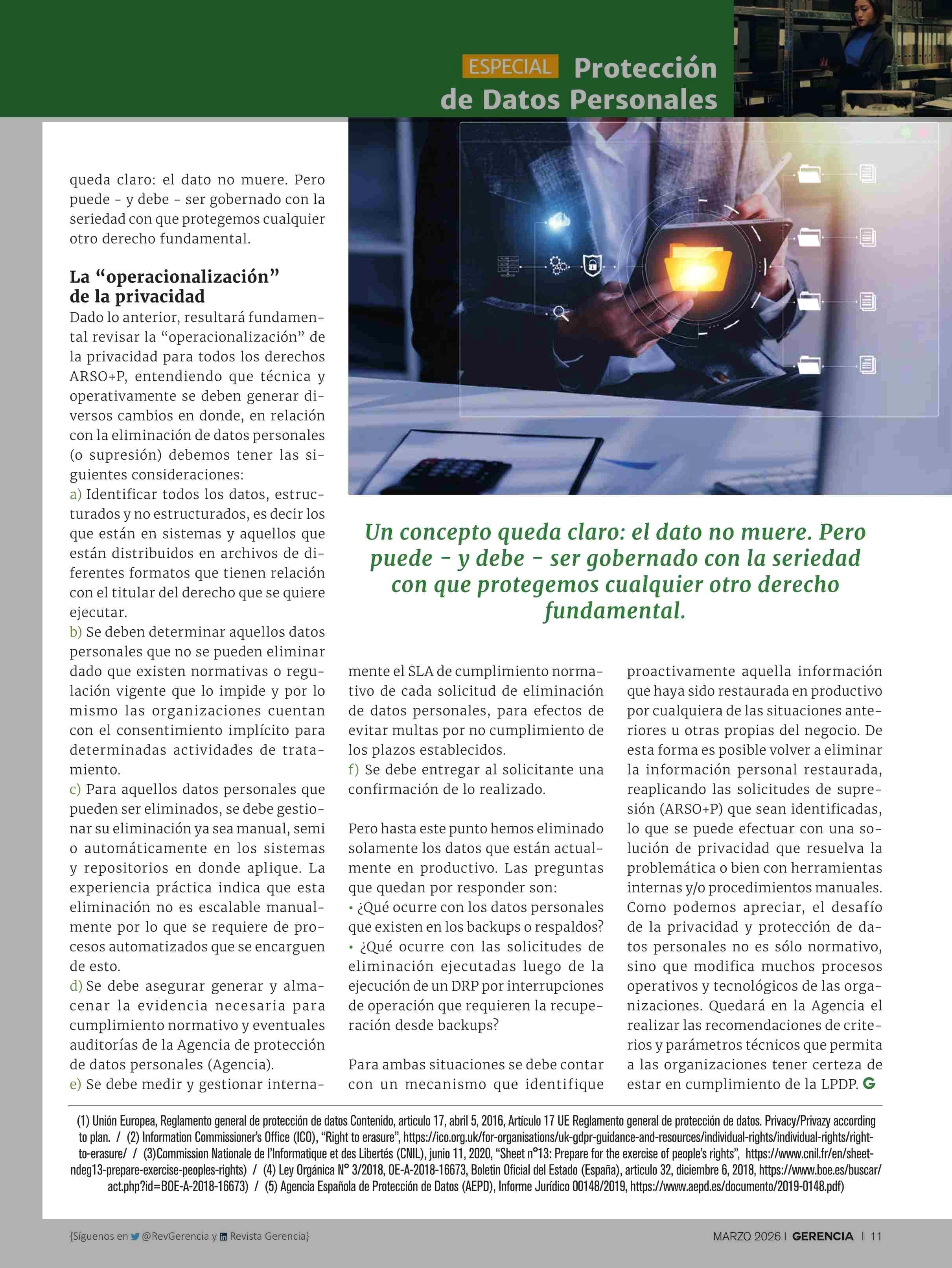 La ilusión de borrar un dato: ¿es realmente posible eliminar un dato personal? 30-03-2026 Revista Gerencia |